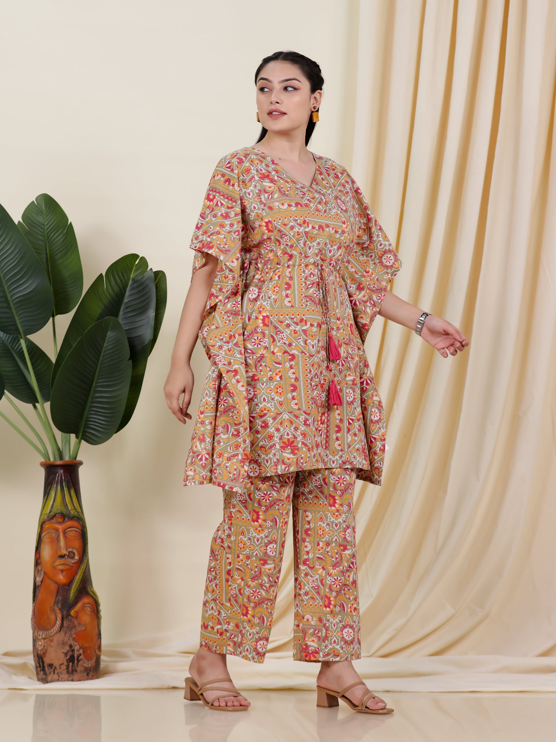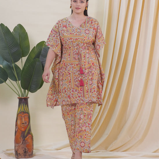 Soft Cotton Patchwork Kaftan Green Kurta