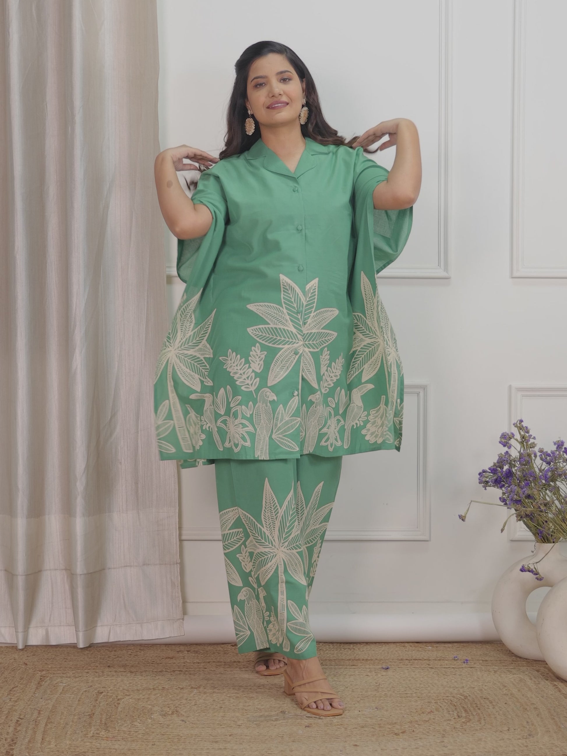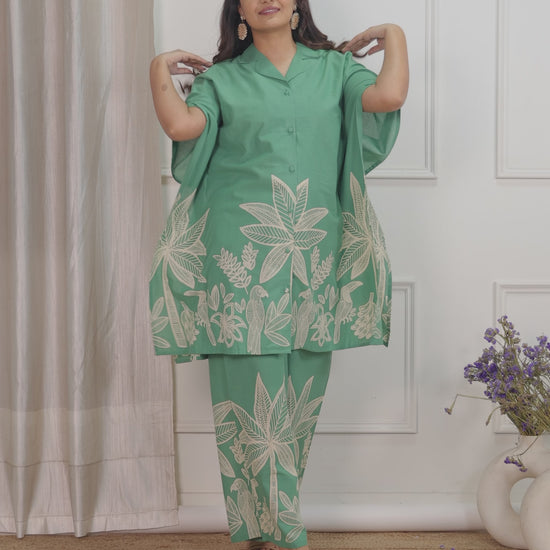 Crafted from breathable Soft Cotton, this Kaftan kurta in Green blends traditional design with everyday comfort. The Placement Print finish adds artisanal charm, while the silhouette ensures effortless elegance. Style with palazzos or leggings for versatile looks, from workdays to weekend outings. Designed for easy care, this kurta stays beautiful with simple care instructions.