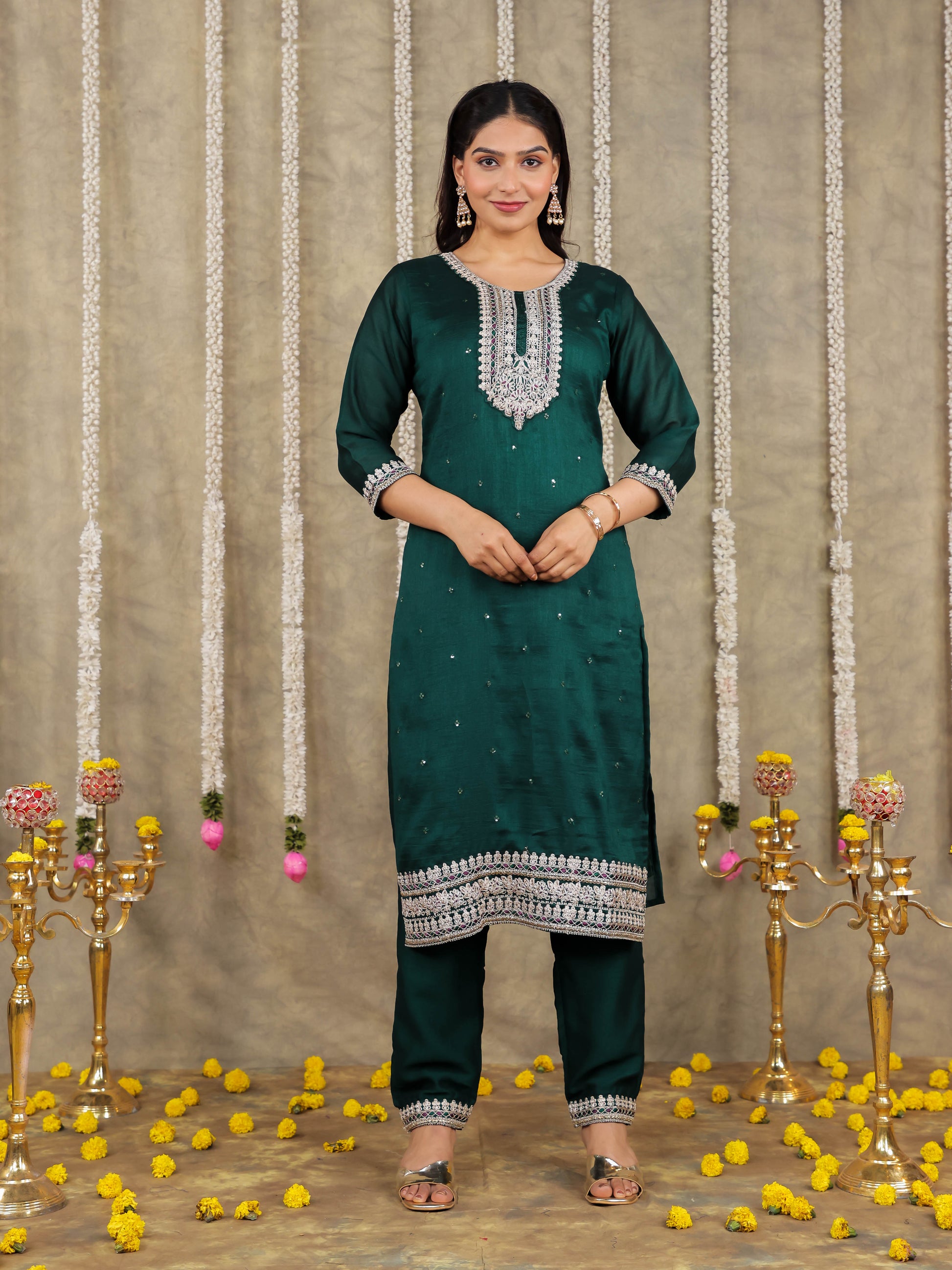 Elevate your ethnic wardrobe with this Georgette kurta in a stunning Green hue. Featuring an elegant fit and striking Solid accents, it’s perfect for festive celebrations or family gatherings. The neckline and provide all-day comfort. Team with gold-toned accessories for an effortlessly chic vibe. Maintain its charm by following proper care instructions.