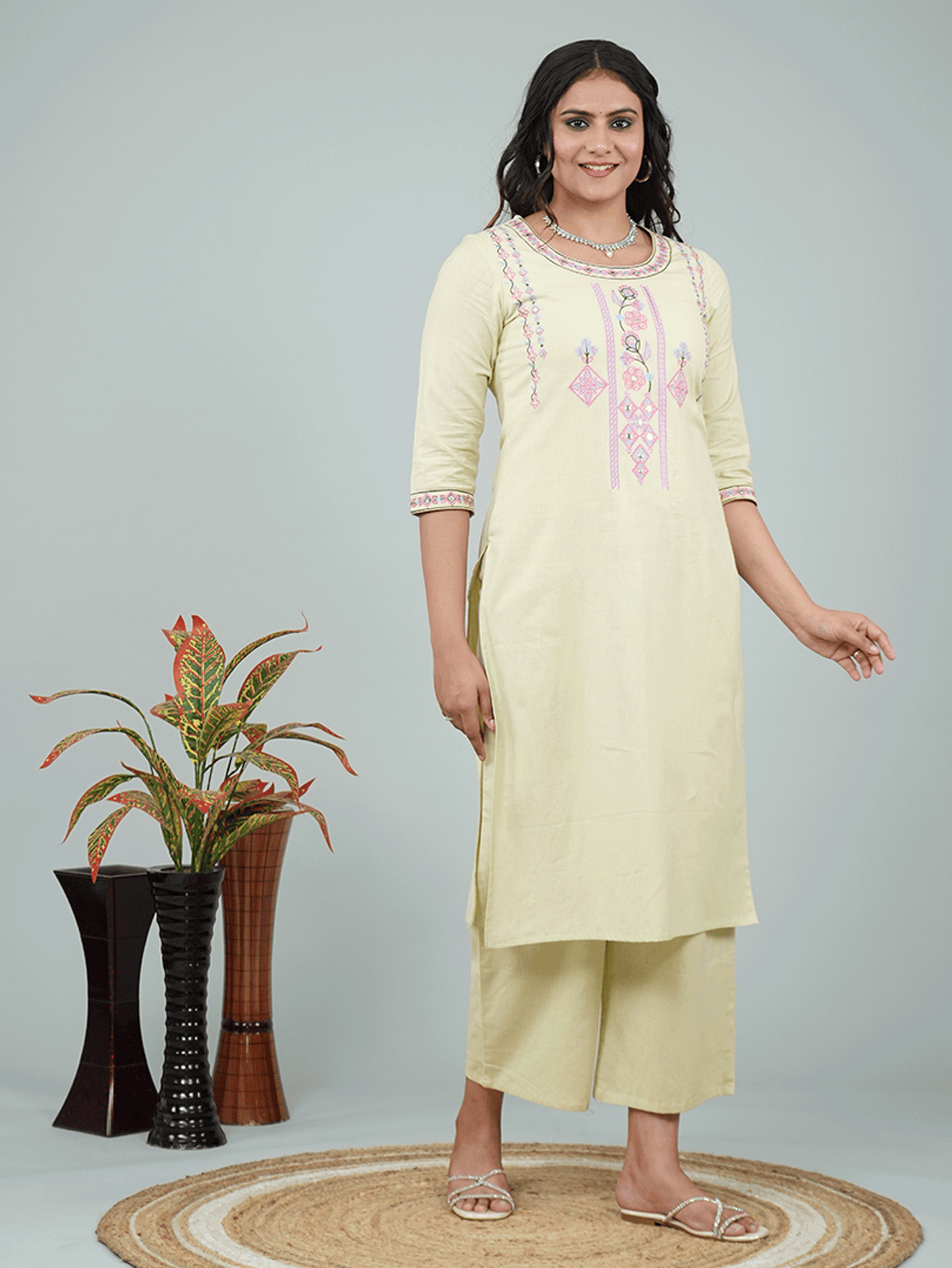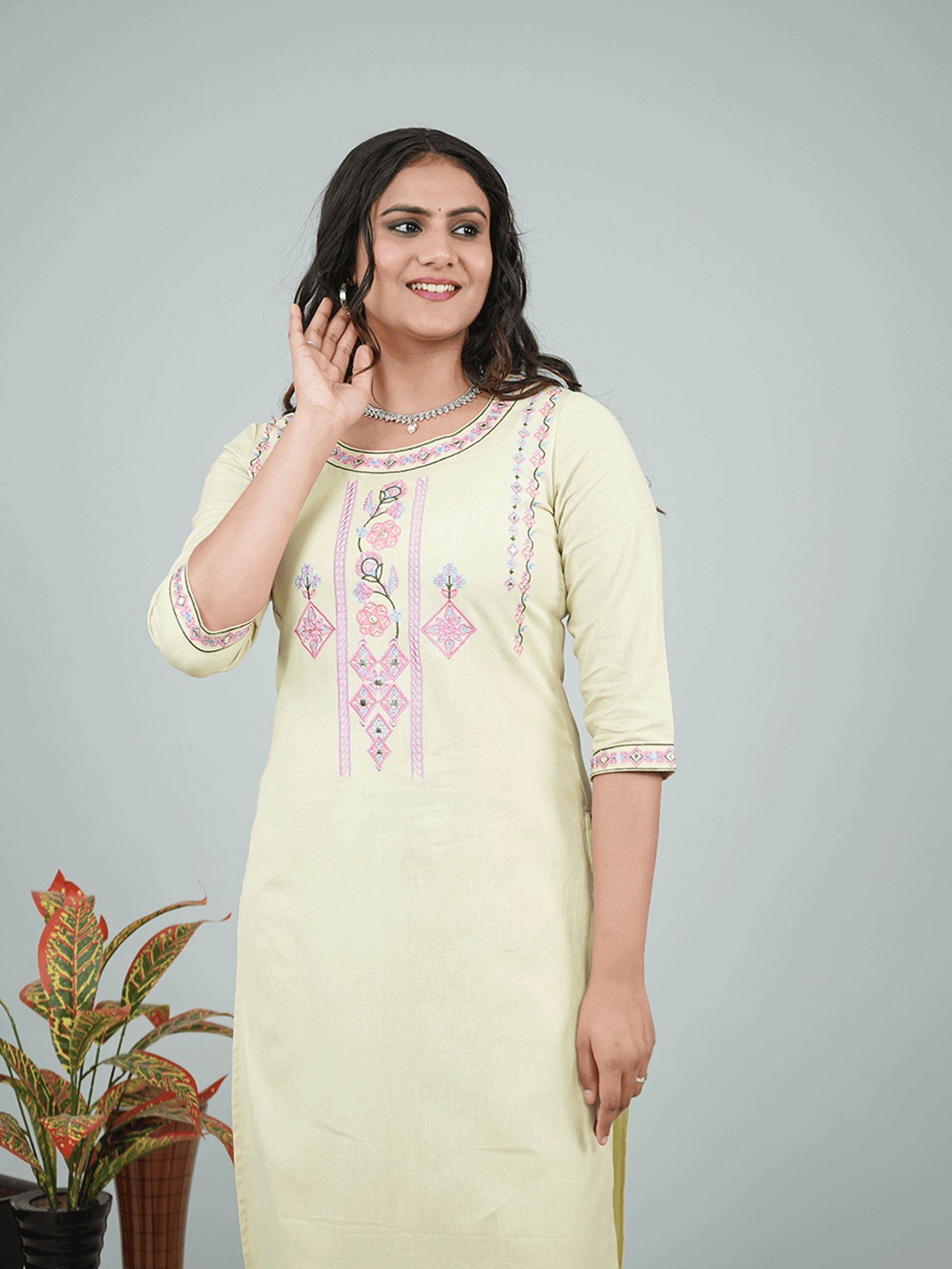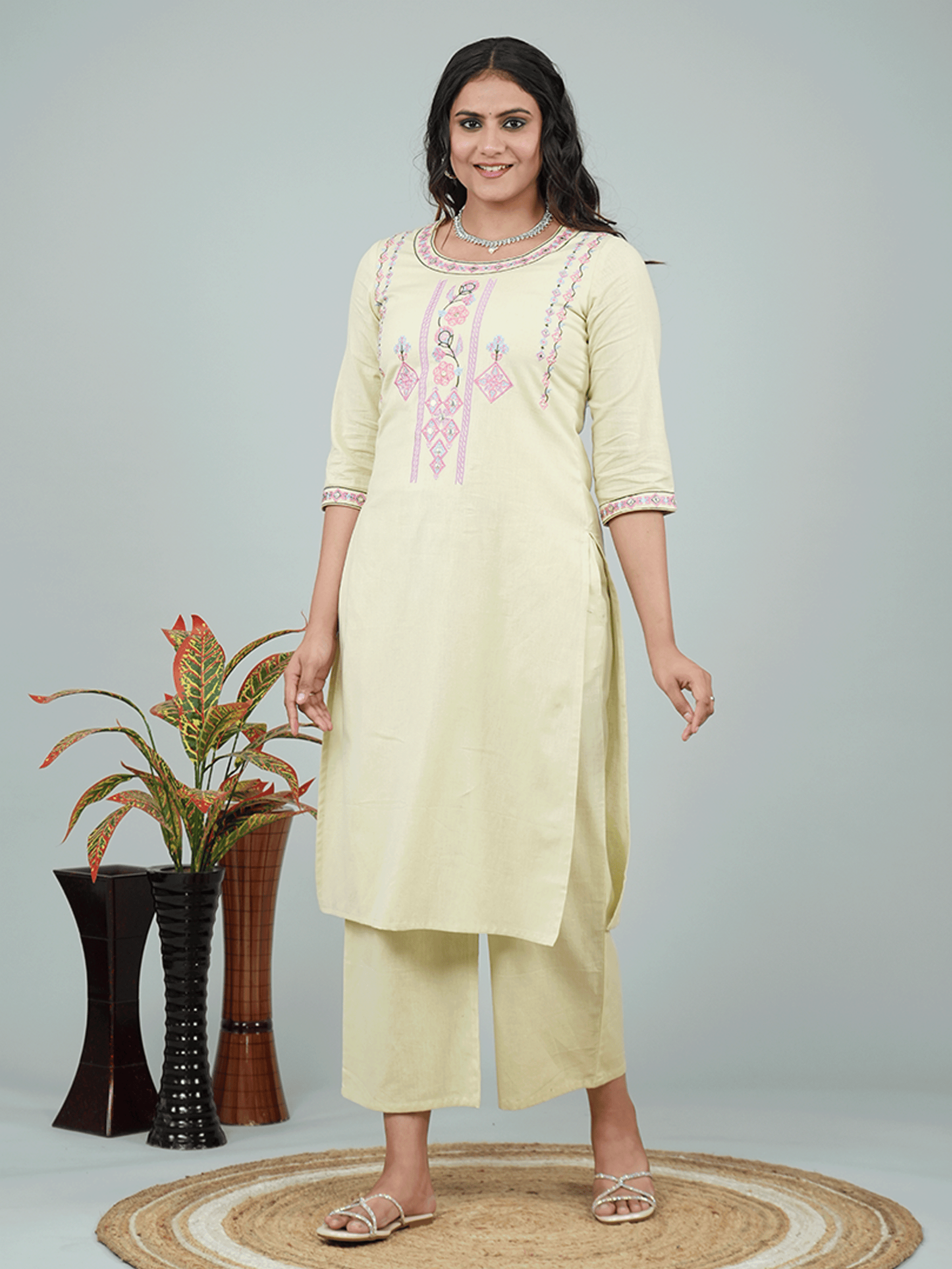 This Green Linen Cotton kurta with a Straight flare is designed for comfort and style. Featuring a Round neckline, 3/4 Sleeve sleeves, and a graceful Calf Length hemline, it’s perfect for festive wear or semi-formal gatherings. The Solid highlights add depth and texture, making it a standout piece. Accessorise with a contrasting dupatta and keep it pristine by following proper care instructions.