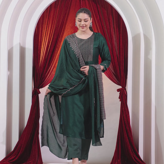 Embroidered Poly Silk Solid Straight Green Kurta