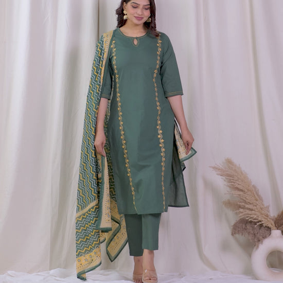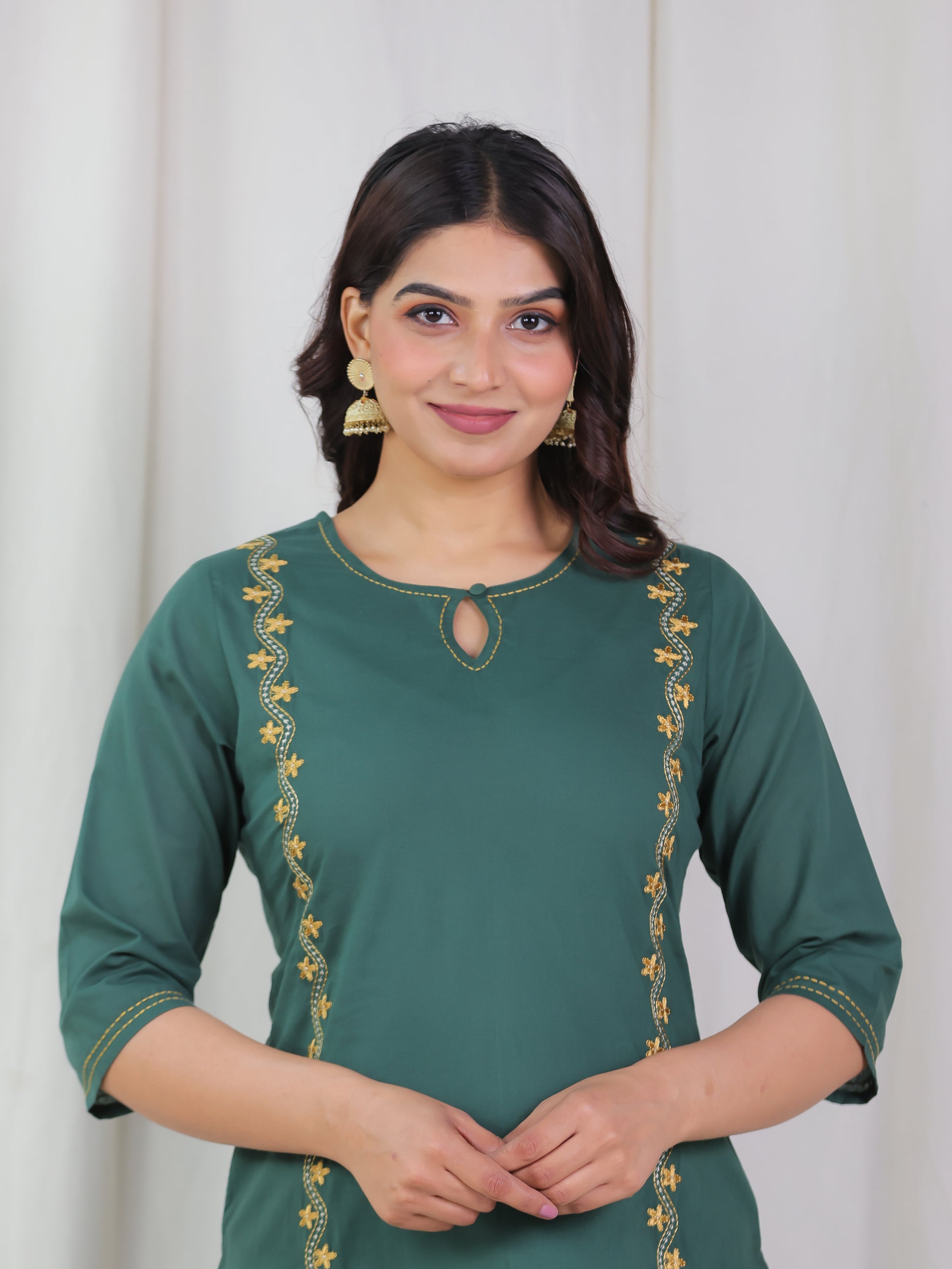 Embroidered Soft Cotton Solid Straight Green Kurta