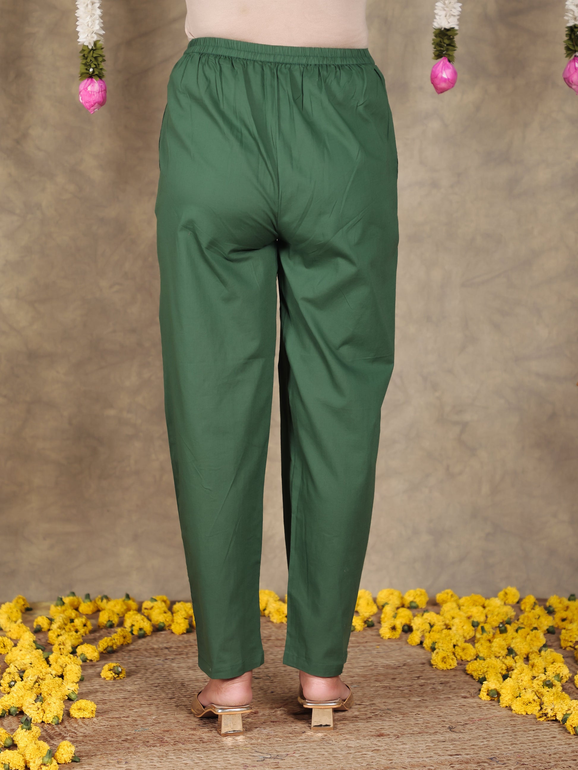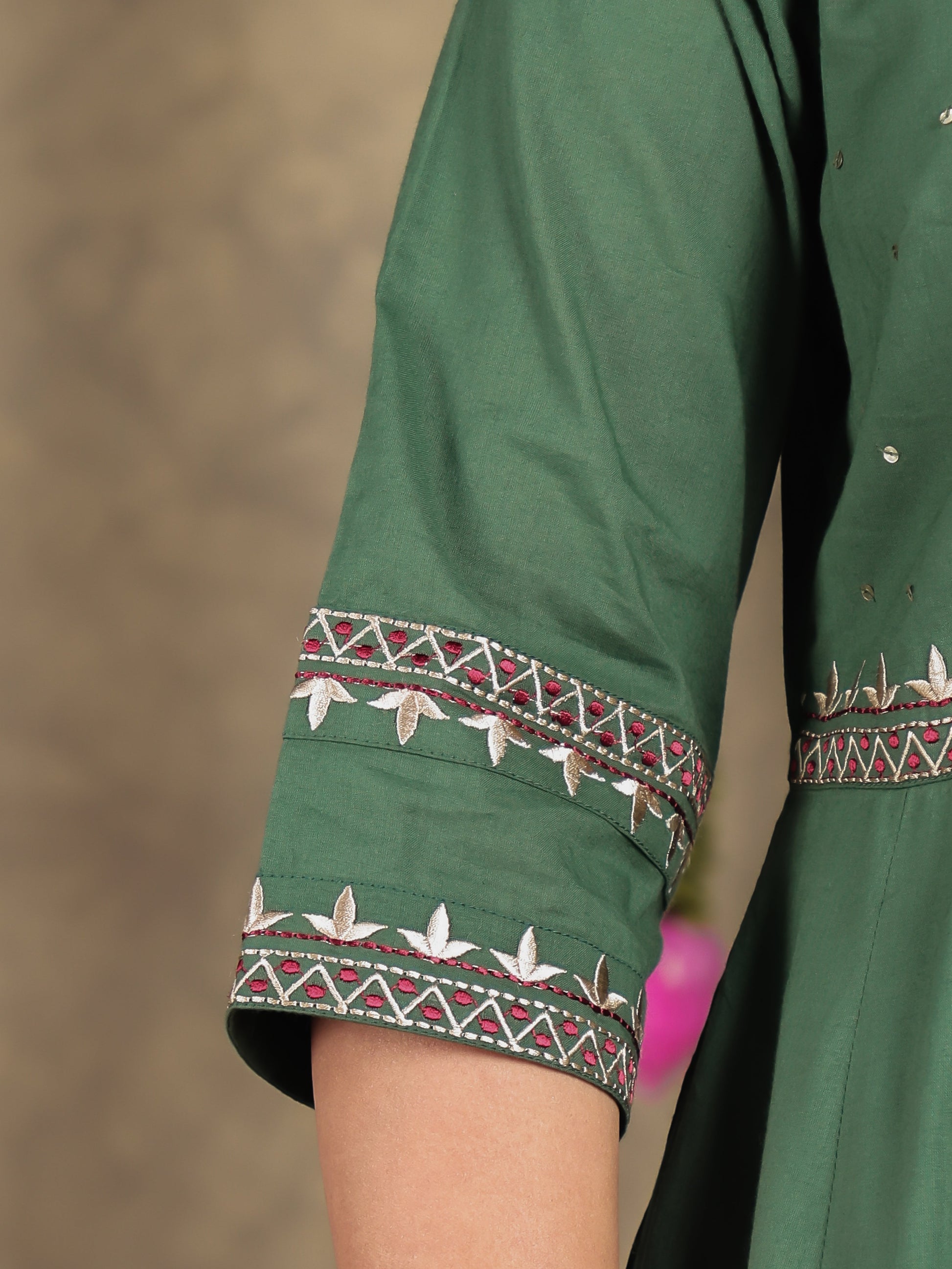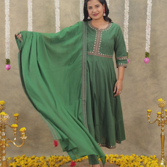 Embroidered Soft Cotton Solid Anarkali Green Kurta