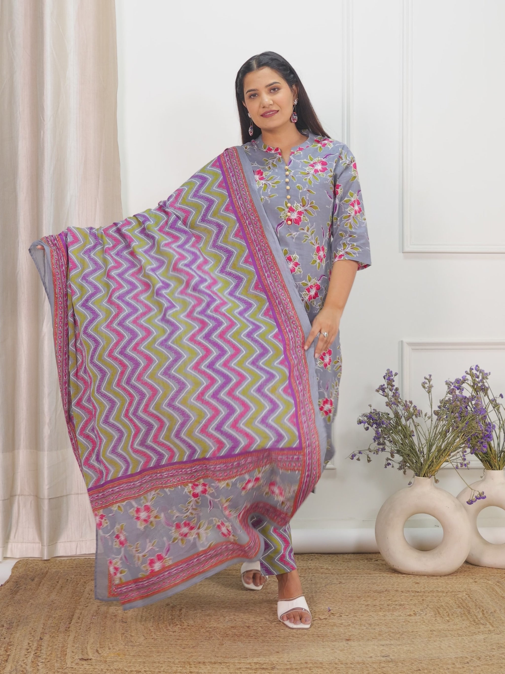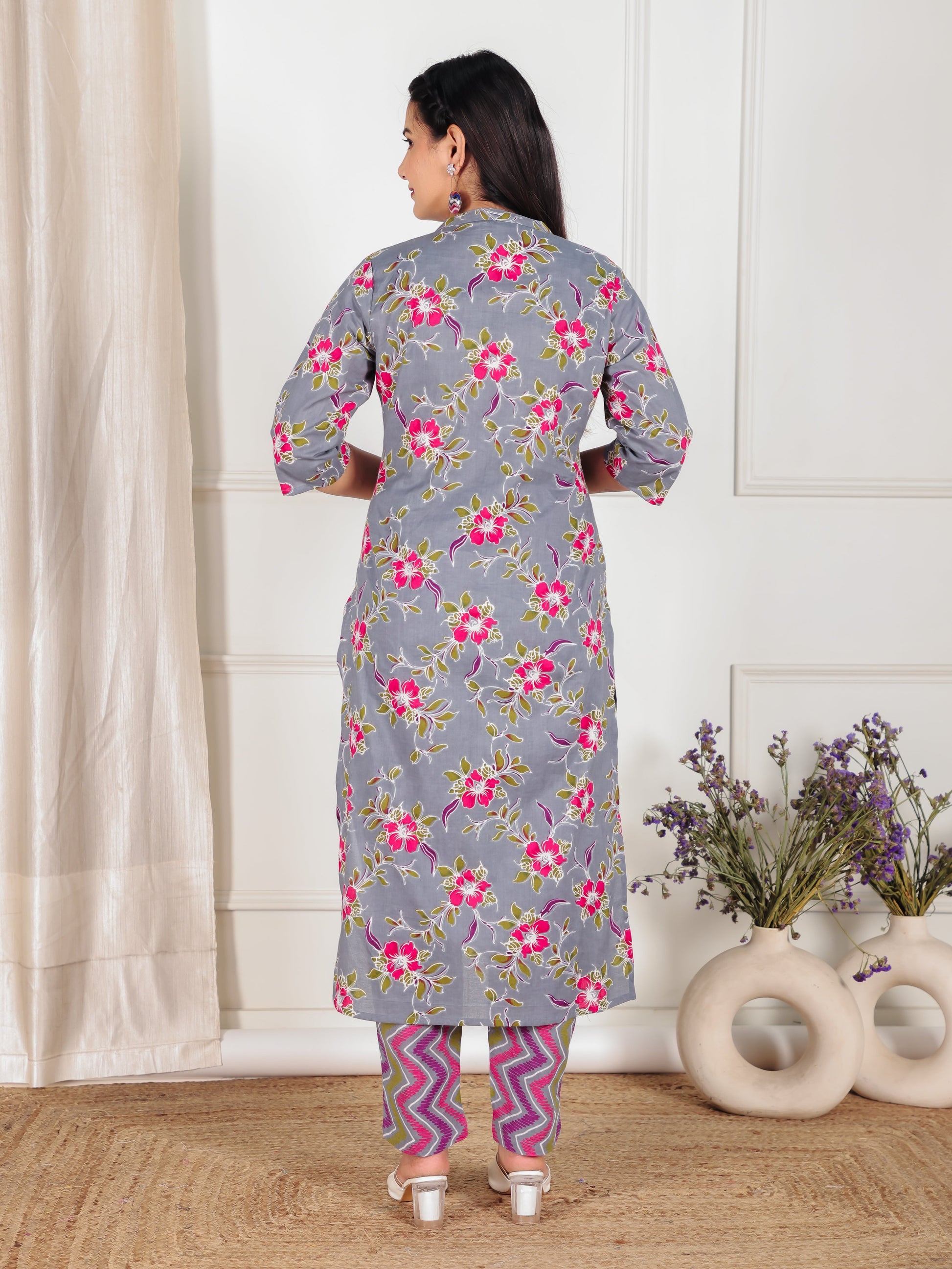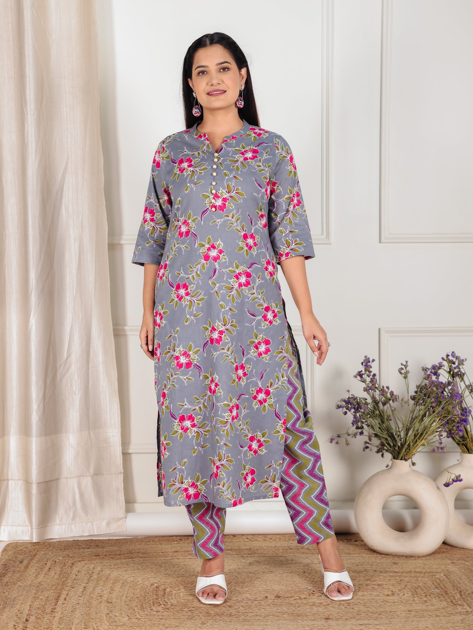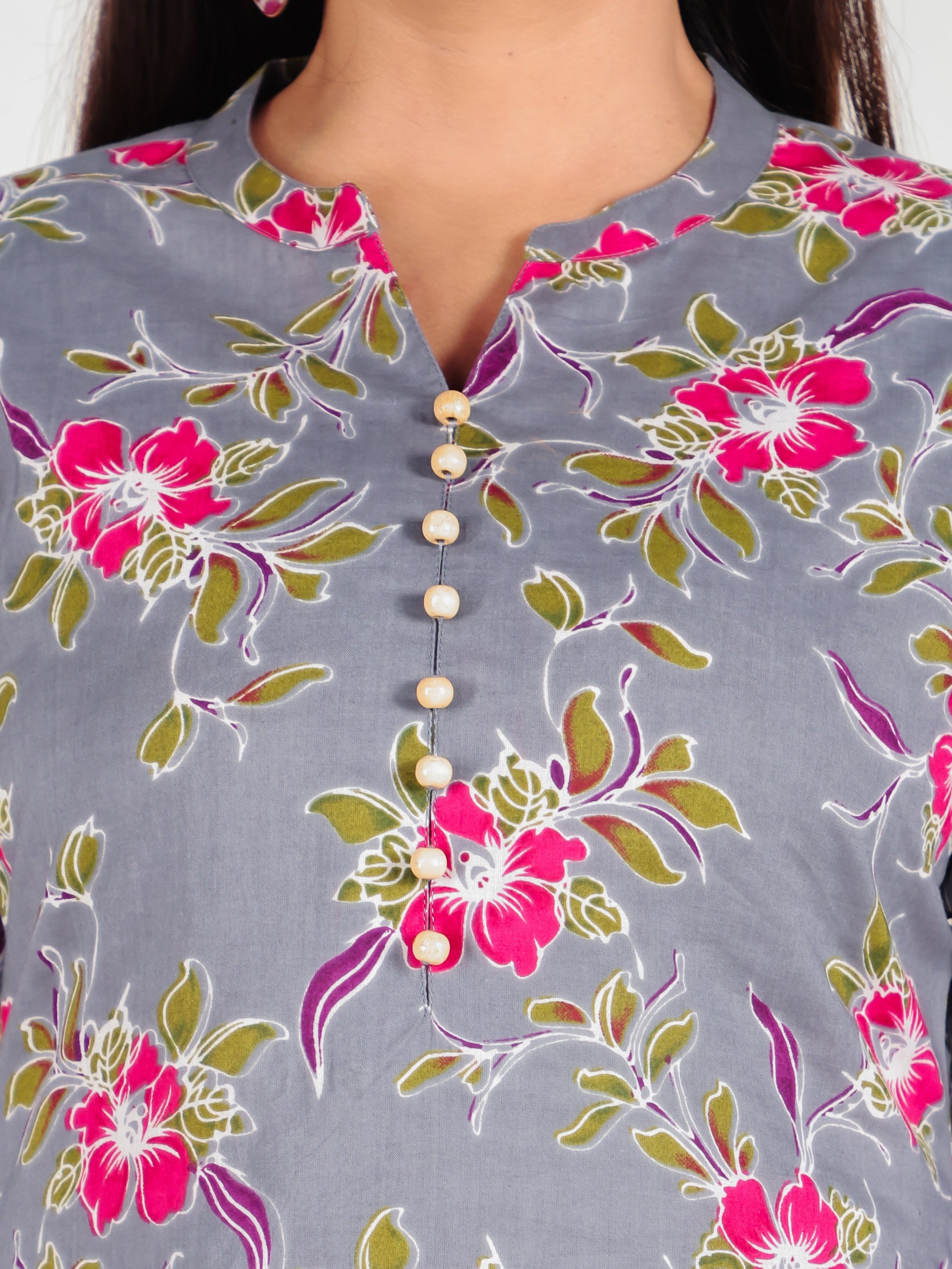 Elevate your ethnic wardrobe with this Soft Cotton kurta in a stunning Grey hue. Featuring an elegant Straight fit and striking Floral accents, it’s perfect for festive celebrations or family gatherings. The Mandarin Collar neckline and 3/4 Sleeve provide all-day comfort. Team with gold-toned accessories for an effortlessly chic vibe. Maintain its charm by following proper care instructions.