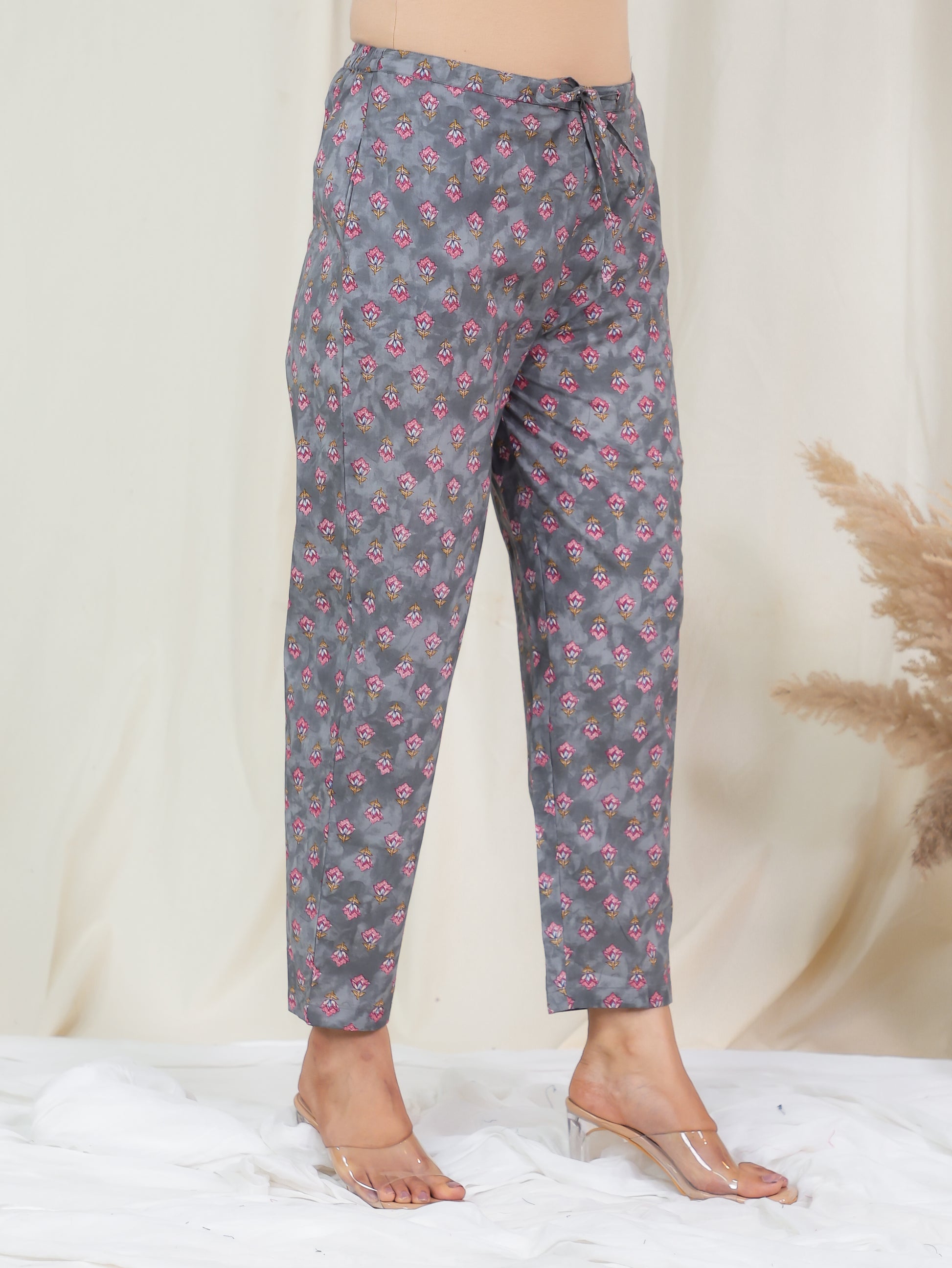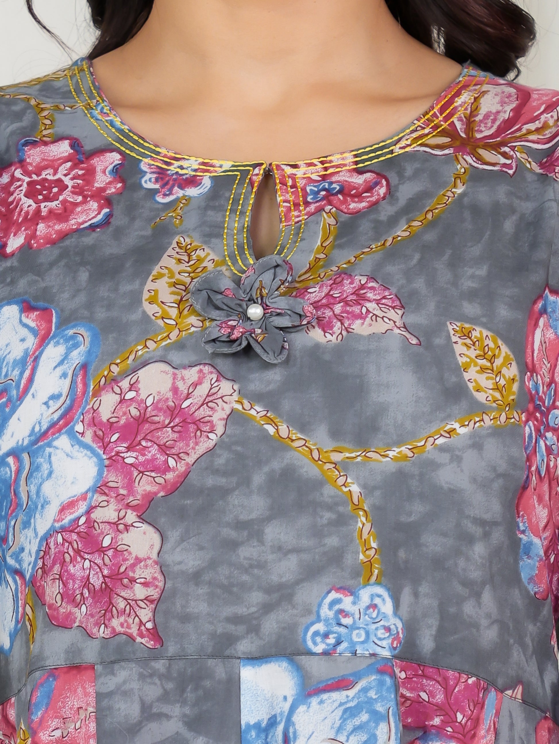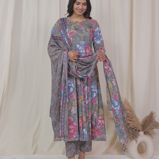 Embroidered Soft Cotton Floral Anarkali Grey Kurta