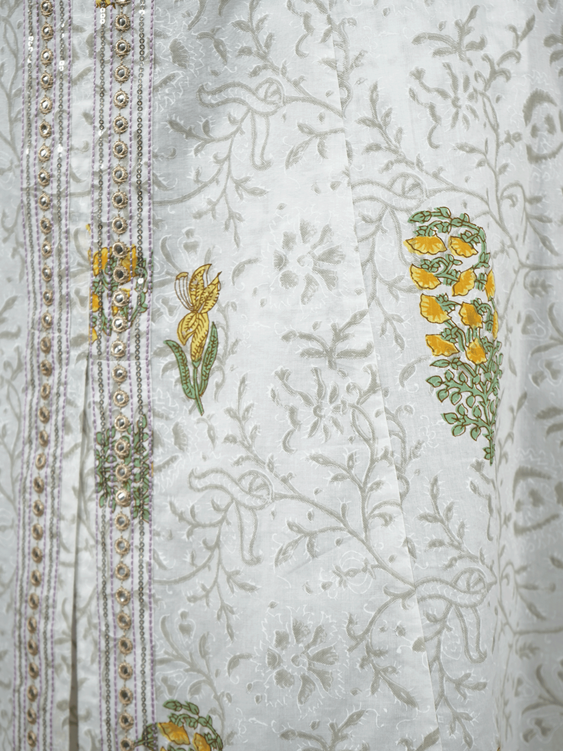 Embroidered Soft Cotton Floral High Low Grey Kurta