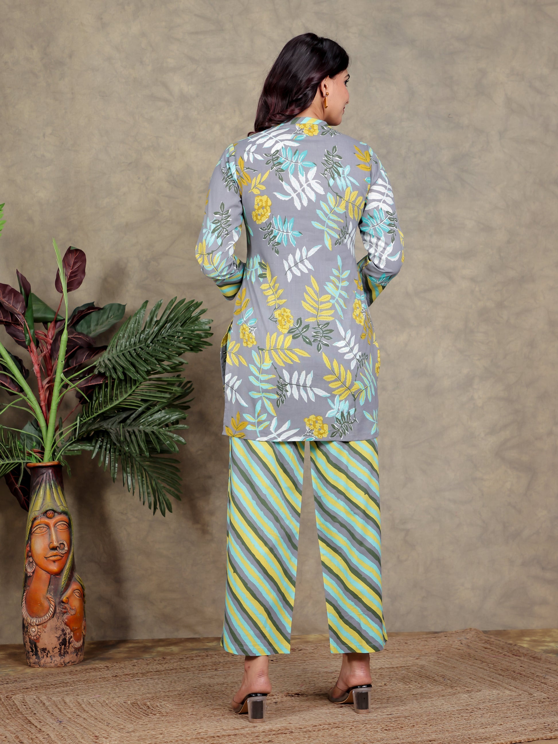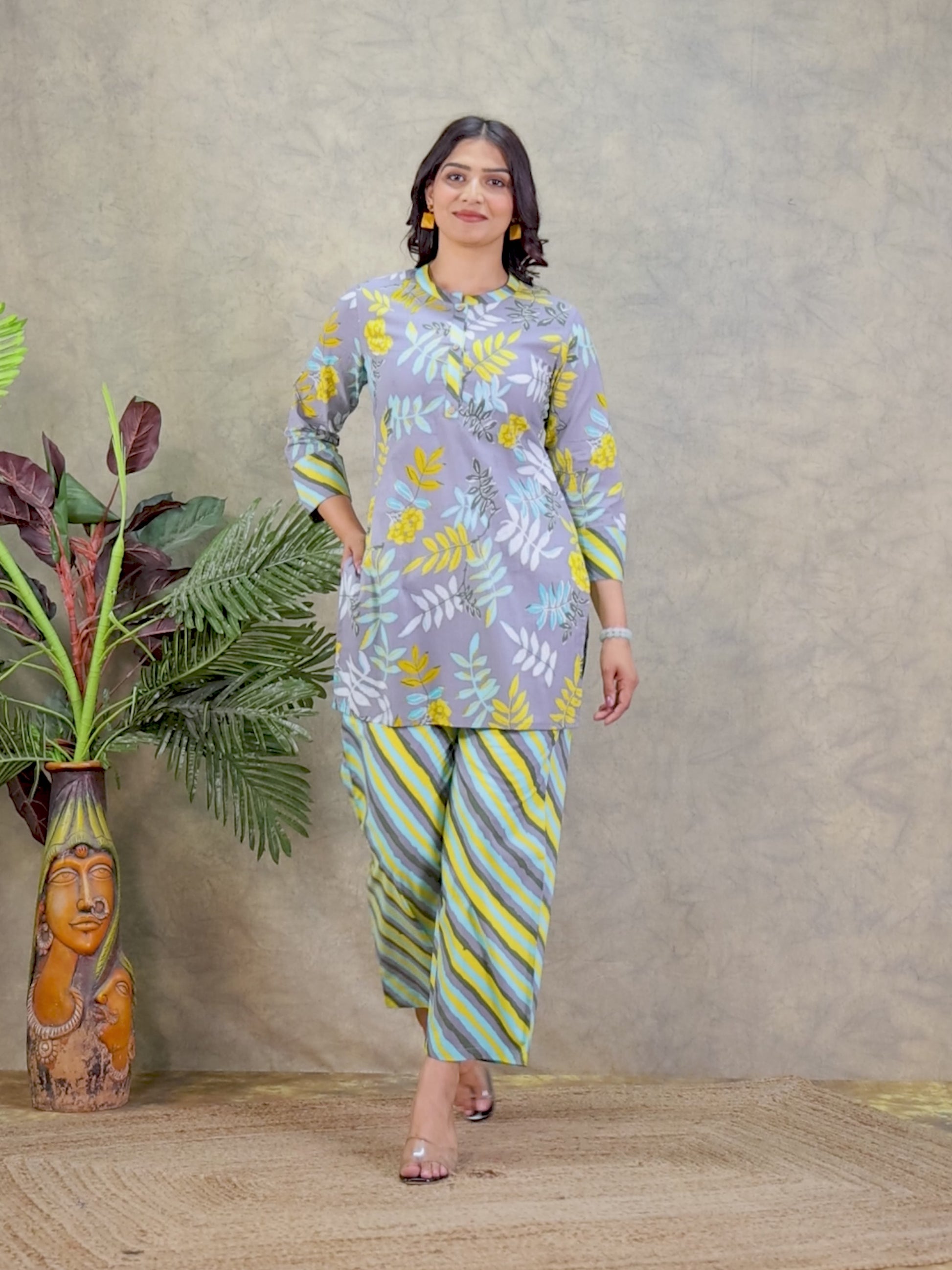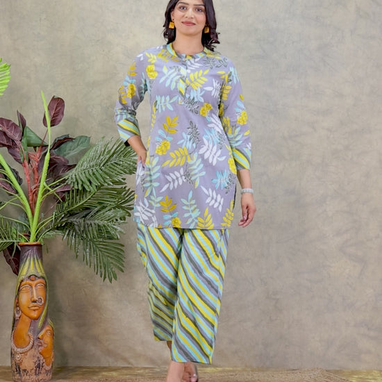 This Grey Straight kurta in soft Soft Cotton is a timeless pick for festive and casual wear. Designed with a Collared neckline and 3/4 Sleeve sleeves, its graceful Short cut flatters all body types. The delicate Foliage detailing adds a touch of sophistication. Pair it with statement earrings and juttis for a polished look. Maintain its pristine look by following proper care instructions.