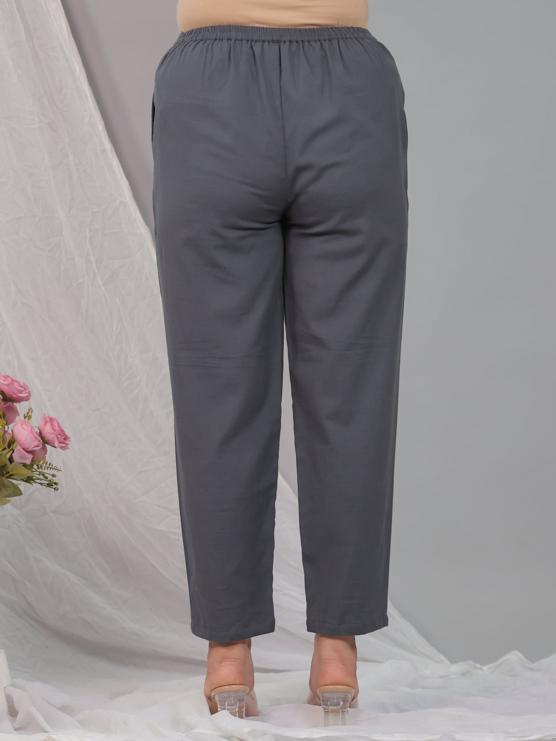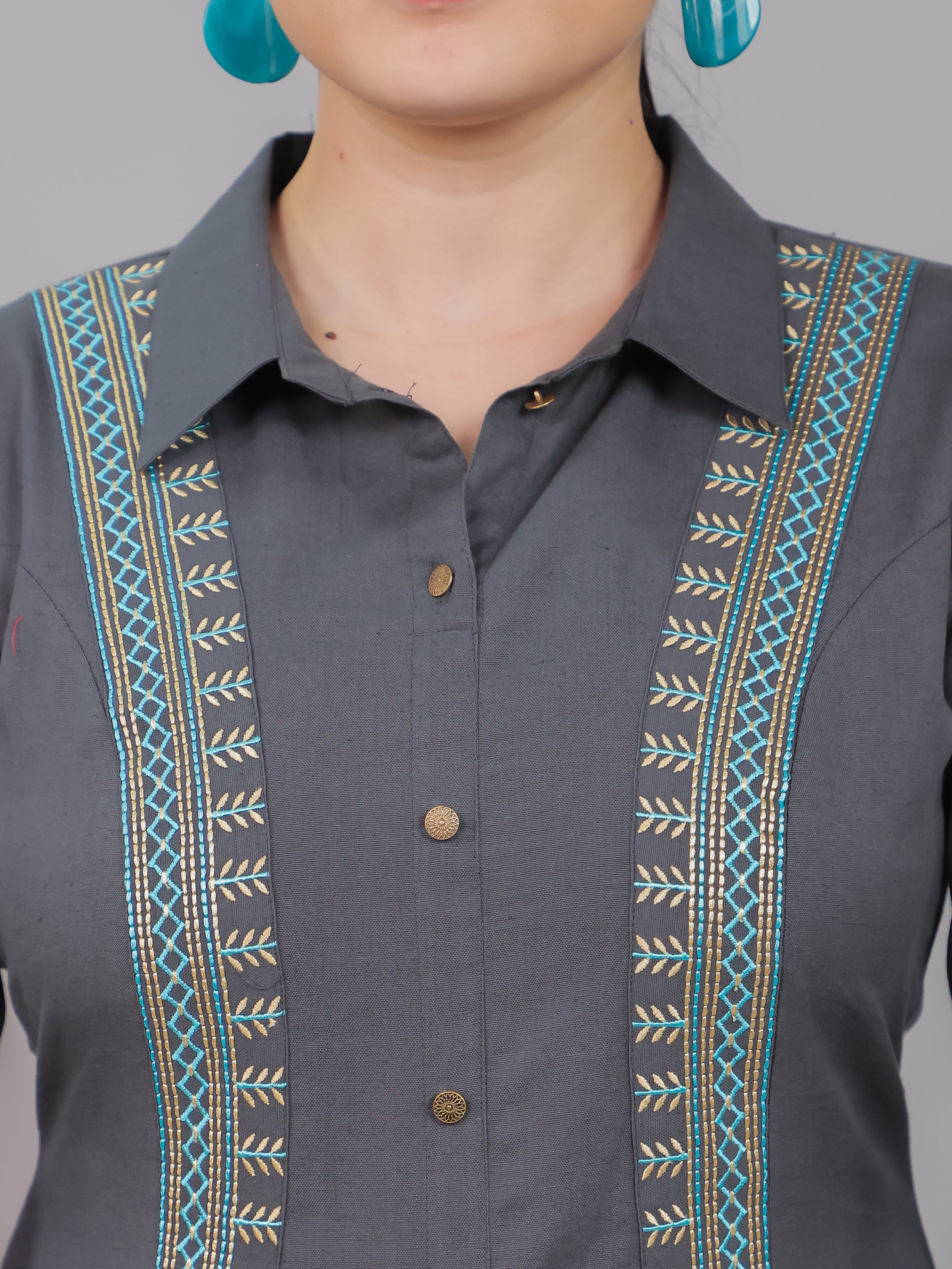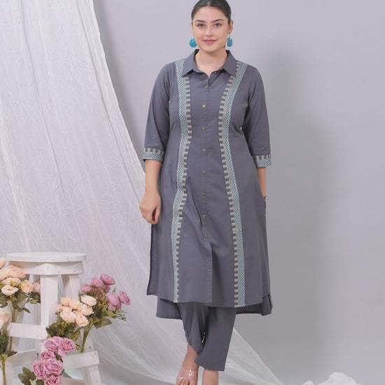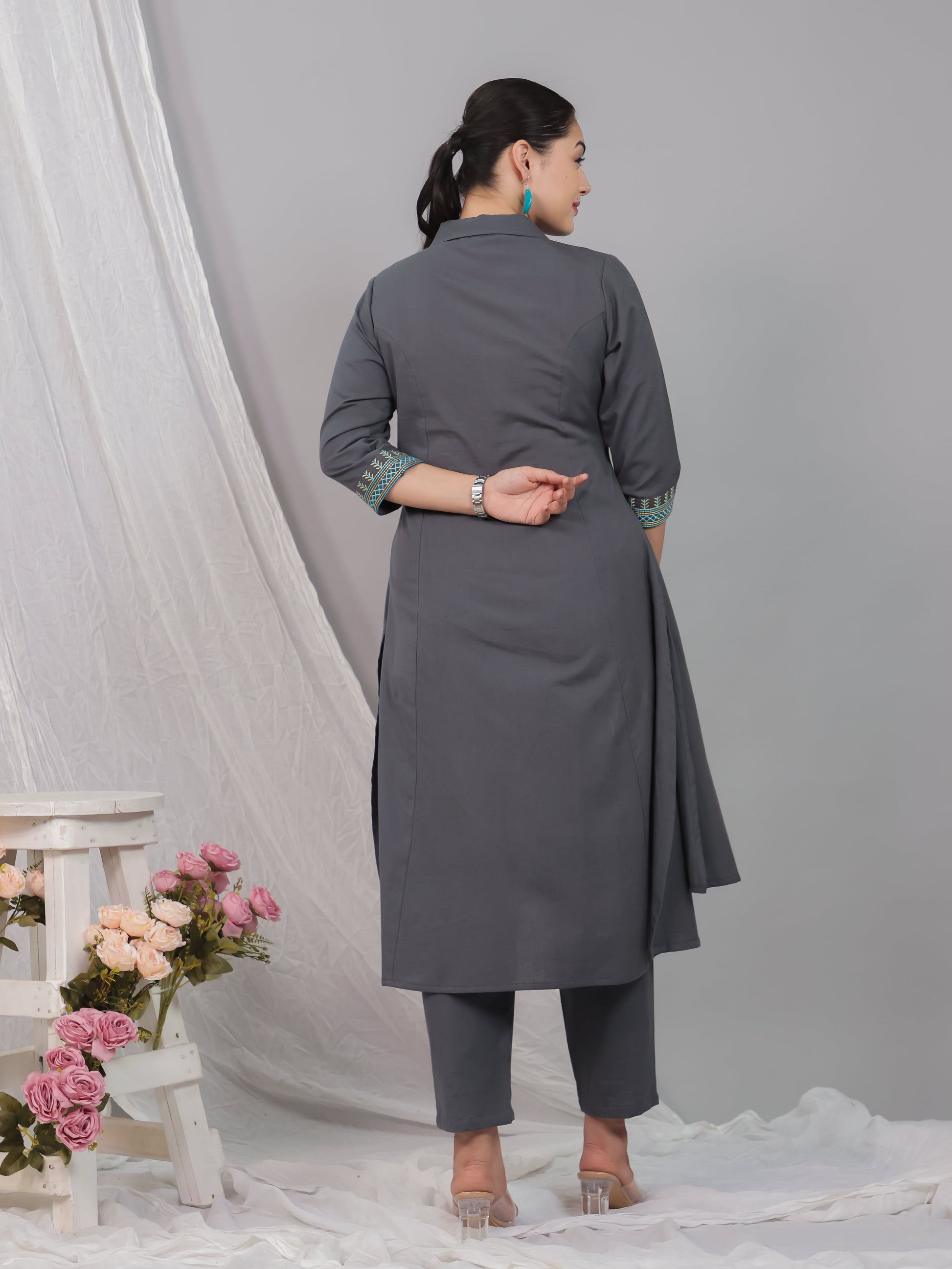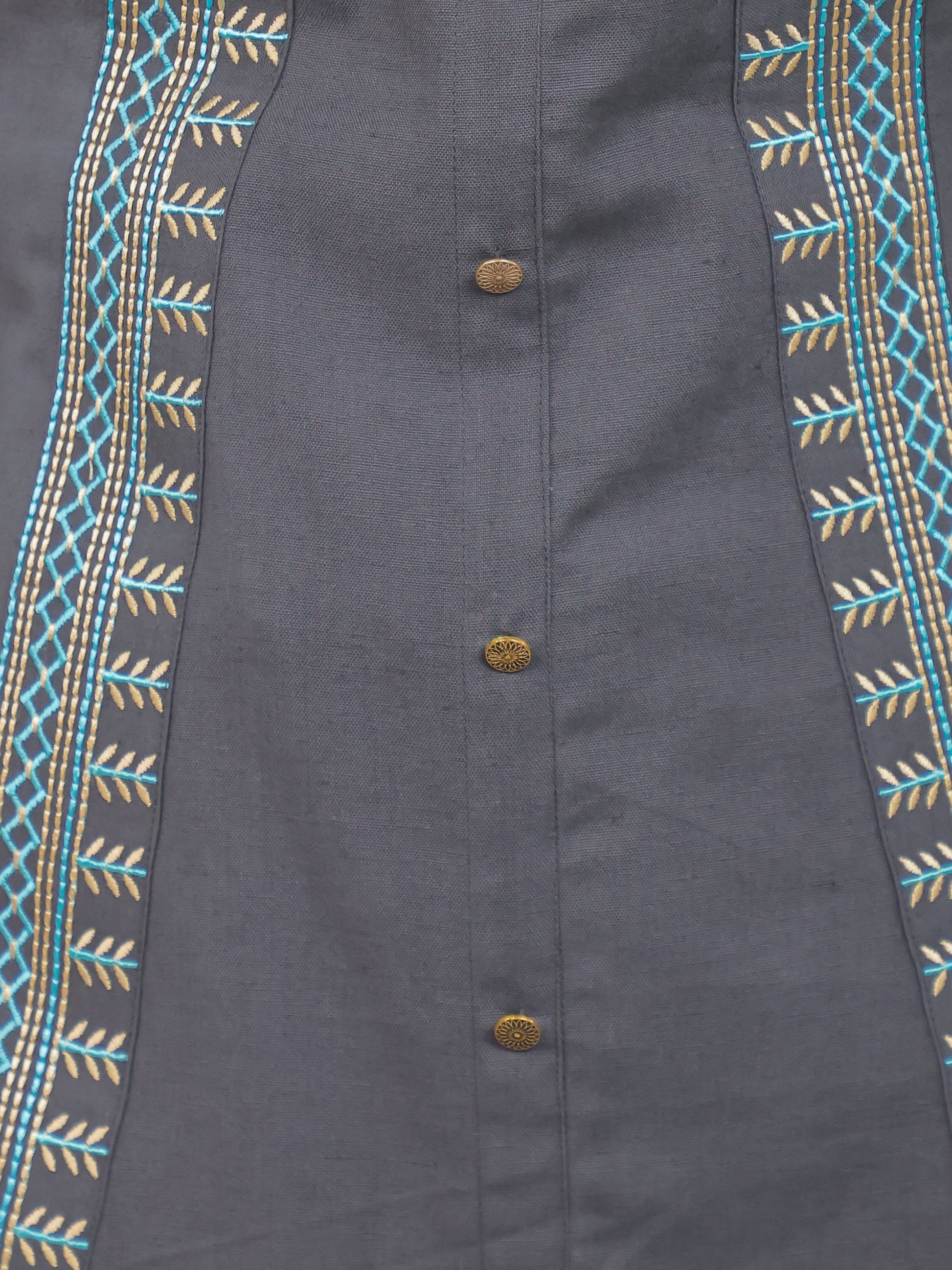Embroidered Linen Cotton Solid High Low Grey Kurta