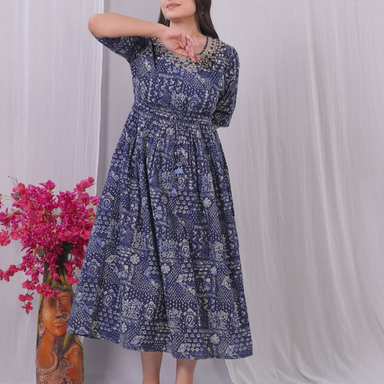 Embroidered Soft Cotton Paisley Anarkali Indigo blue Kurta