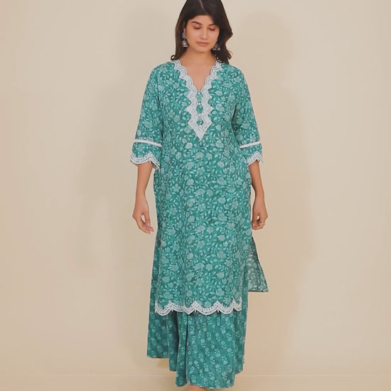 Elevate your ethnic wardrobe with this Kantha Cotton kurta in a stunning Turquoise hue. Featuring an elegant Straight fit and striking Floral accents, it’s perfect for festive celebrations or family gatherings. The V neckline and 3/4 Sleeve provide all-day comfort. Team with gold-toned accessories for an effortlessly chic vibe. Maintain its charm by following proper care instructions.