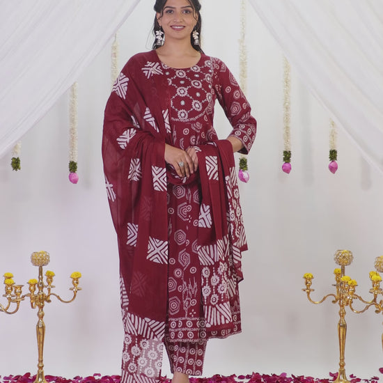 This Maroon Anarkali kurta in soft Soft Cotton is a timeless pick for festive and casual wear. Designed with a Keyhole neckline and 3/4 Sleeve sleeves, its graceful Ankle Length cut flatters all body types. The delicate Bandhani detailing adds a touch of sophistication. Pair it with statement earrings and juttis for a polished look. Maintain its pristine look by following proper care instructions.