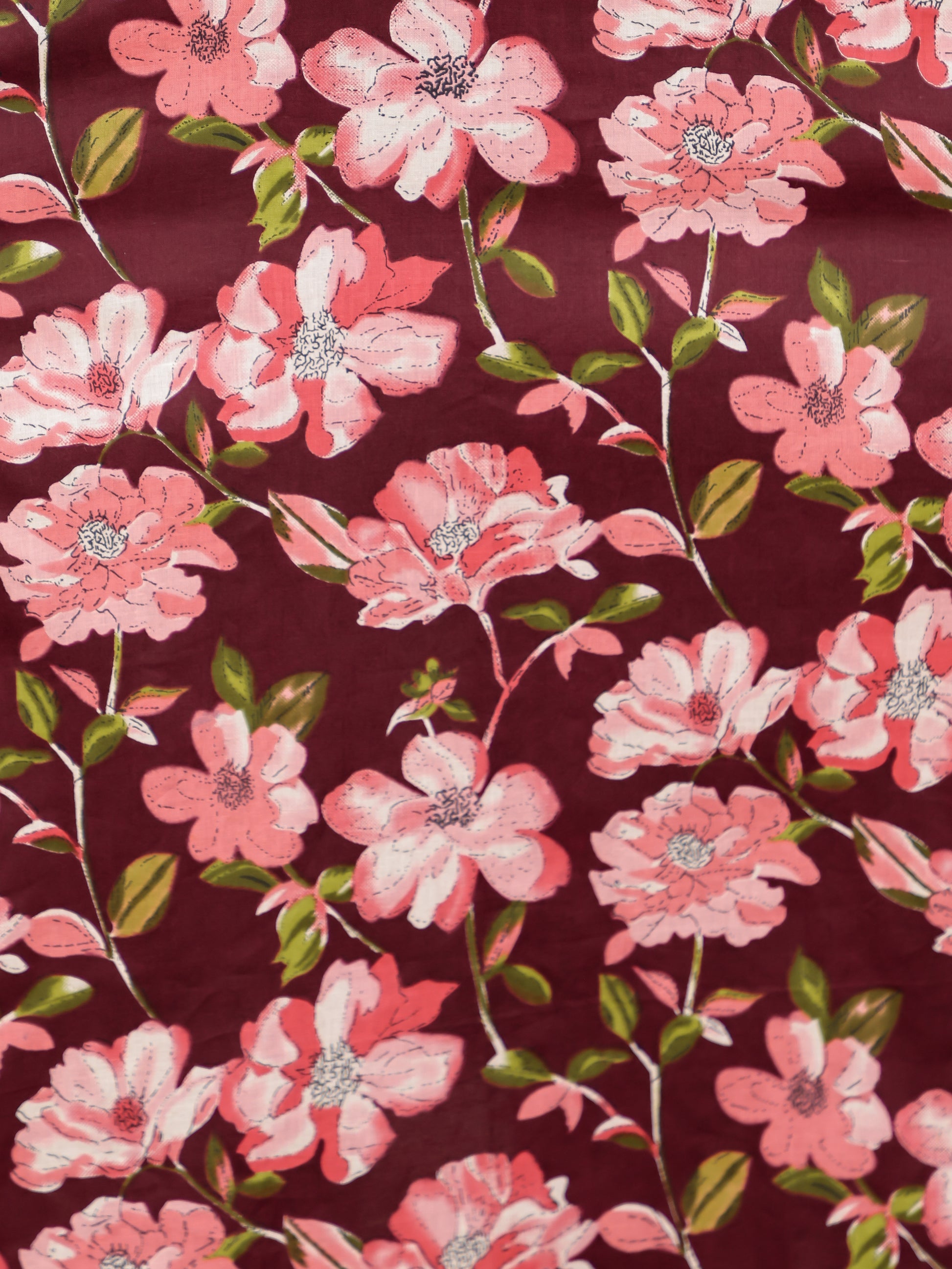 Soft Cotton Floral Kaftan Maroon Kurta