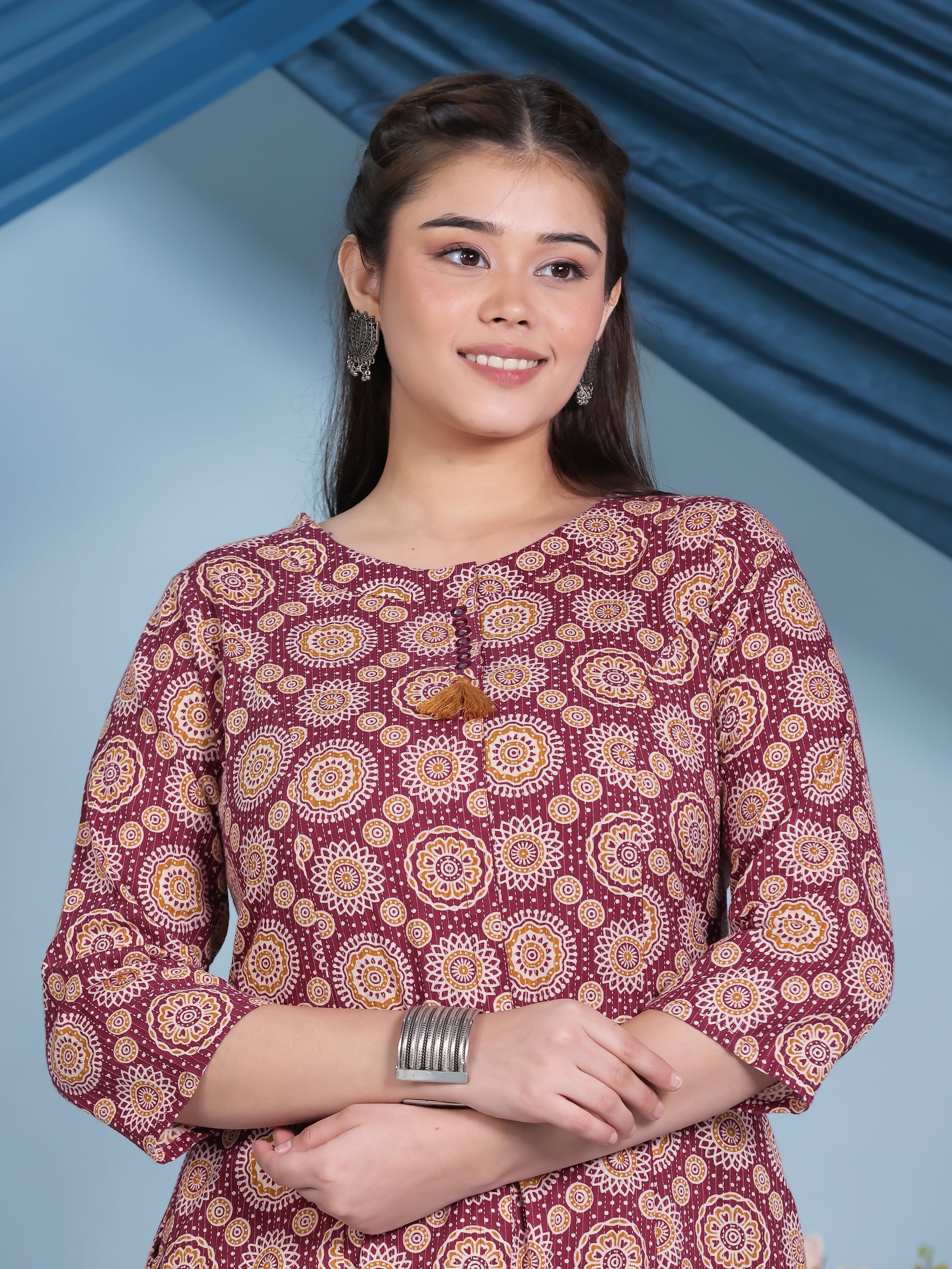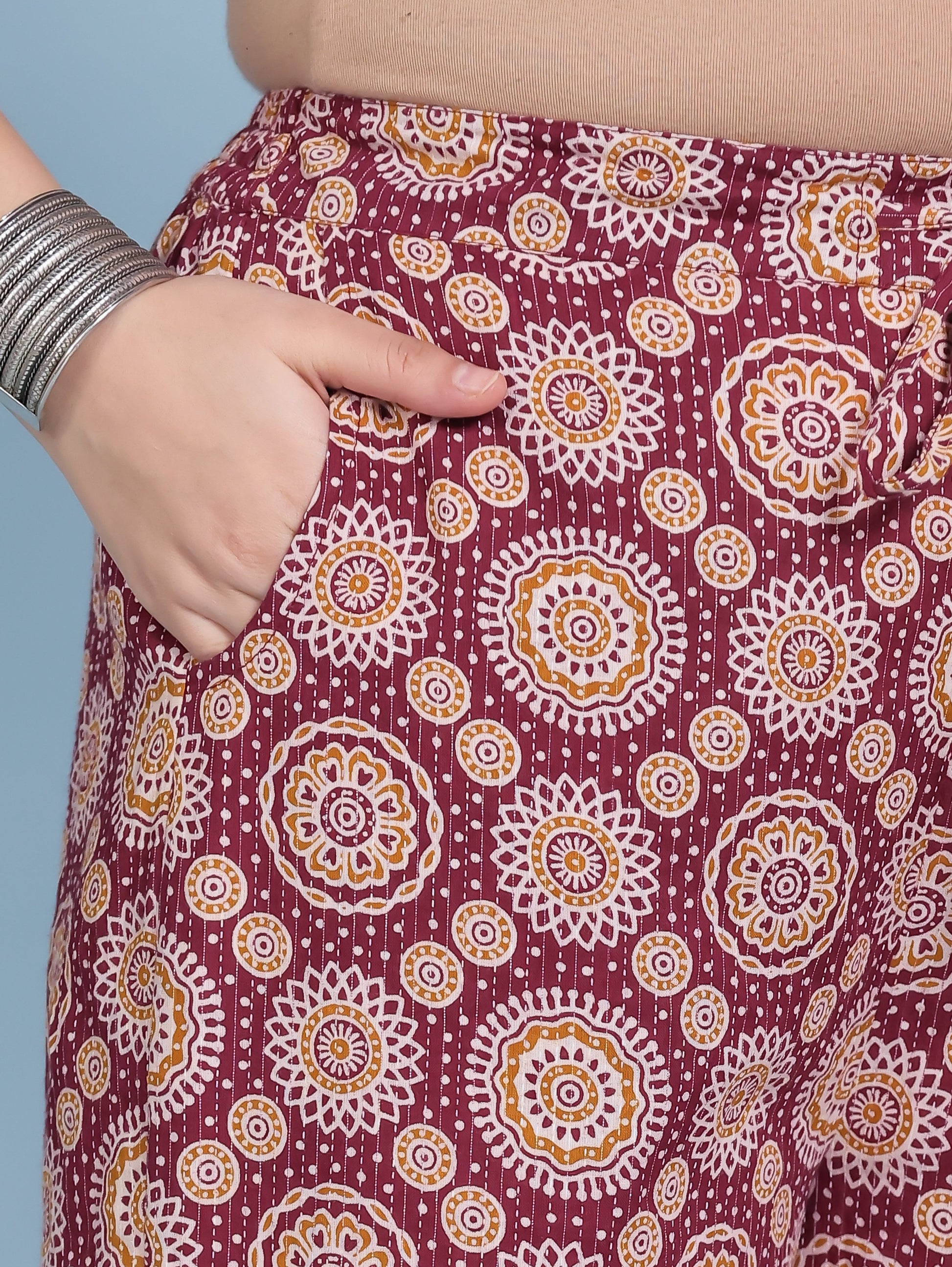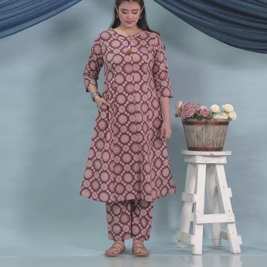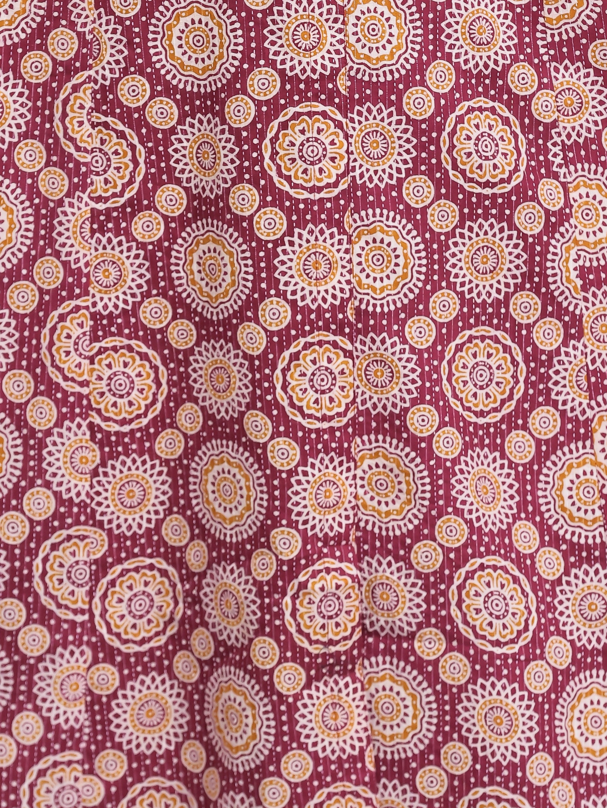 Embroidered Kantha Cotton Geometric Flared Maroon Kurta