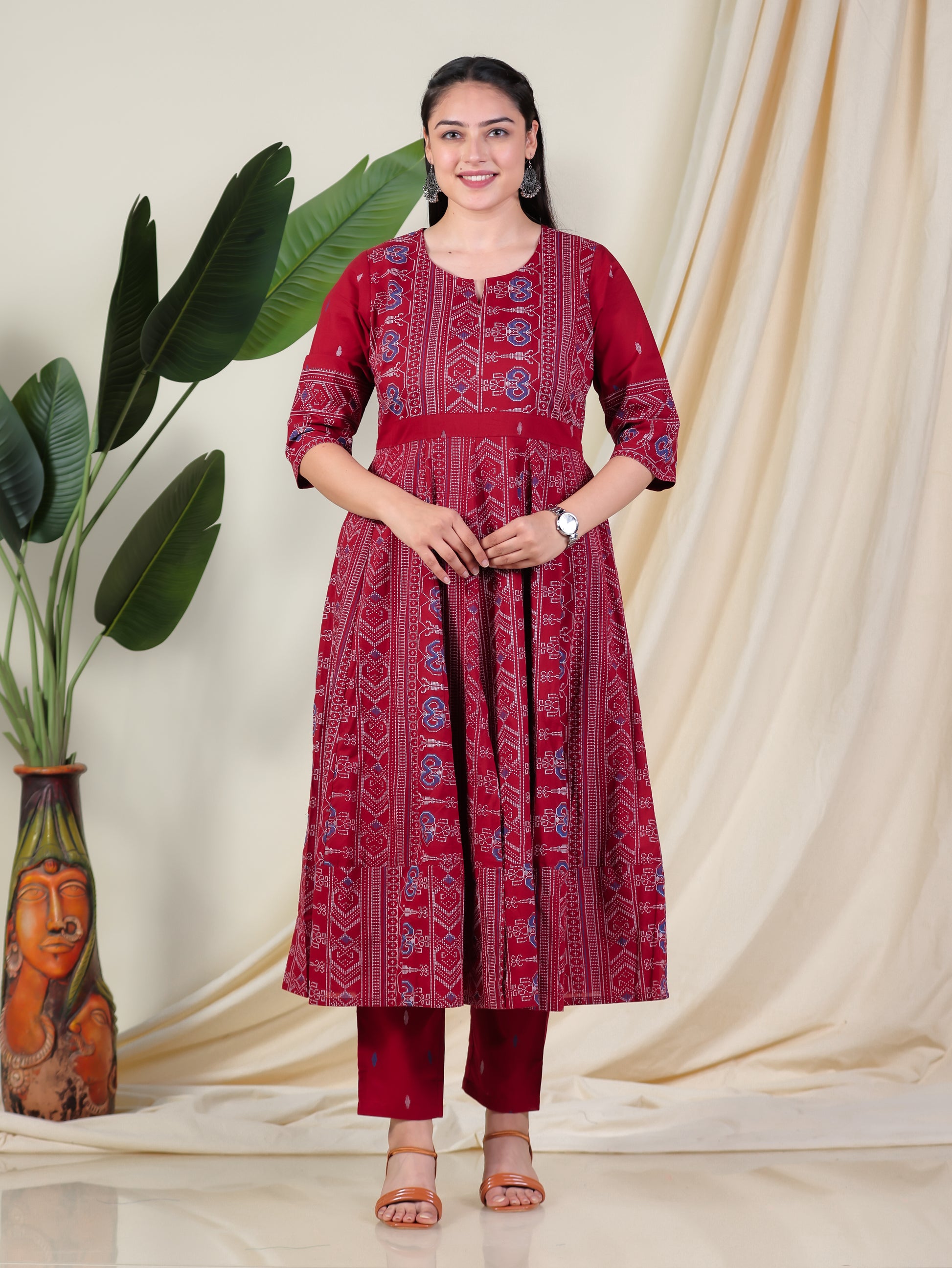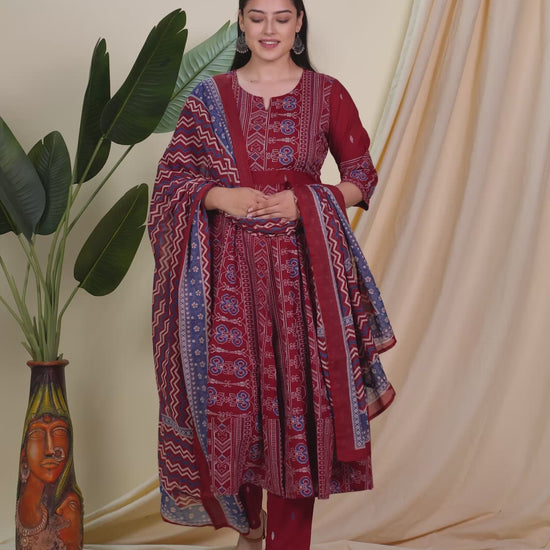 Soft Cotton Ikat Anarkali Maroon Kurta