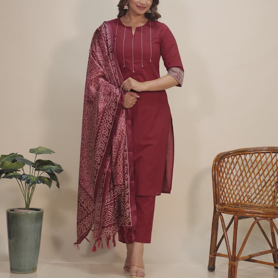 Embroidered Soft Cotton Solid Straight Maroon Kurta