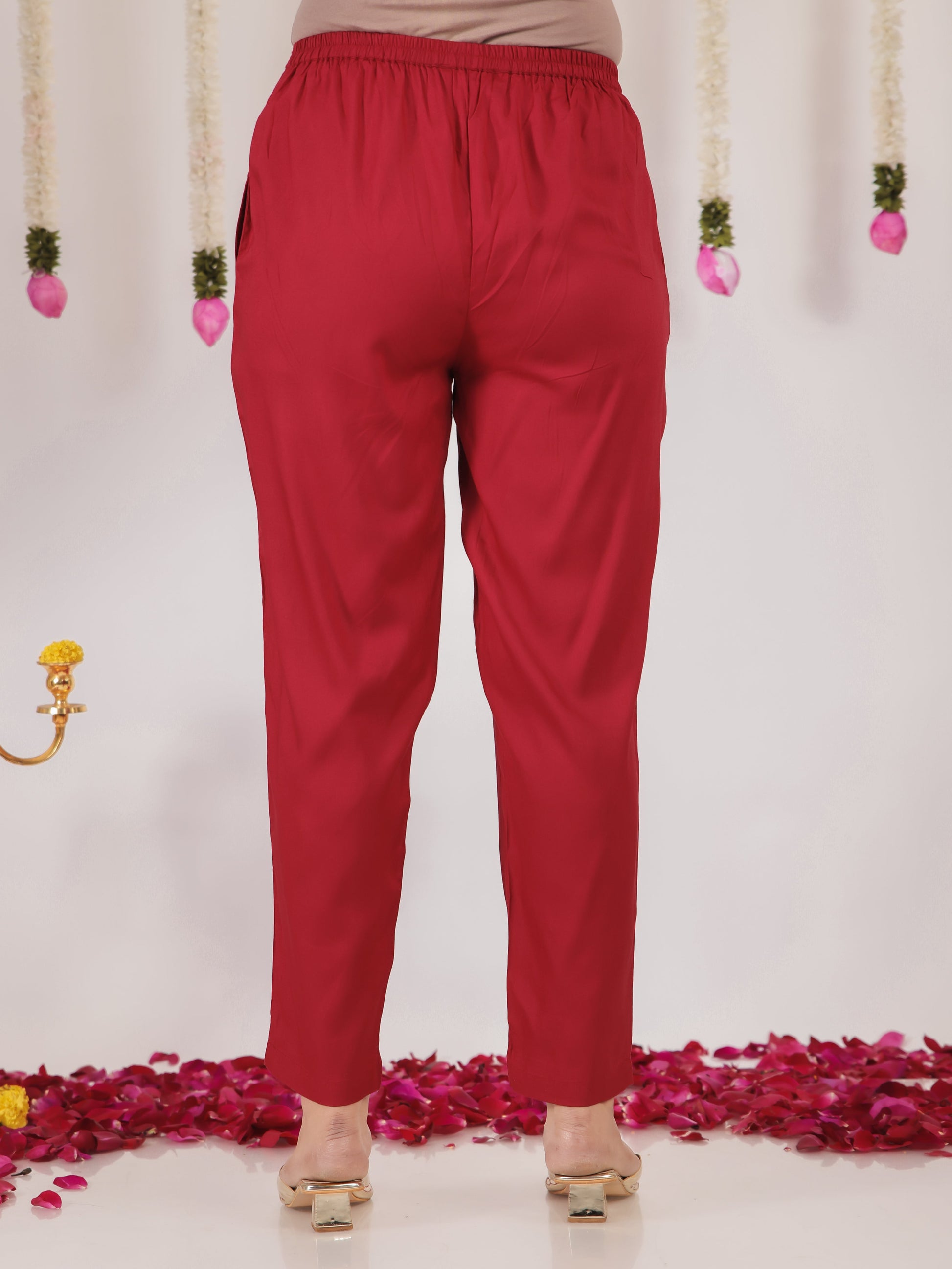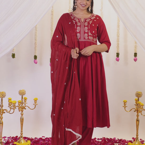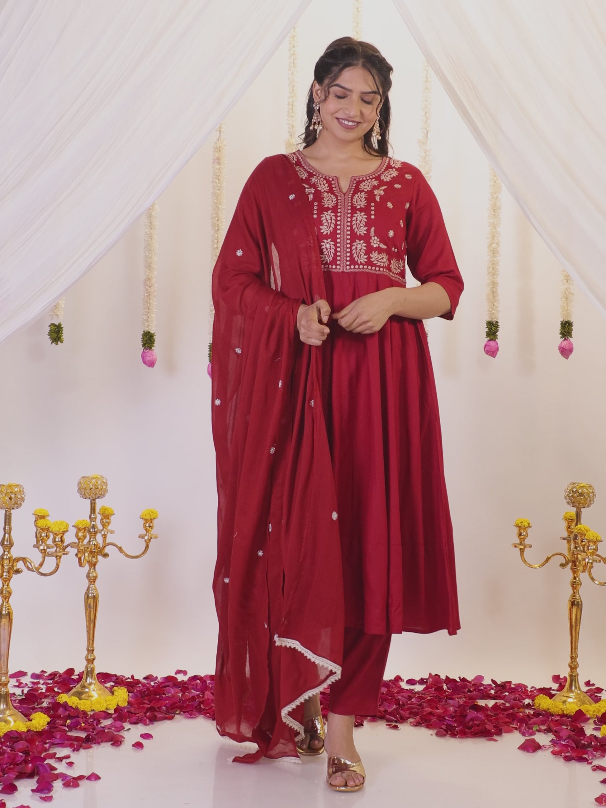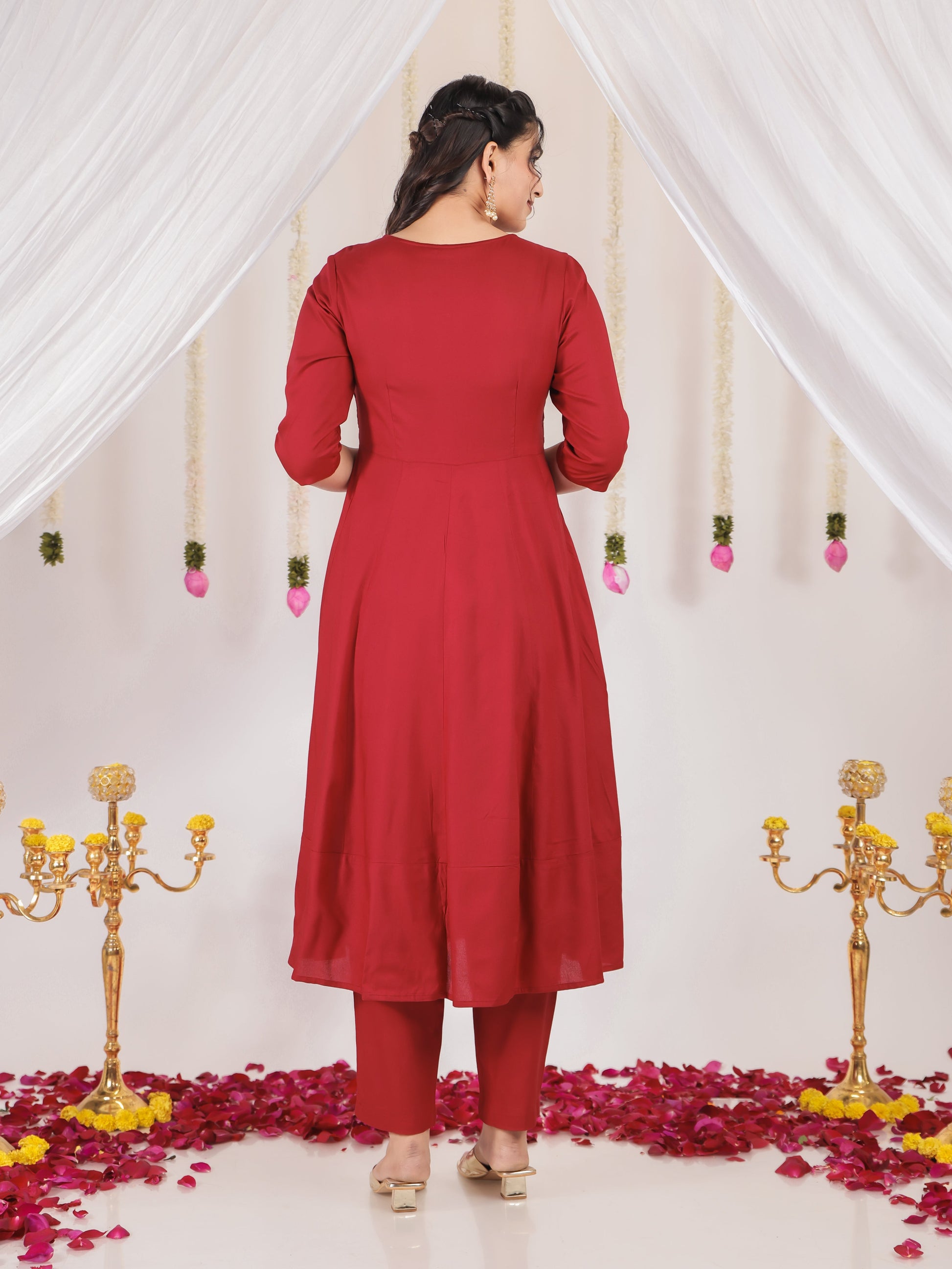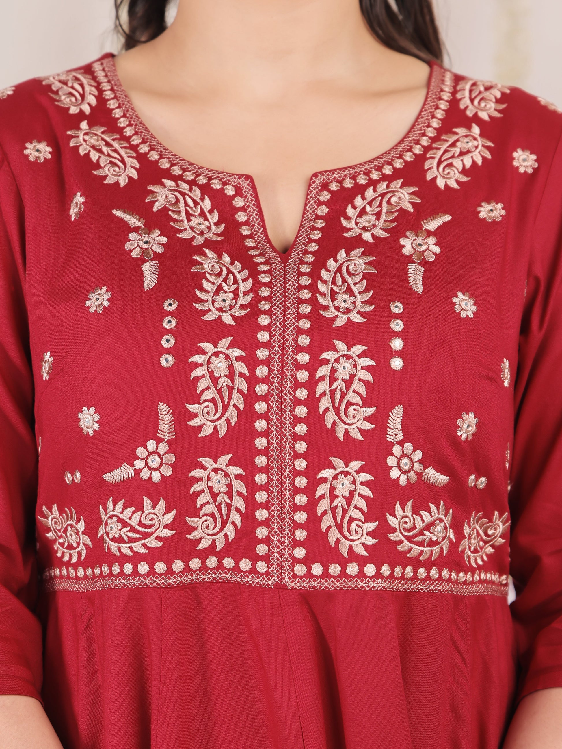 Embroidered Viscose Solid Anarkali Maroon Kurta