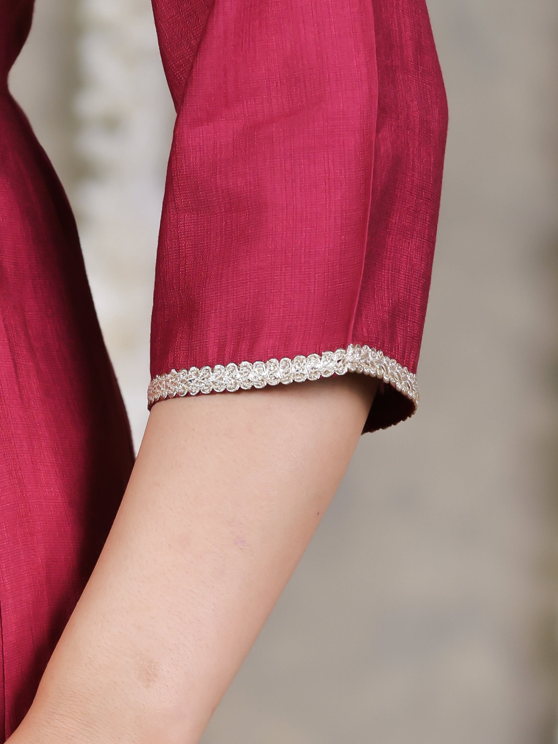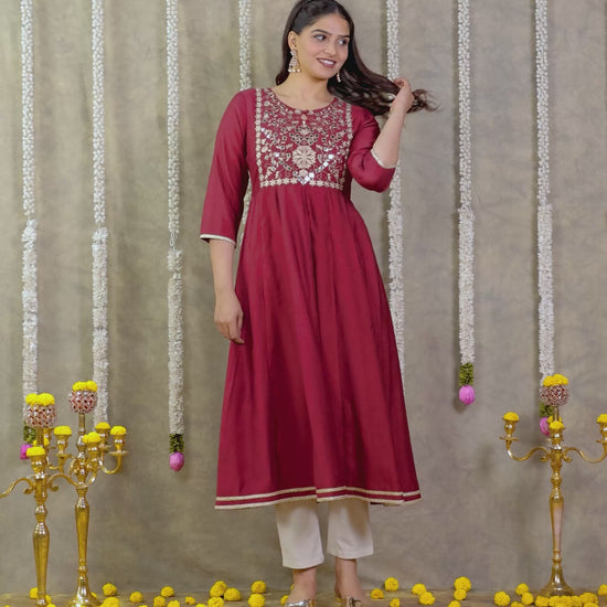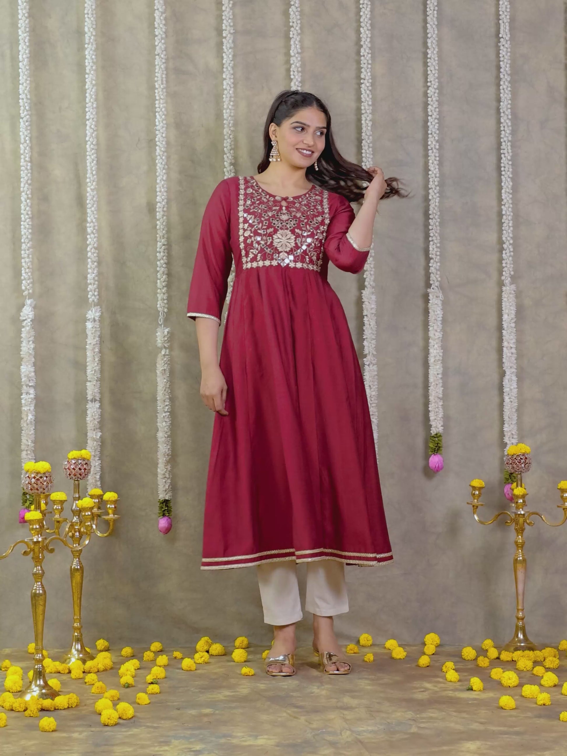 Embroidered Silk Solid Anarkali Maroon Kurta