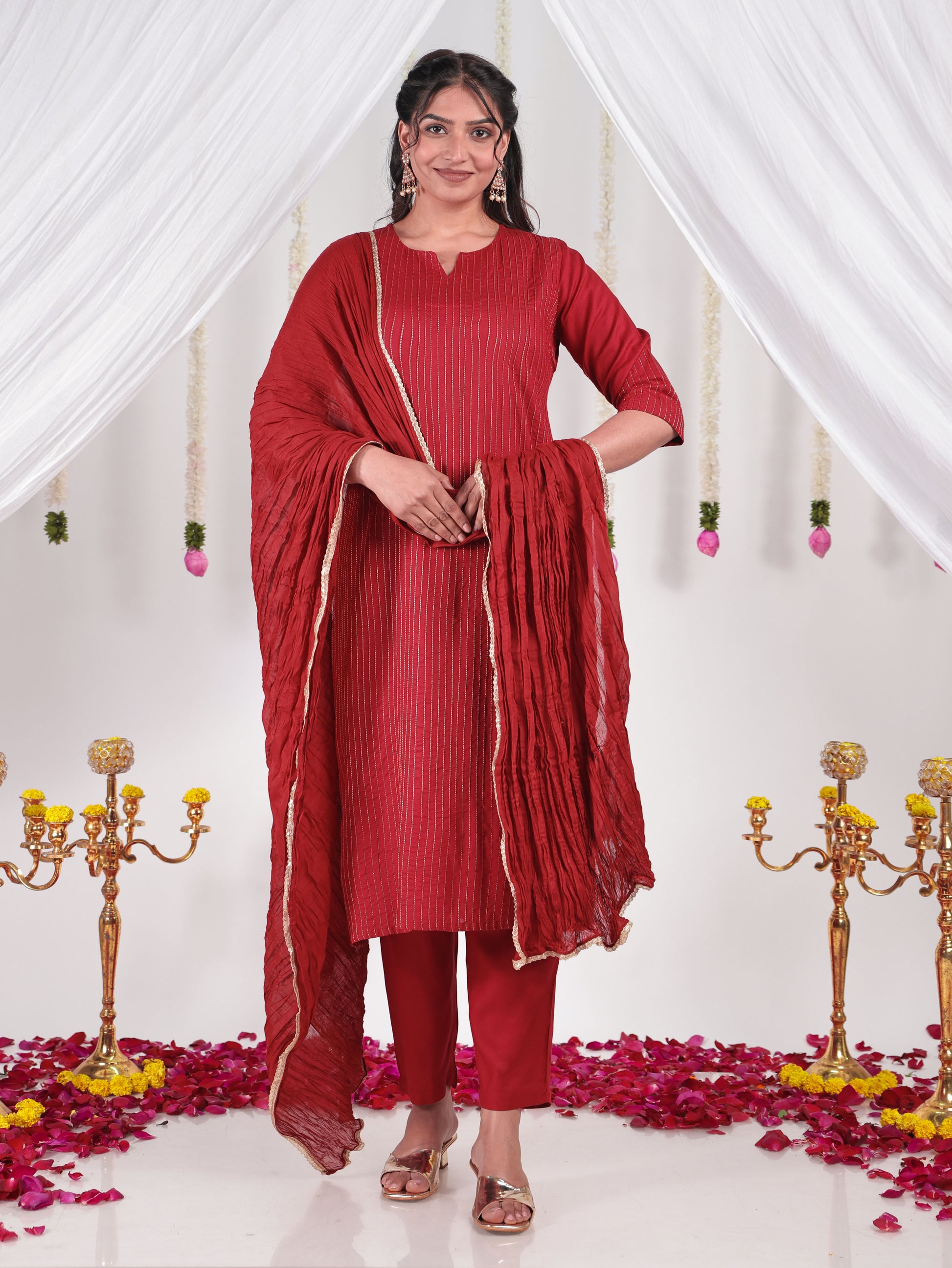 This Maroon Straight kurta in soft Viscose is a timeless pick for festive and casual wear. Designed with a Round neckline and 3/4 Sleeve sleeves, its graceful Calf Length cut flatters all body types. The delicate Solid detailing adds a touch of sophistication. Pair it with statement earrings and juttis for a polished look. Maintain its pristine look by following proper care instructions.