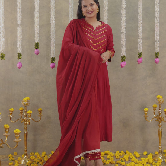 Embroidered Viscose Solid Flared Maroon Kurta