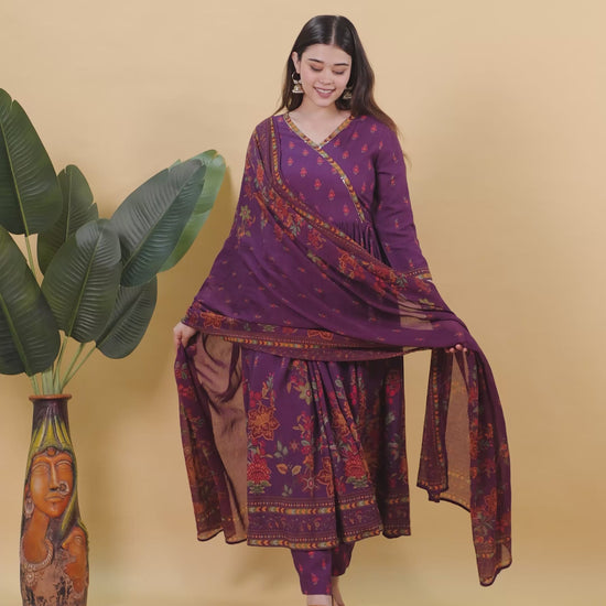 Embroidered Viscose Placement Print Angrakha Mauve Kurta