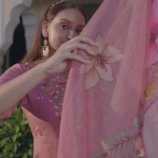 This Mauve Romen silk kurta with a flare is designed for comfort and style. Featuring a neckline, sleeves, and a graceful hemline, it’s perfect for festive wear or semi-formal gatherings. The Solid highlights add depth and texture, making it a standout piece. Accessorise with a contrasting dupatta and keep it pristine by following proper care instructions.