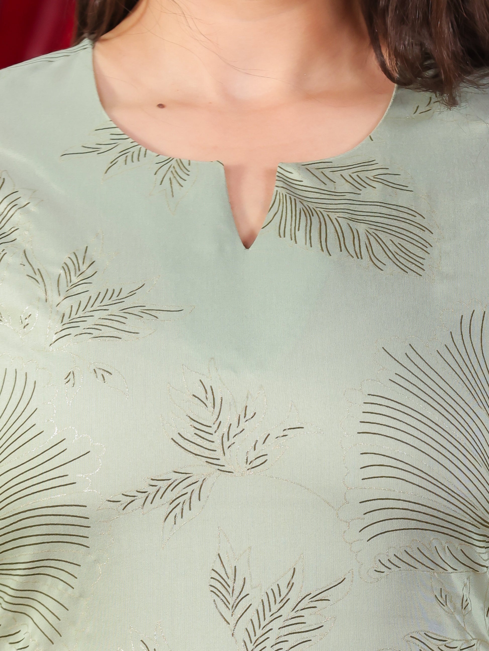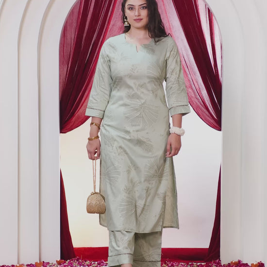 Poly Chanderi Gold foil A-line Mint Green Kurta