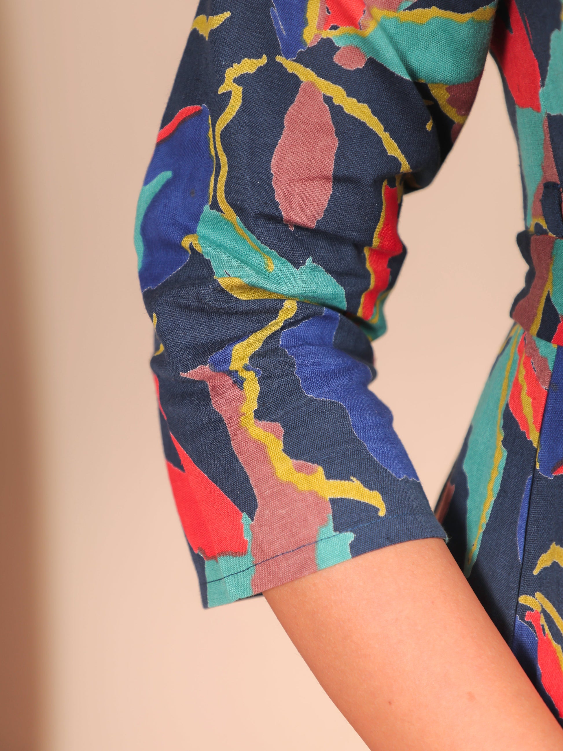 Linen Cotton Abstract Angrakha Multicolor Kurta