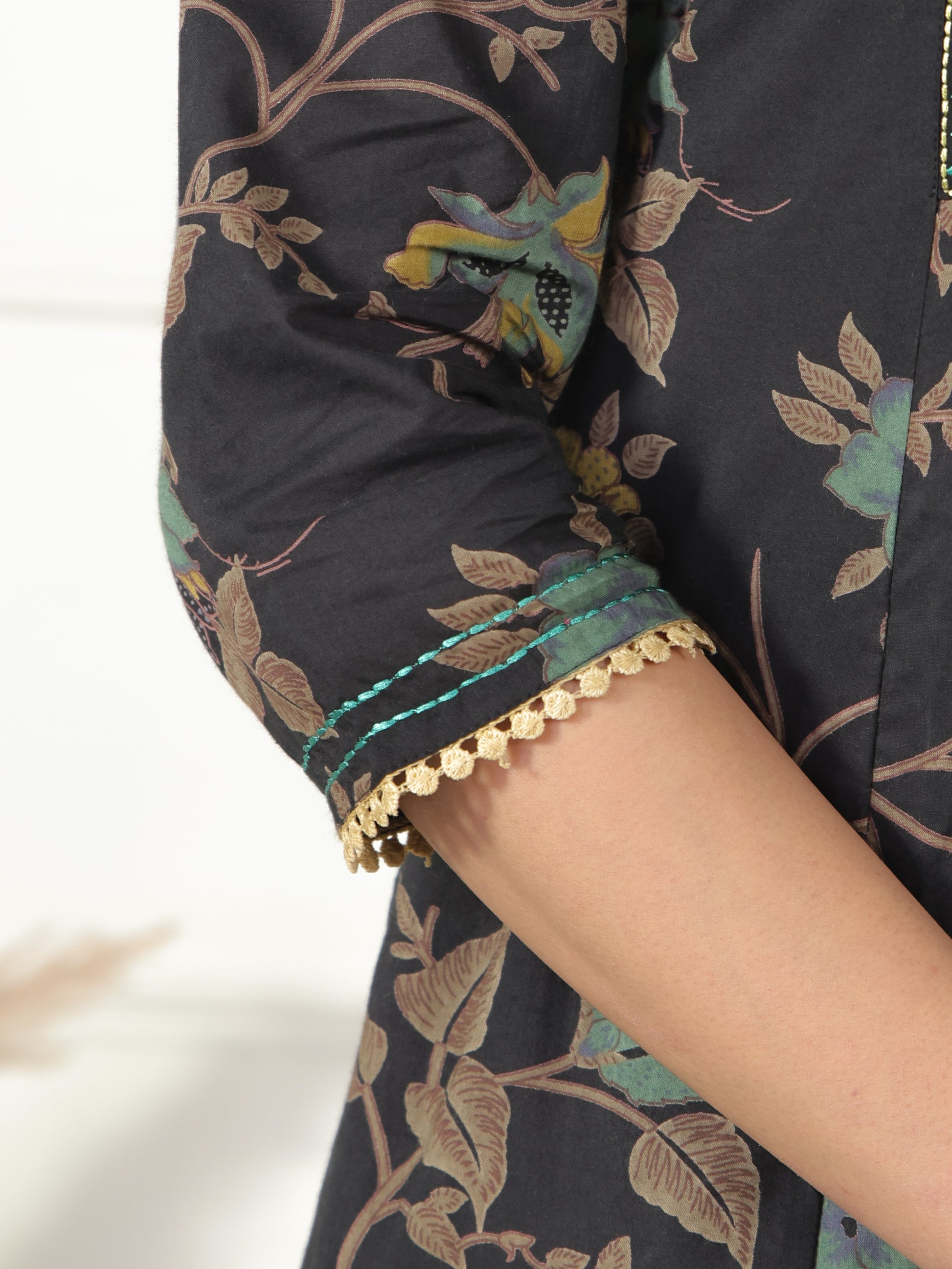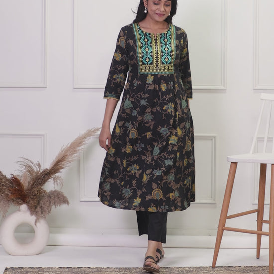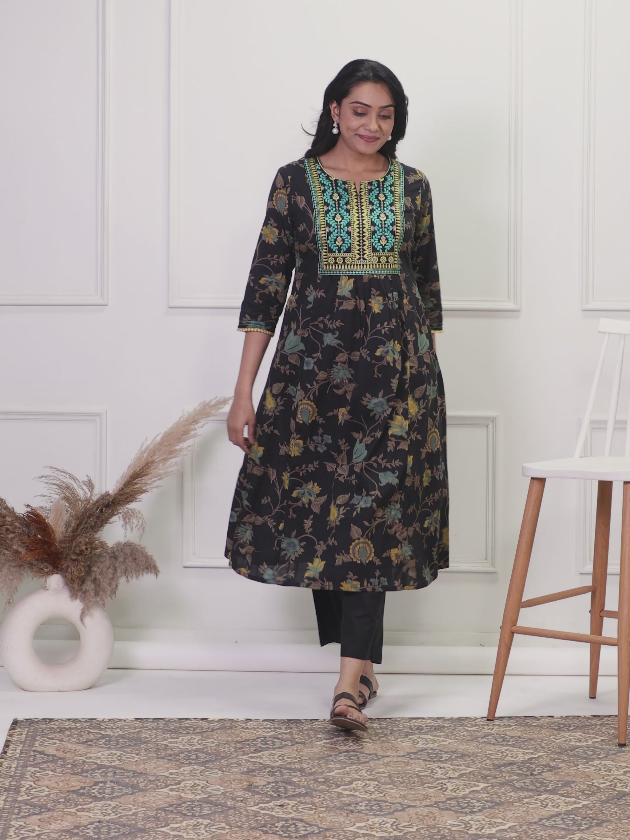 Embroidered Soft Cotton Floral Panelled Multicolor Kurta