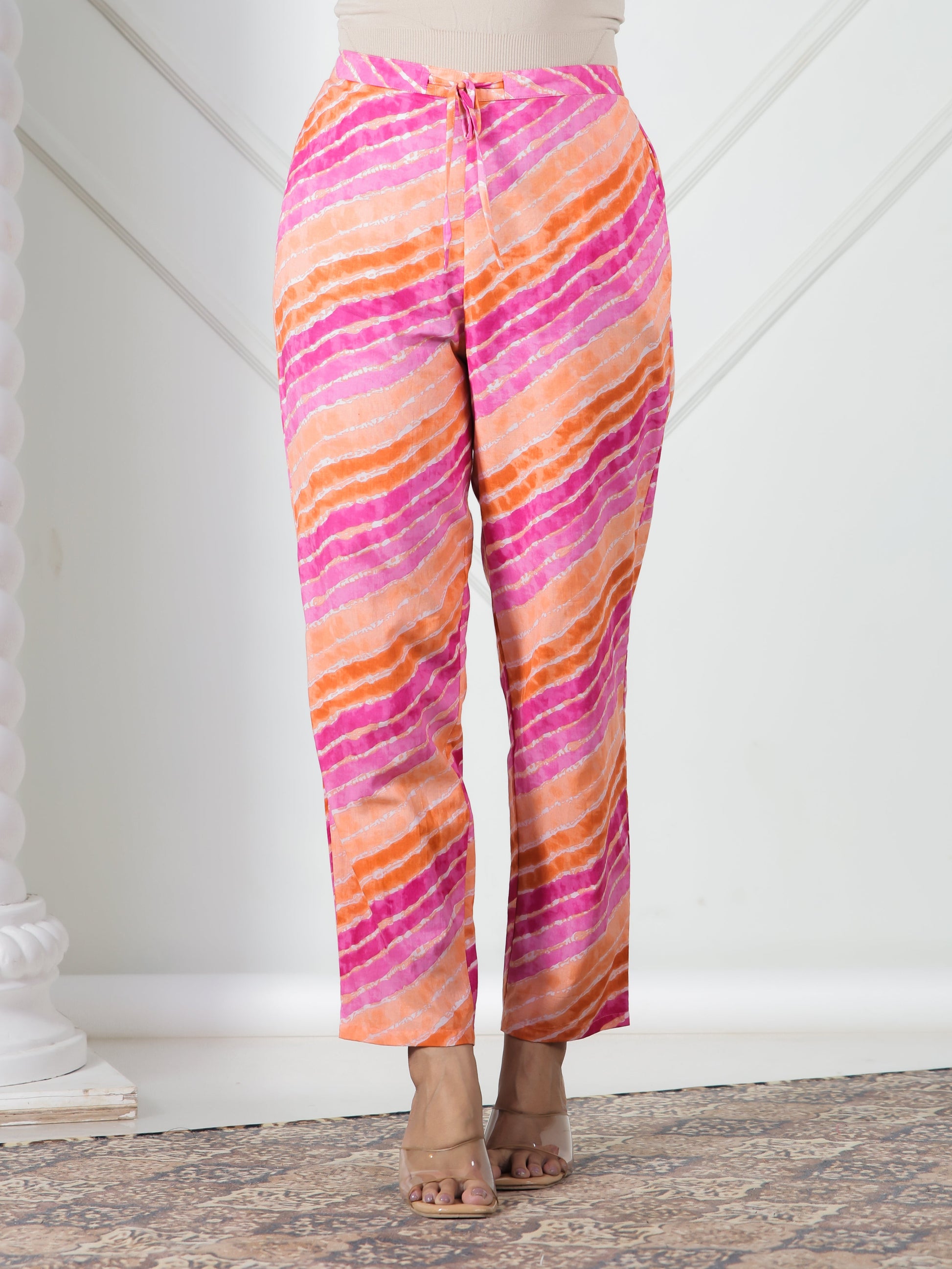 Add a touch of sophistication to your collection with this multicolor soft cotton striped kurta & trousers. The beautiful striped pattern complements the elegant u neckline. Complemented by sleek trousers that provide a modern alternative to traditional bottoms. The exquisite tassels, thread work adds a touch of sophistication to this ensemble. The elegant flared cut adds volume and drama to your traditional look. This calf length kurta features churidar sleeve that provide a balanced look. Suitable for both casual gatherings and semi-formal events, with hand wash instructions.