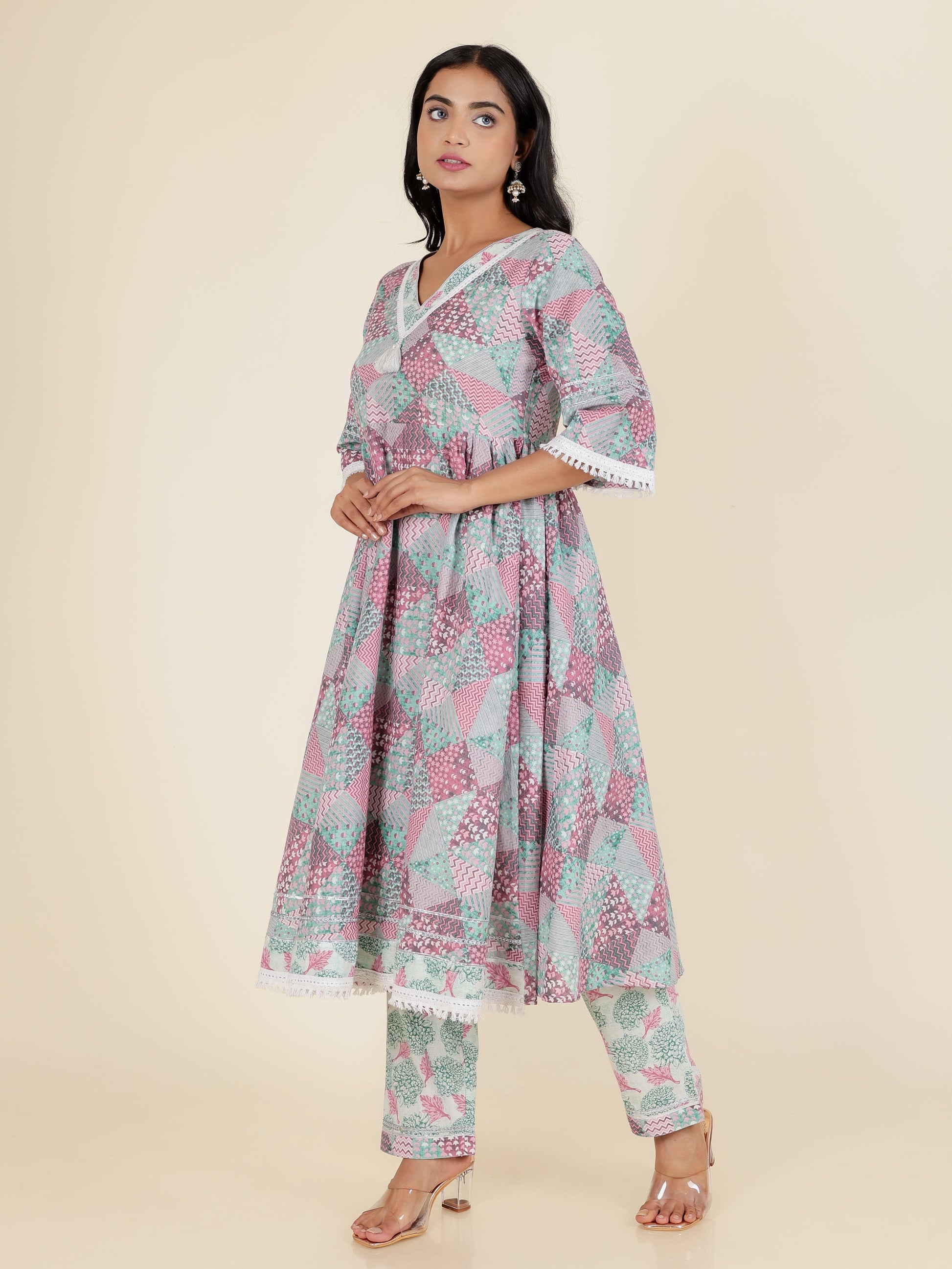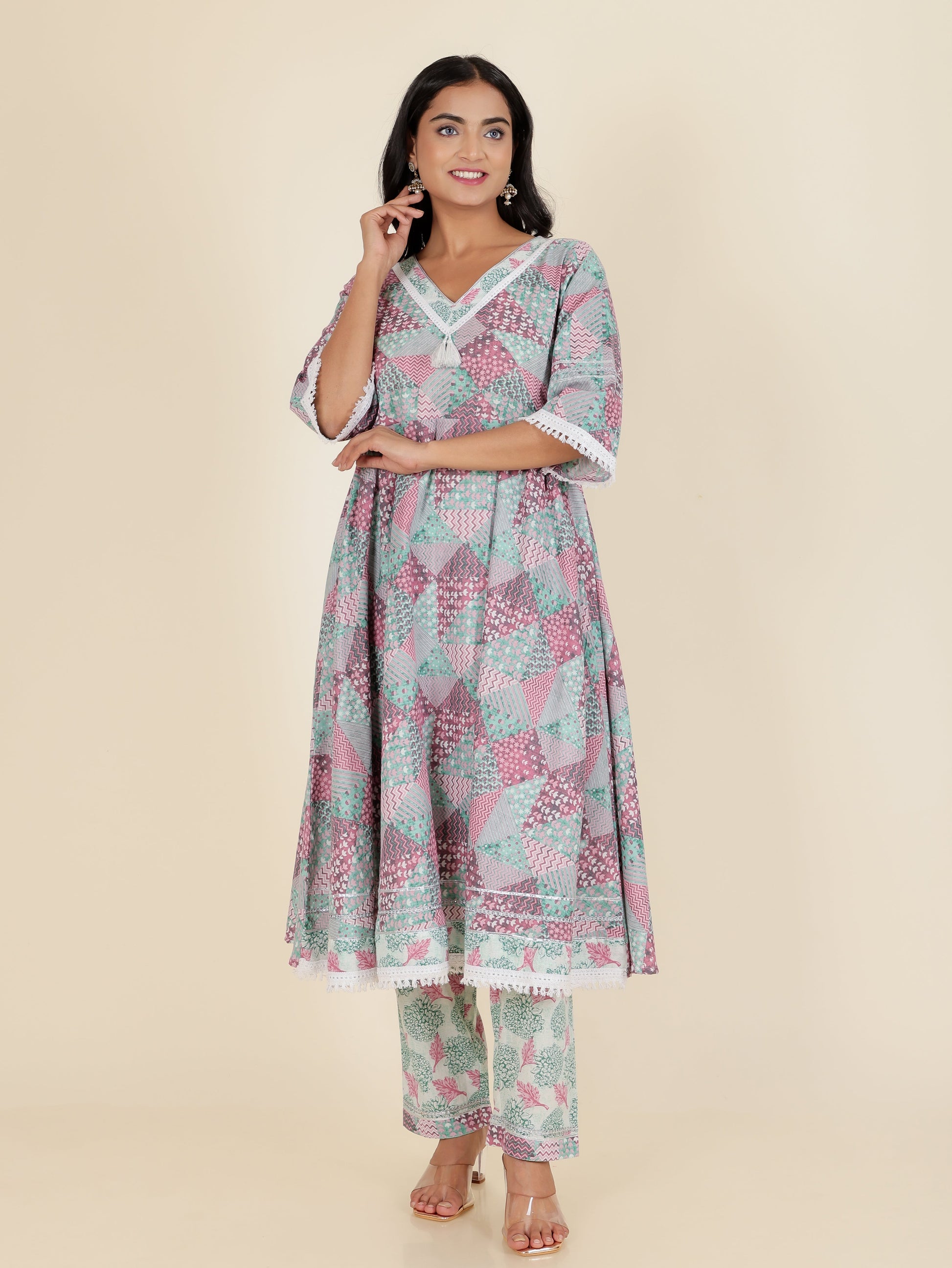 Soft Cotton Patchwork Flared Multicolor Kurta