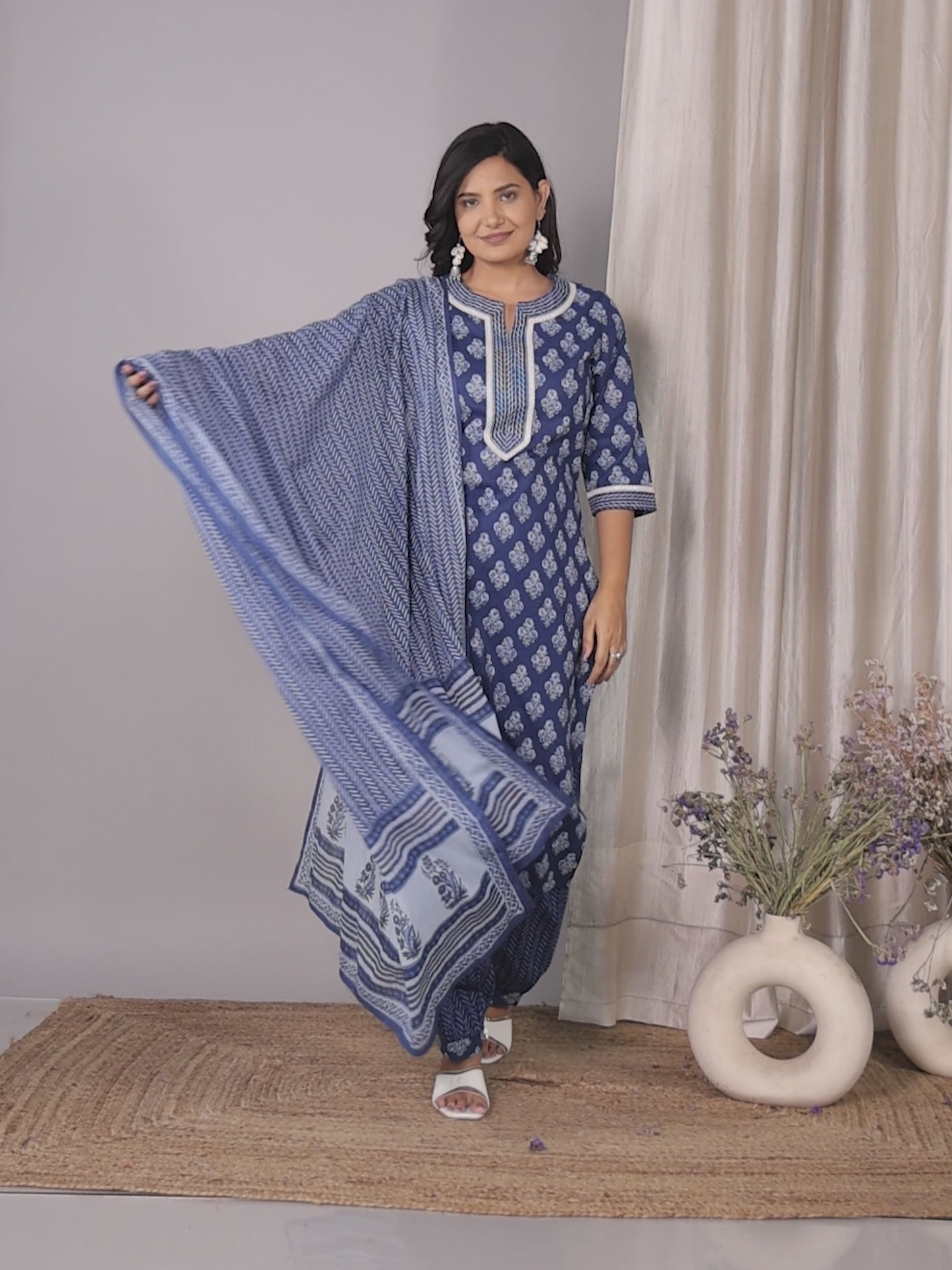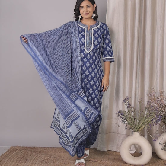 This Blue Straight kurta in soft Soft Cotton is a timeless pick for festive and casual wear. Designed with a Round neckline and 3/4 Sleeve sleeves, its graceful Calf Length cut flatters all body types. The delicate Floral detailing adds a touch of sophistication. Pair it with statement earrings and juttis for a polished look. Maintain its pristine look by following proper care instructions.