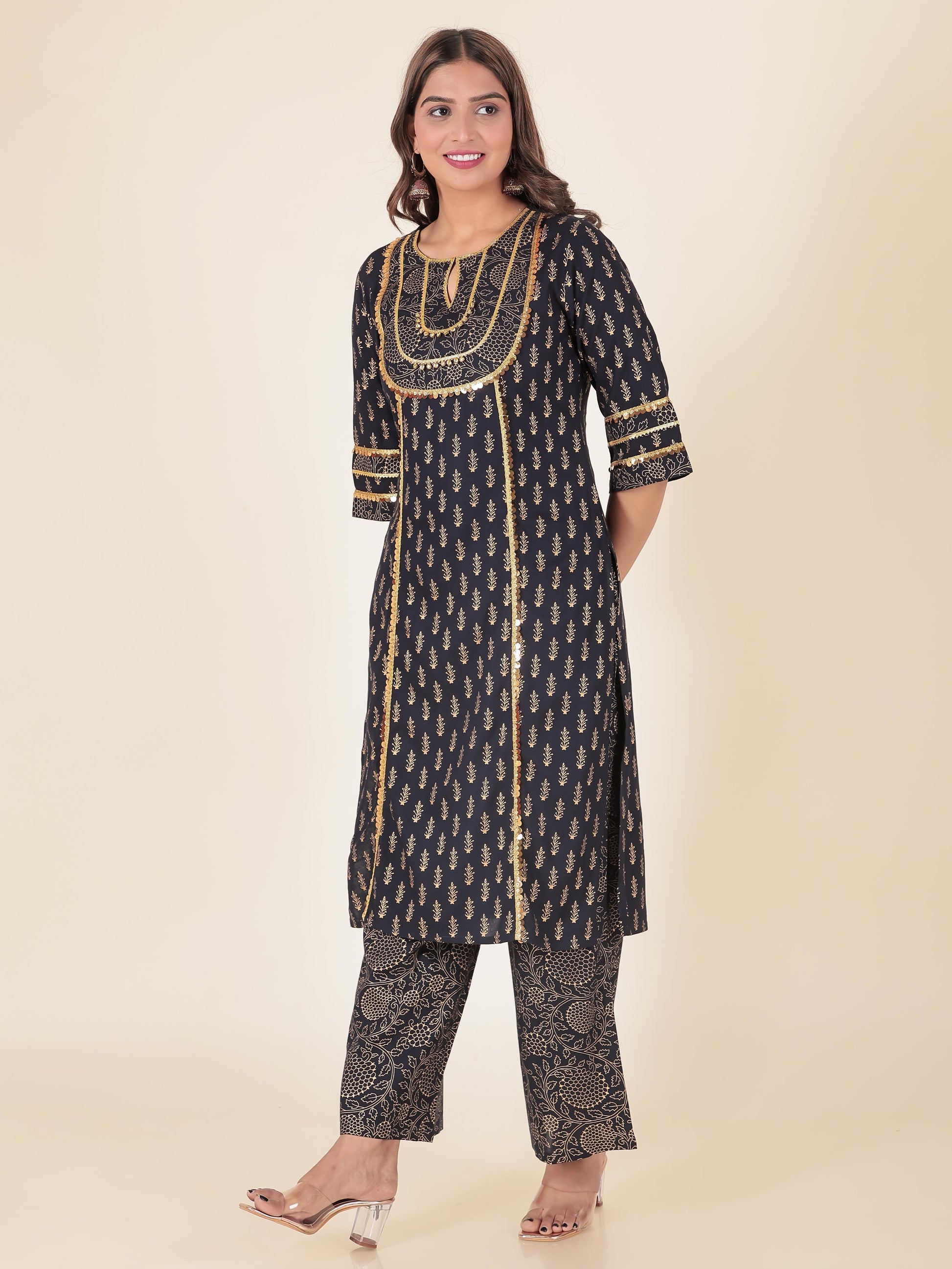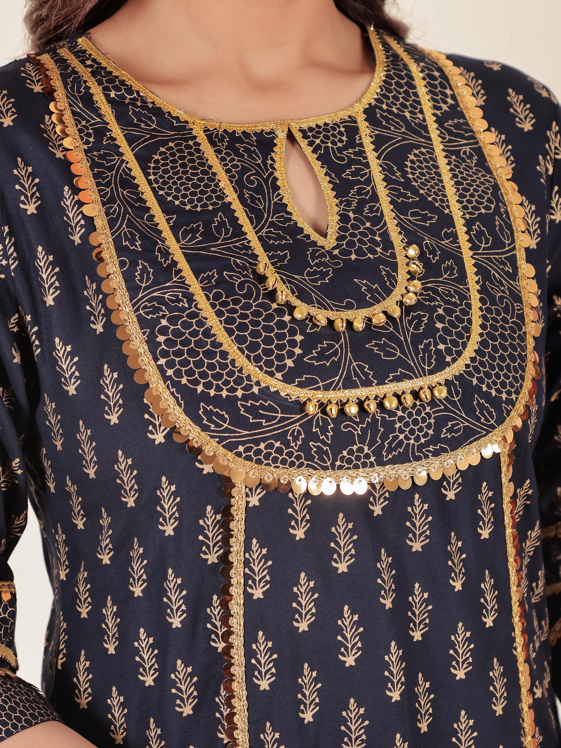 Viscose Gold foil Straight Blue Kurta