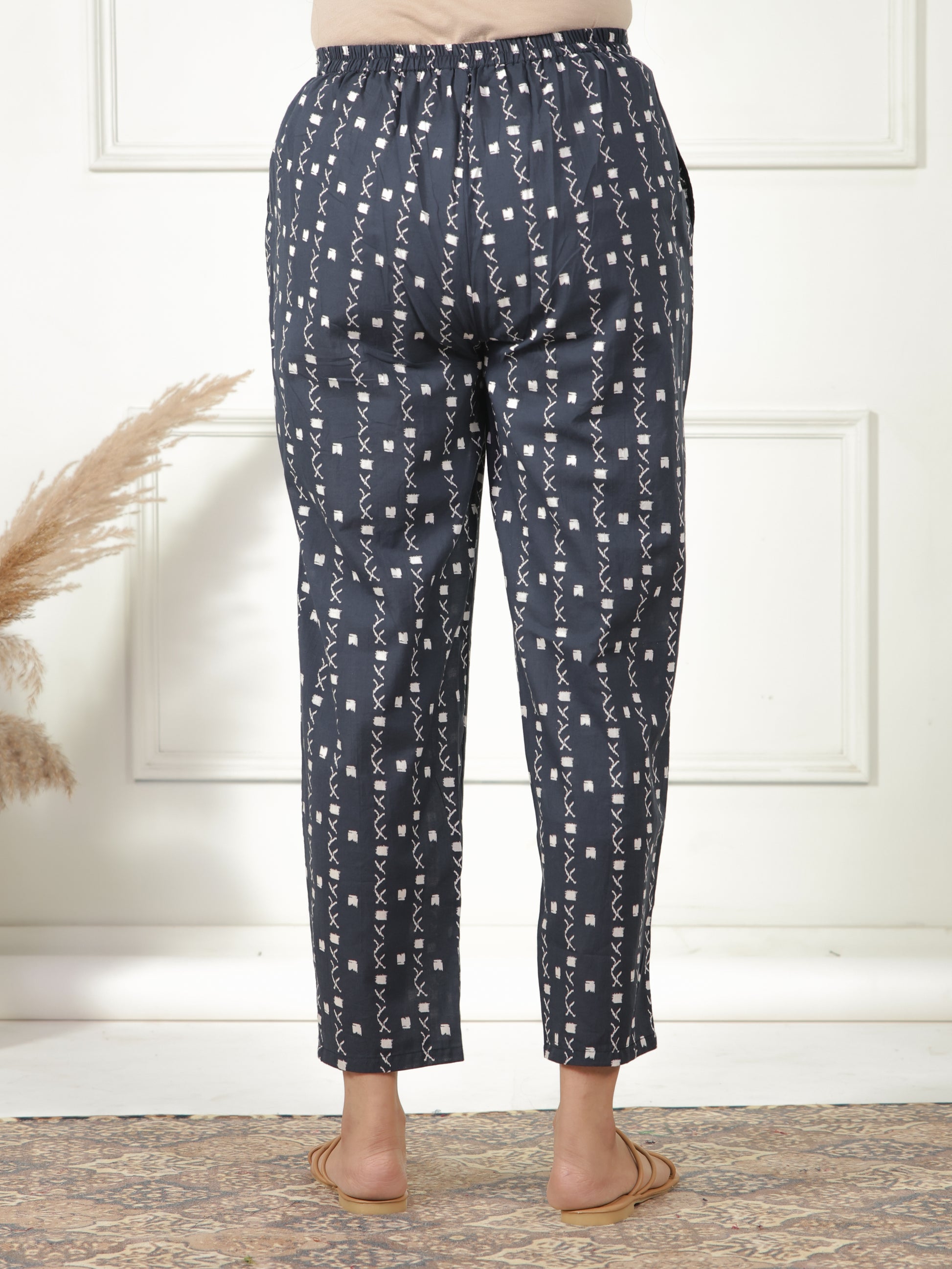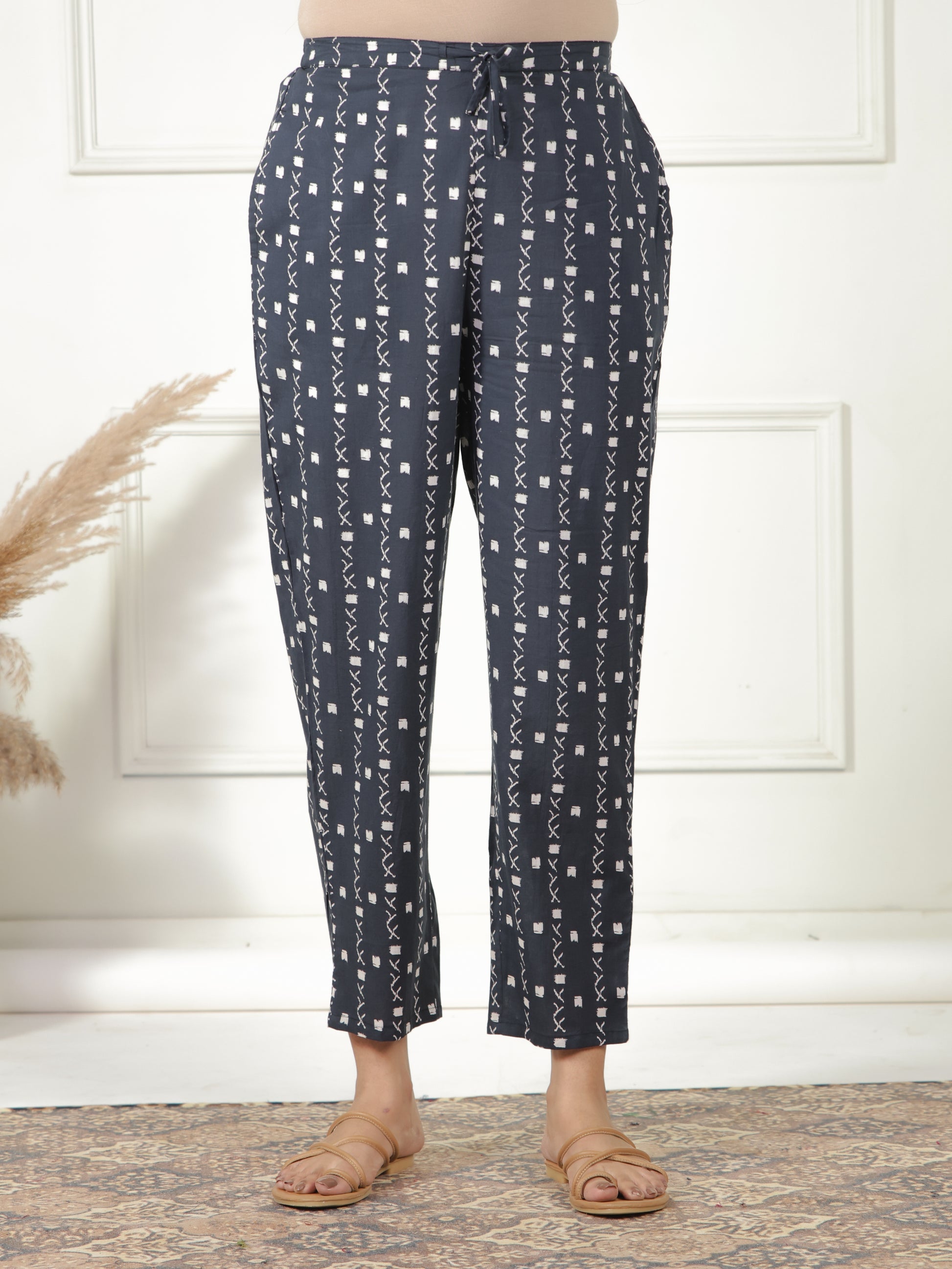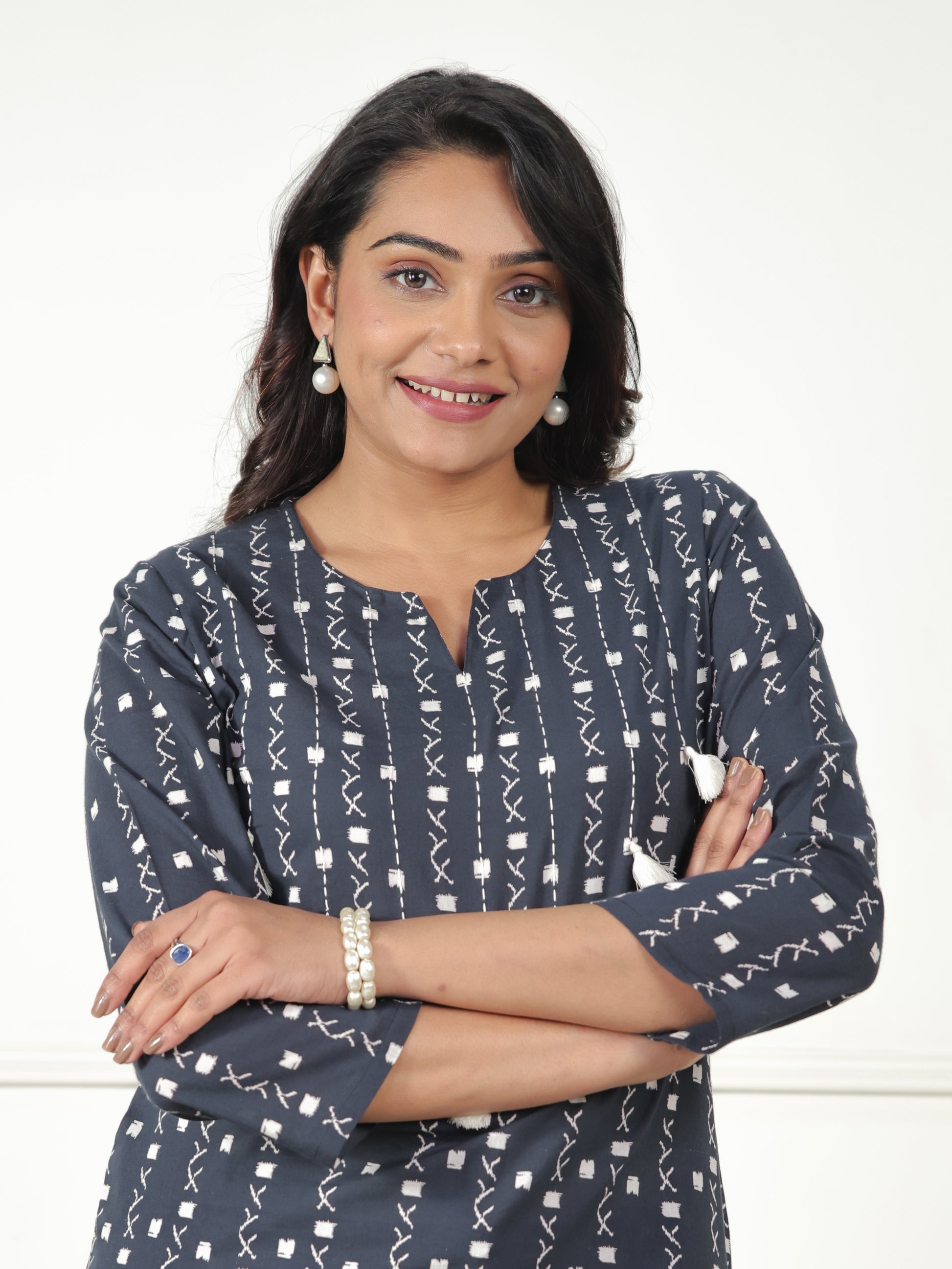 Soft Cotton Geometric Straight Navy Blue Kurta