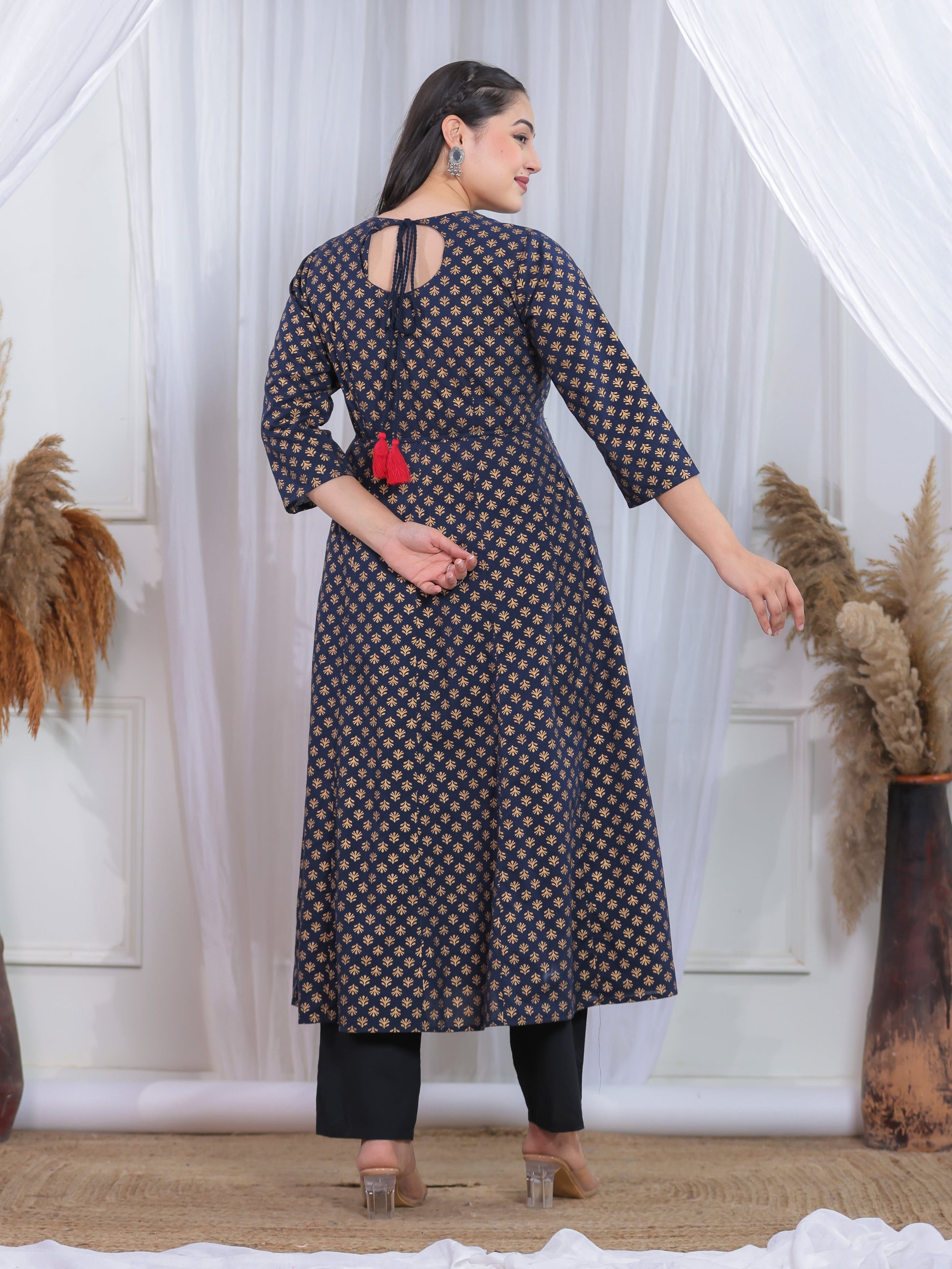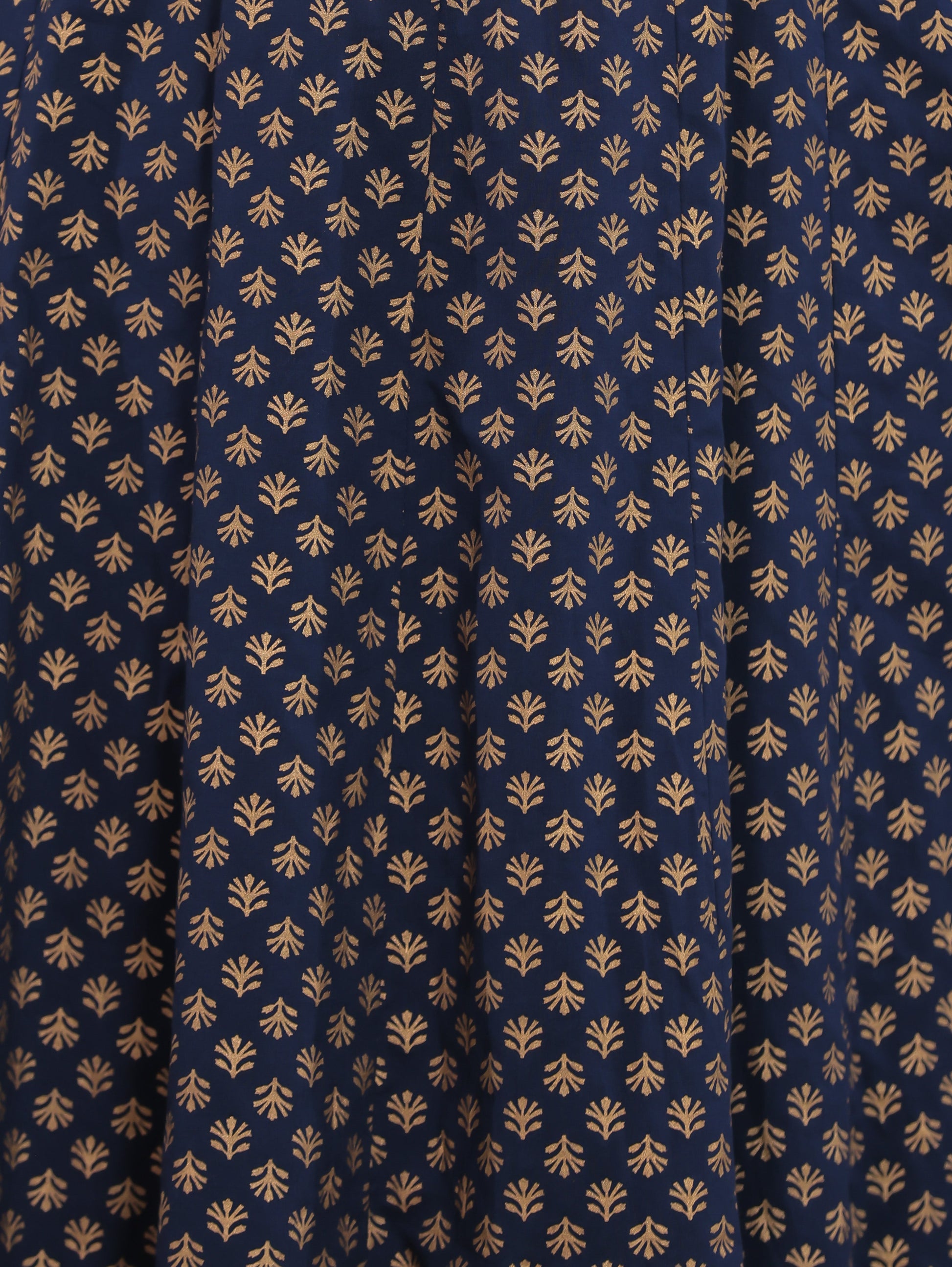 Embroidered Soft Cotton Gold foil Anarkali Navy Blue Kurta