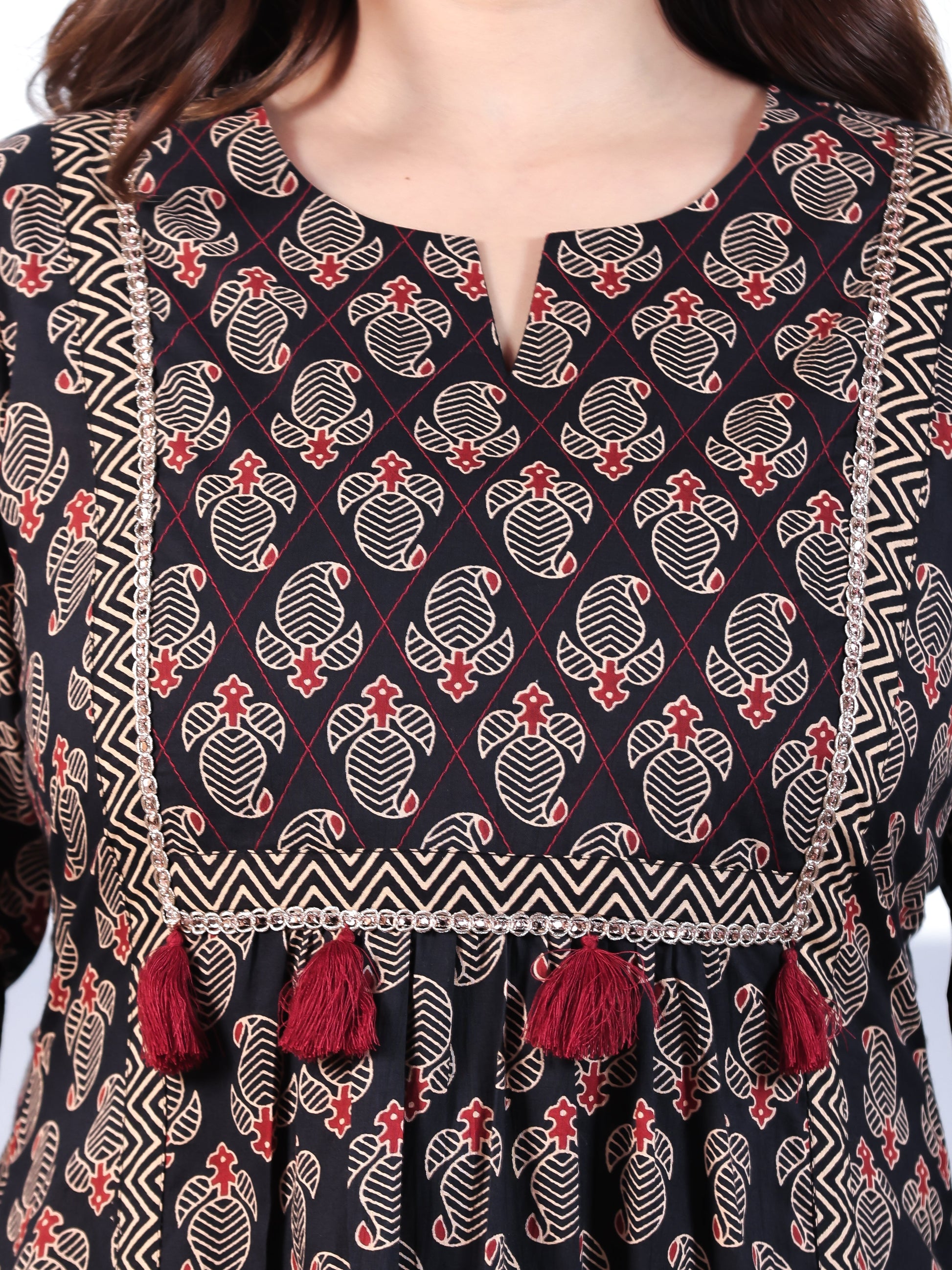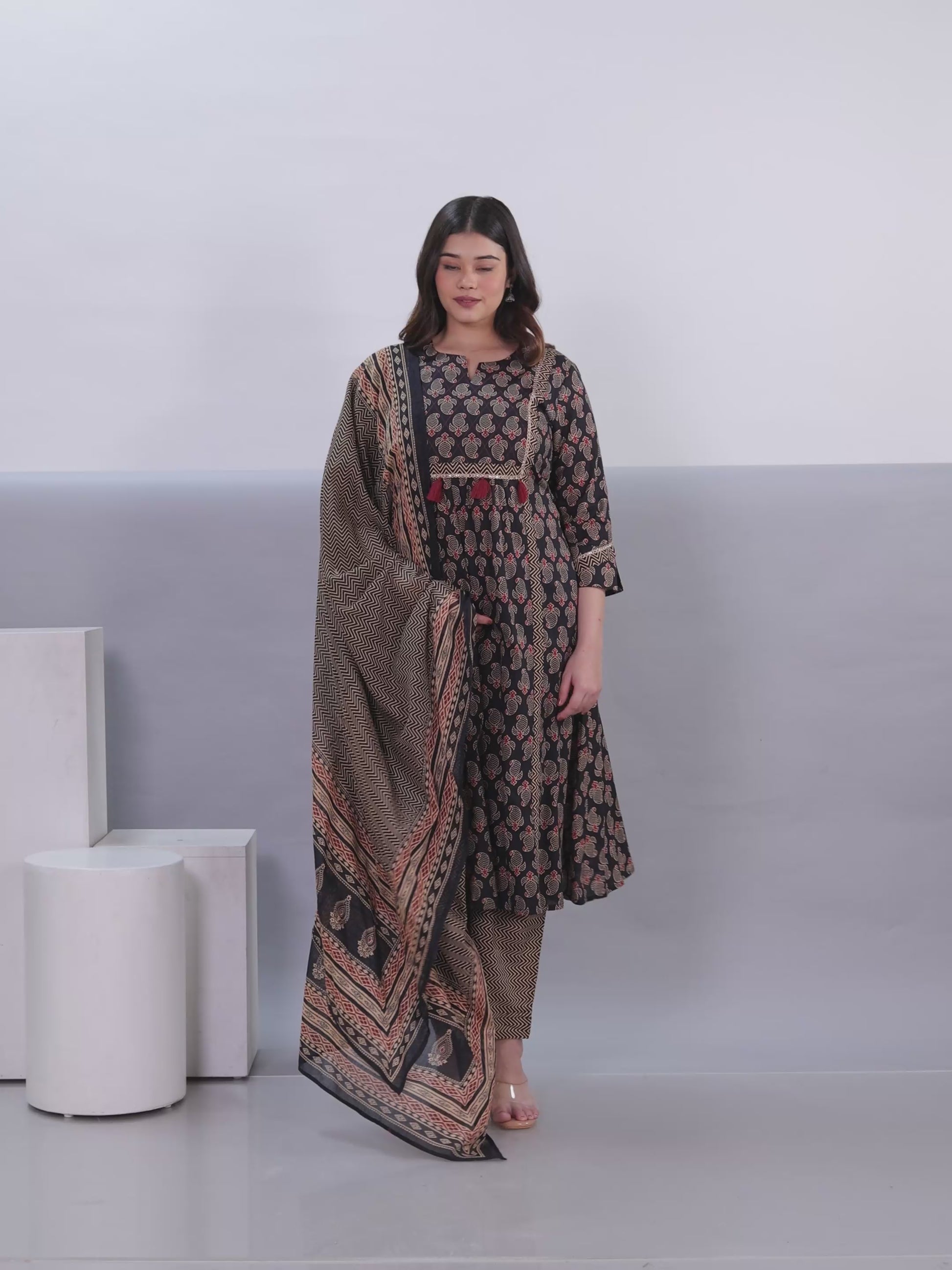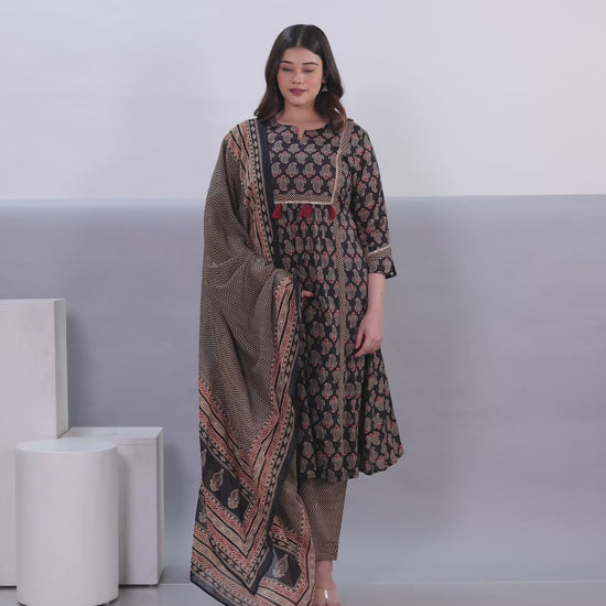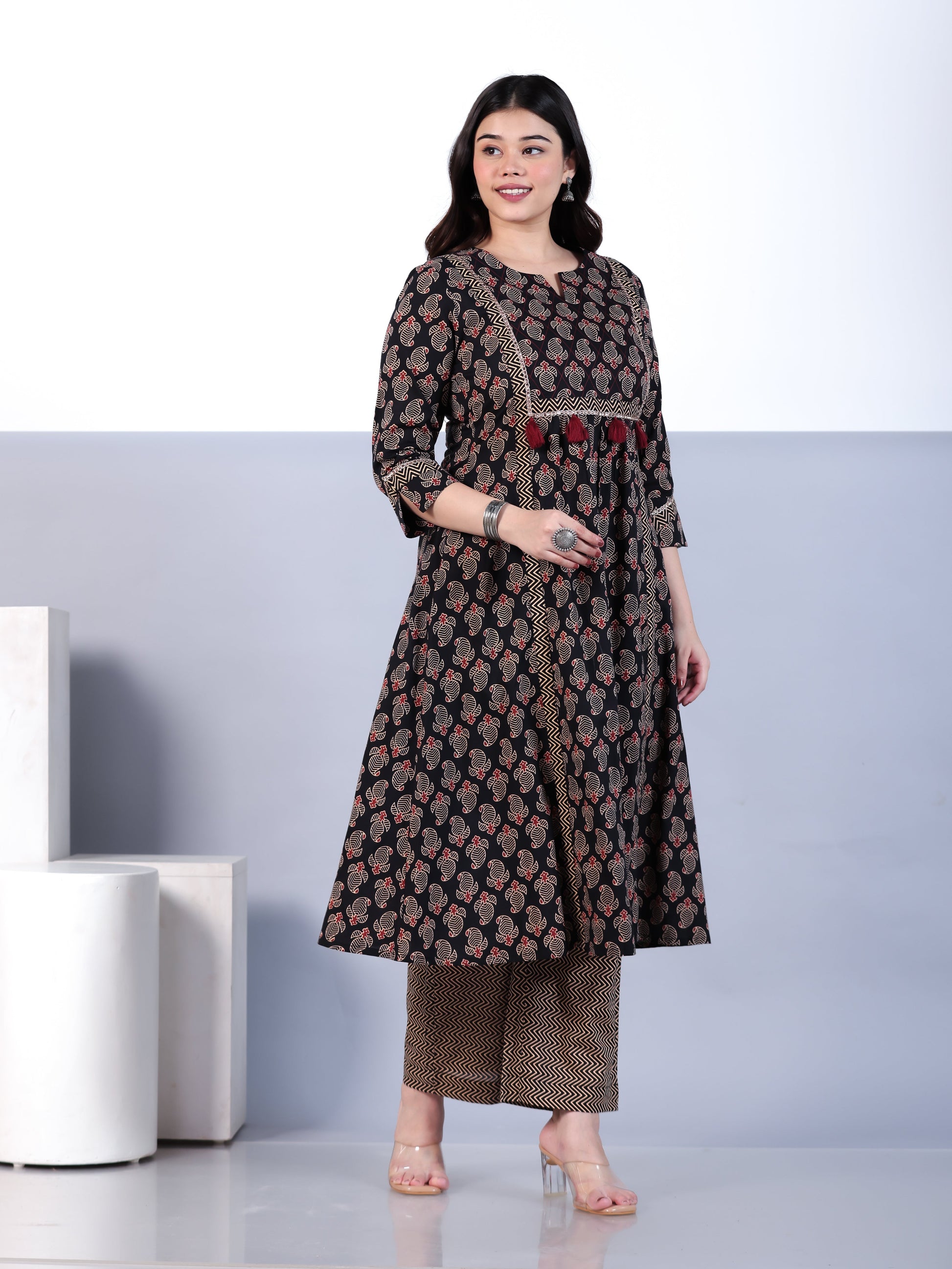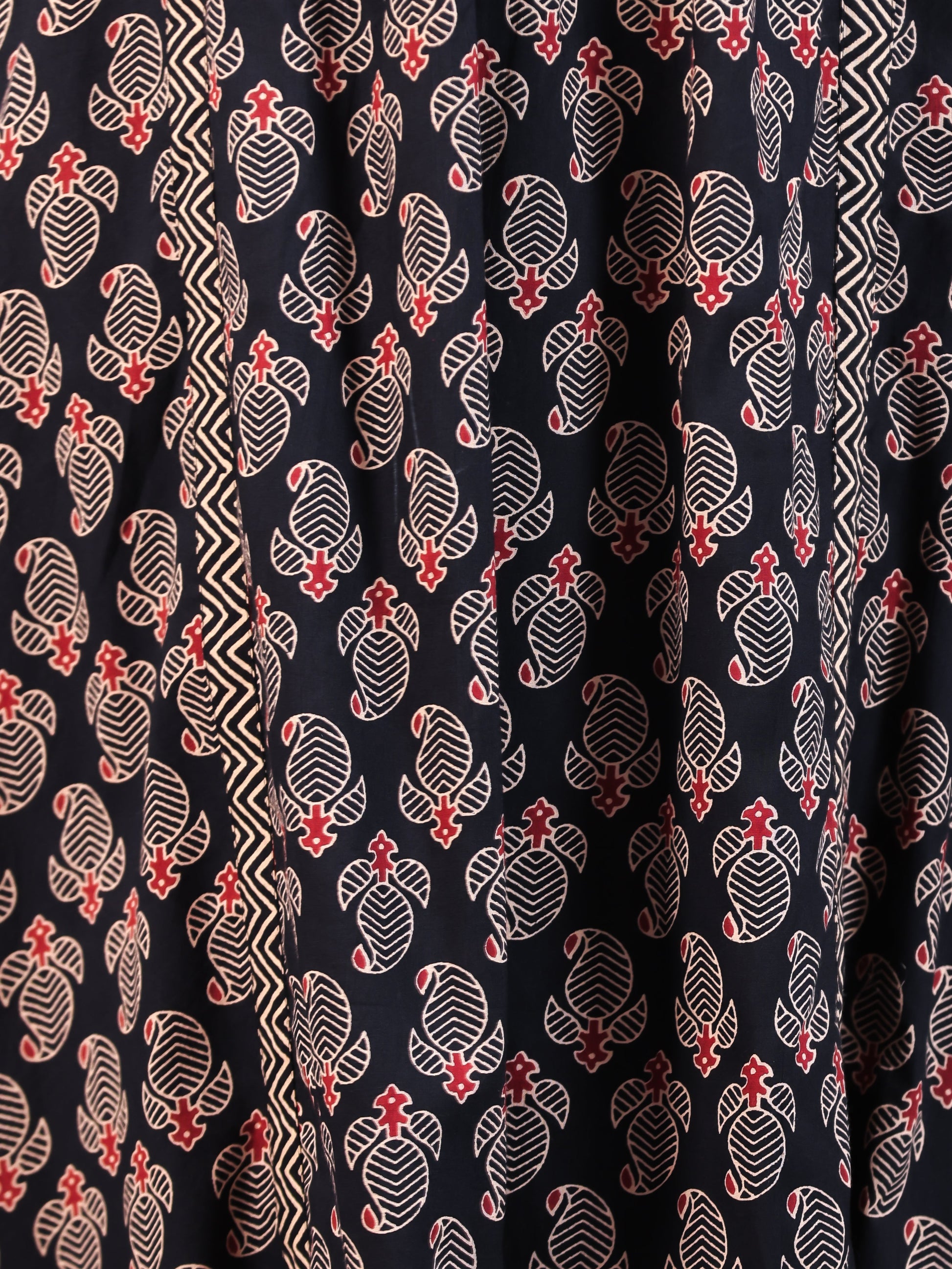 Soft Cotton Paisley Flared Navy Blue Kurta