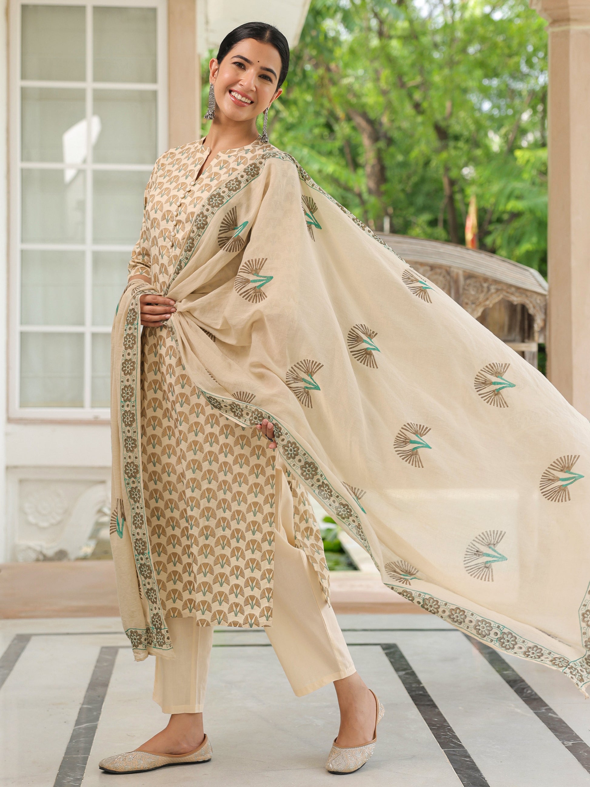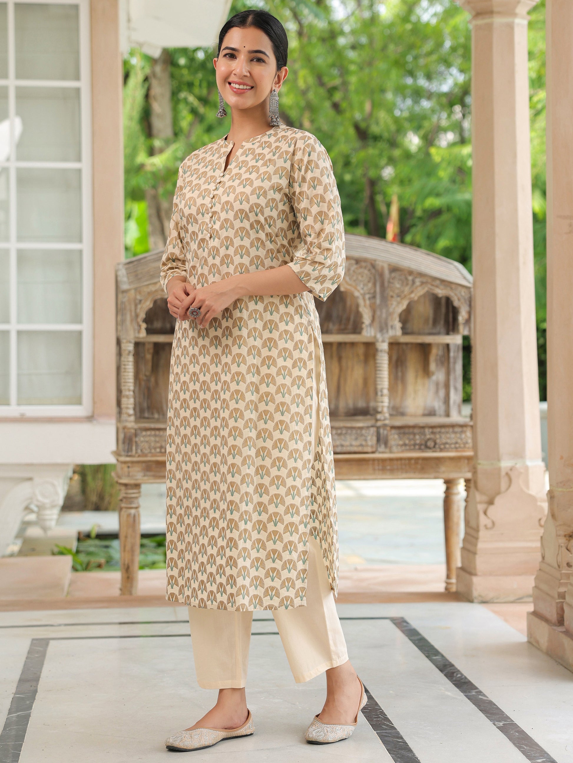 This Cream Straight kurta in soft Soft Cotton is a timeless pick for festive and casual wear. Designed with a Mandarin/Chinese neckline and 3/4 Sleeve sleeves, its graceful Calf Length cut flatters all body types. The delicate Floral detailing adds a touch of sophistication. Pair it with statement earrings and juttis for a polished look. Maintain its pristine look by following proper care instructions.