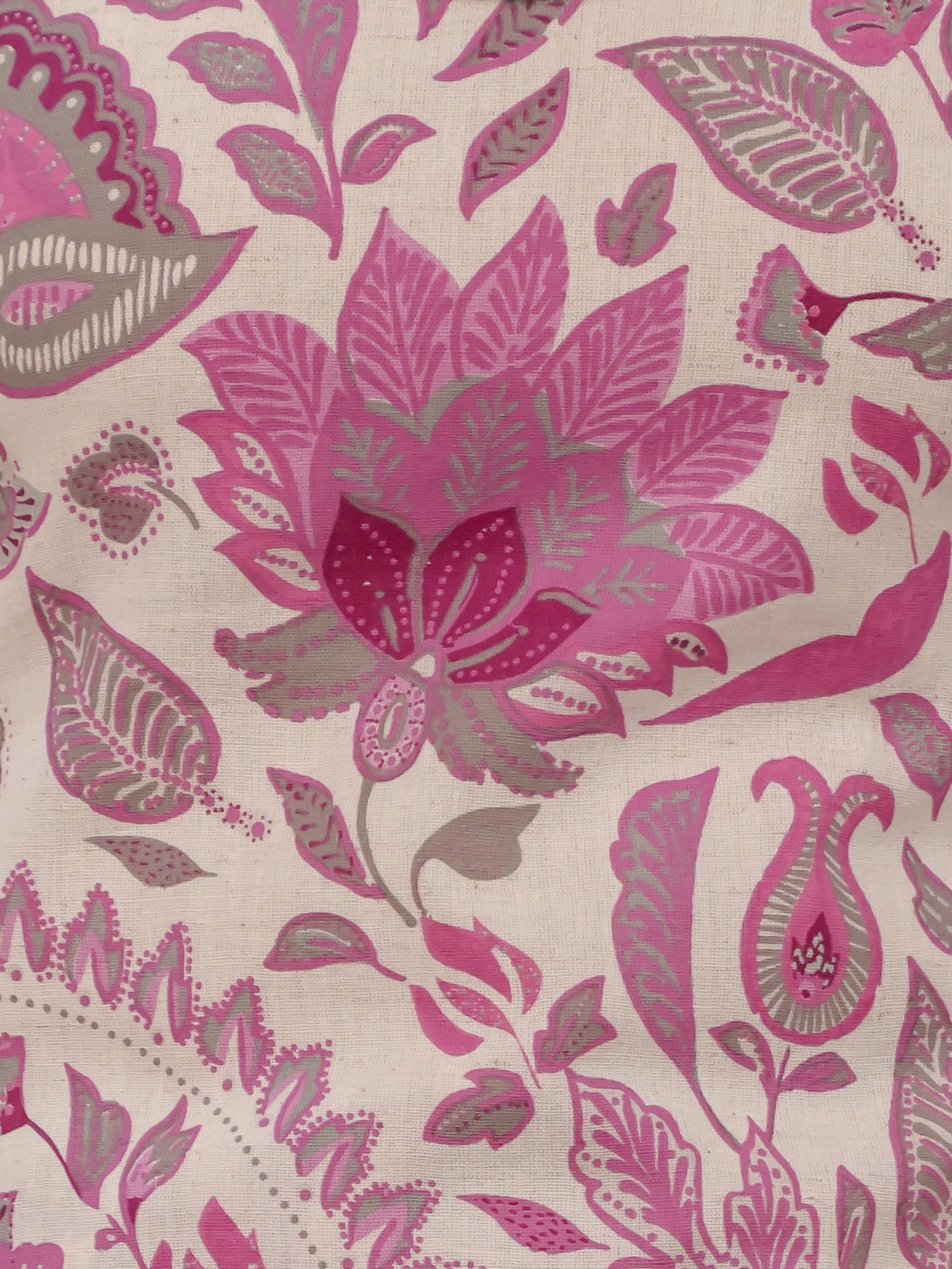 Linen Cotton Floral Straight Off White Kurta
