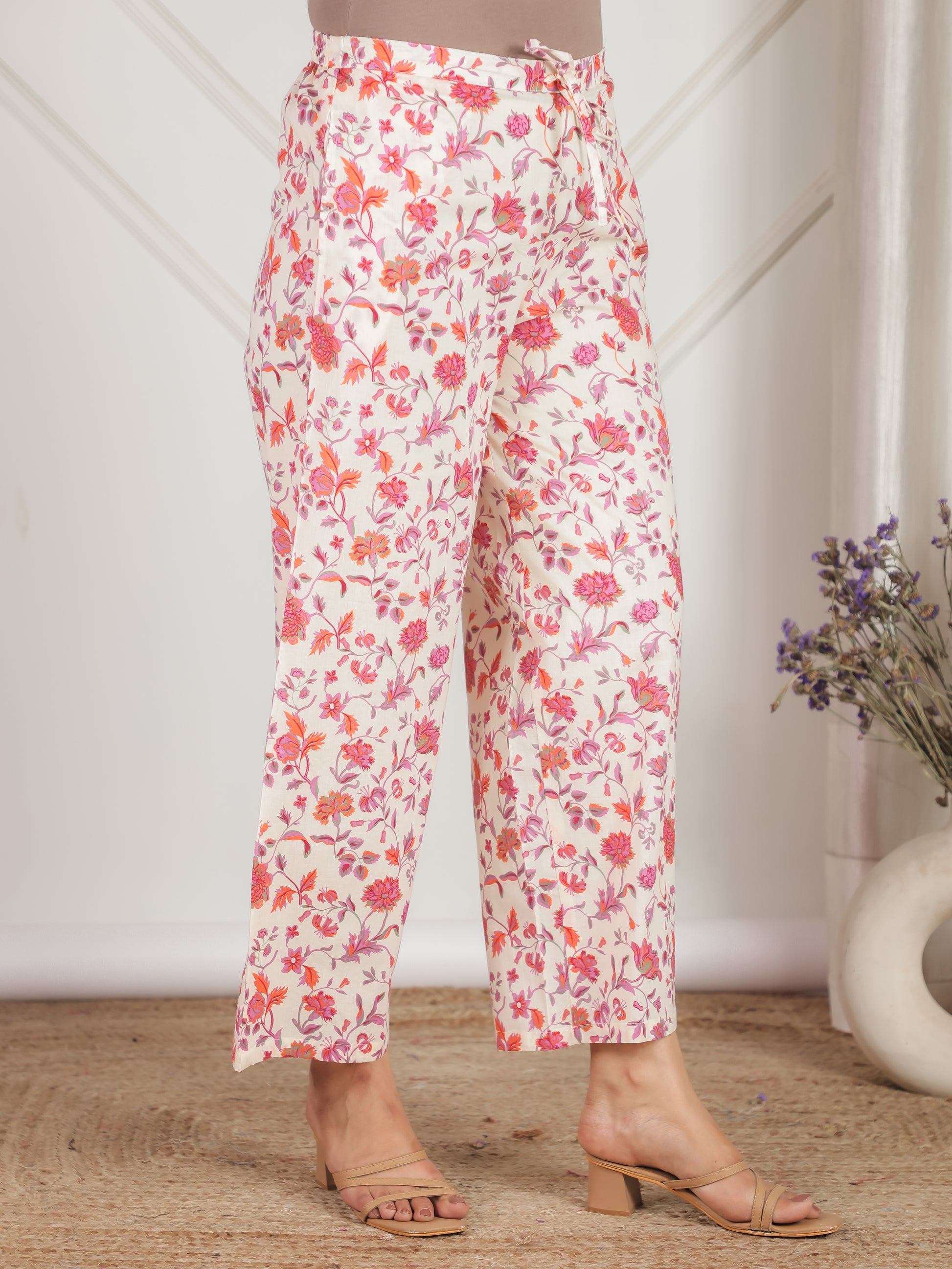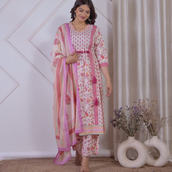 Embroidered Soft Cotton Floral Kalidar Off White Kurta