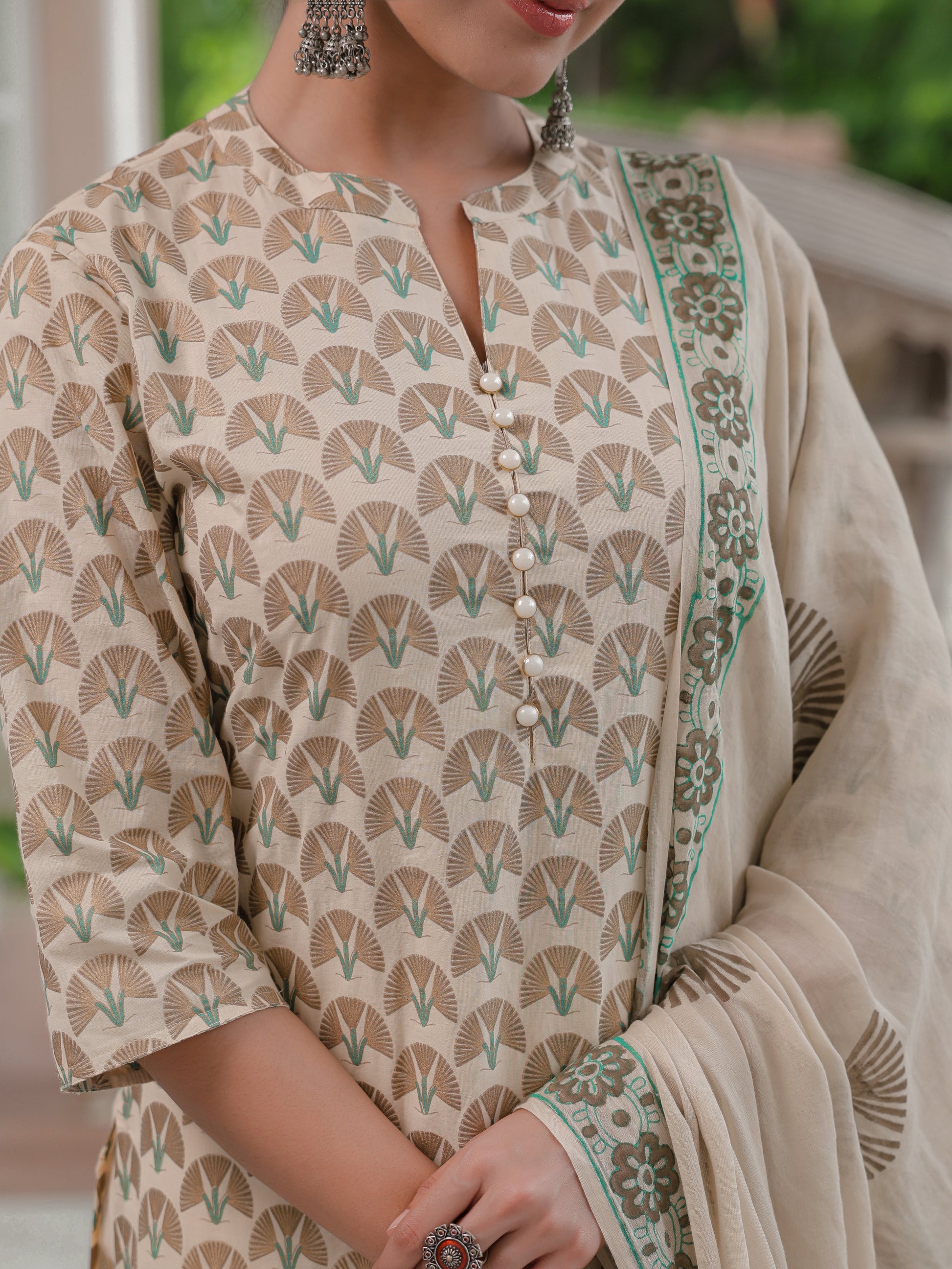 This Off-White Soft Cotton kurta with a Straight flare is designed for comfort and style. Featuring a Mandarin/Chinese neckline, 3/4 Sleeve sleeves, and a graceful Calf Length hemline, it’s perfect for festive wear or semi-formal gatherings. The Floral highlights add depth and texture, making it a standout piece. Accessorise with a contrasting dupatta and keep it pristine by following proper care instructions.