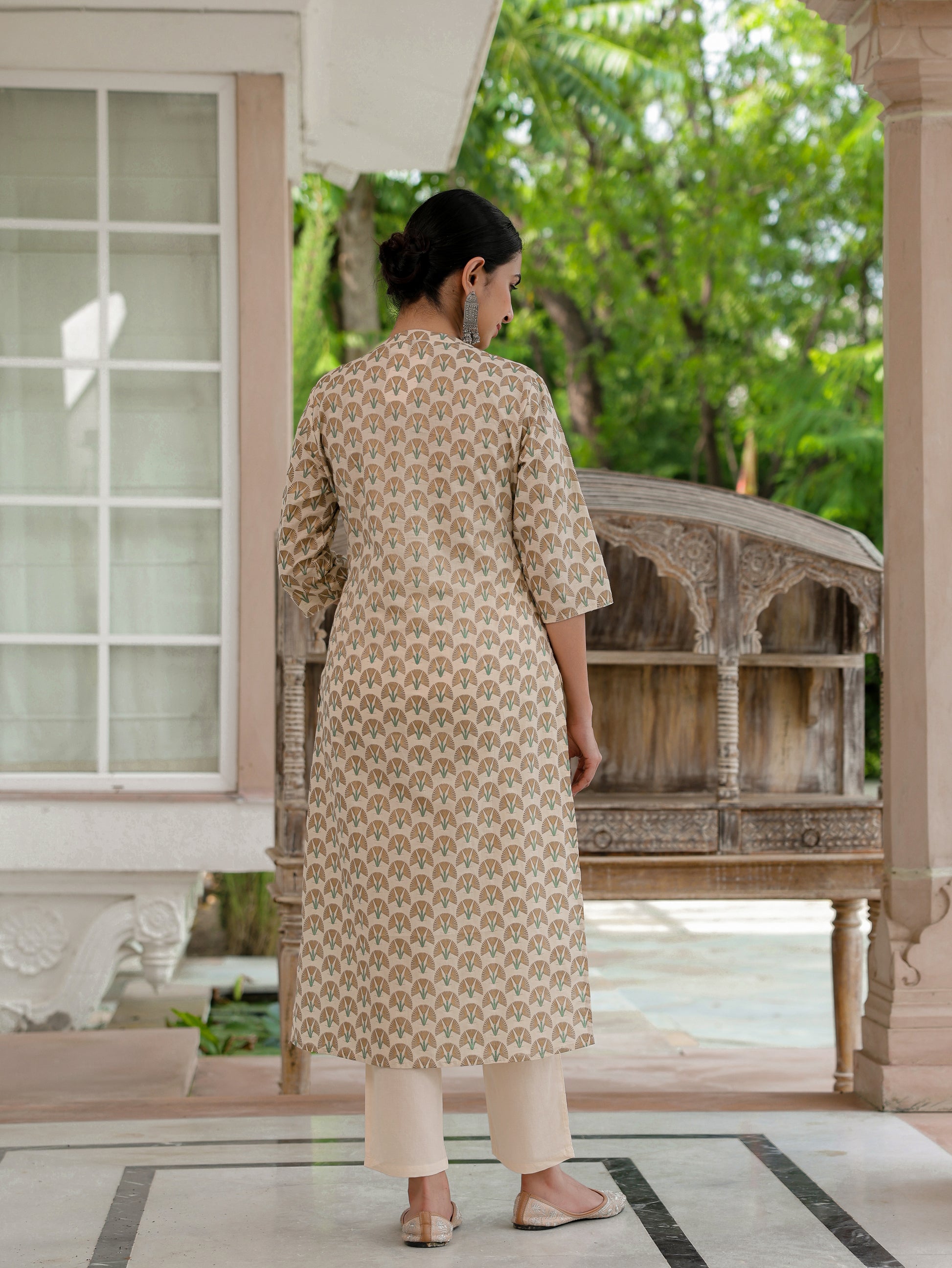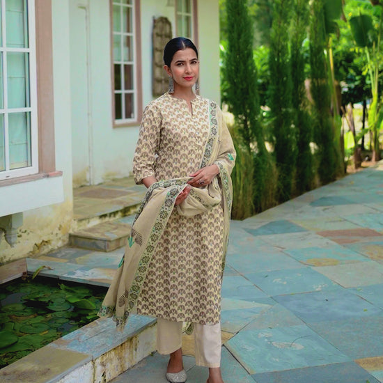 Soft Cotton Floral Straight Beige Kurta