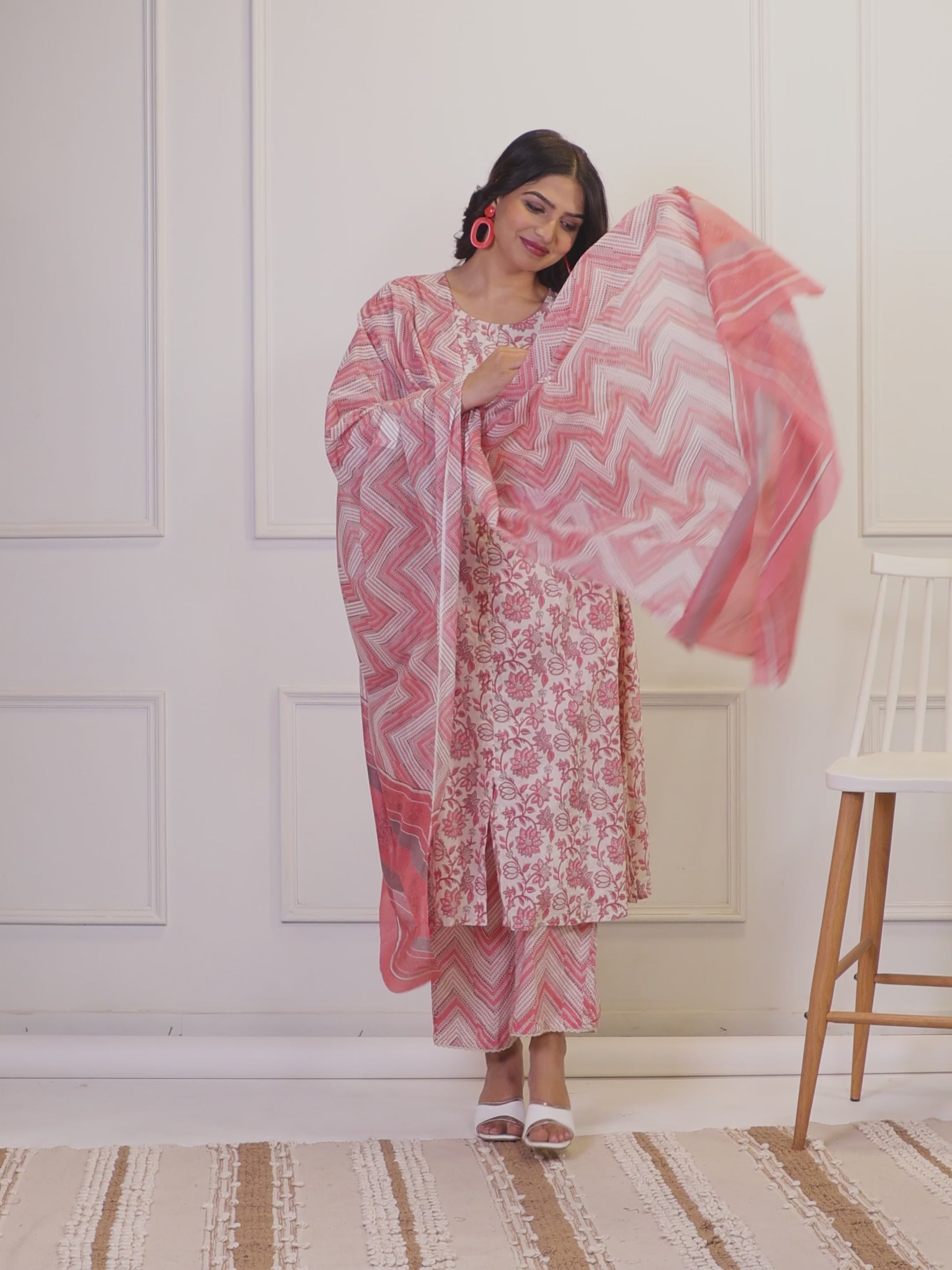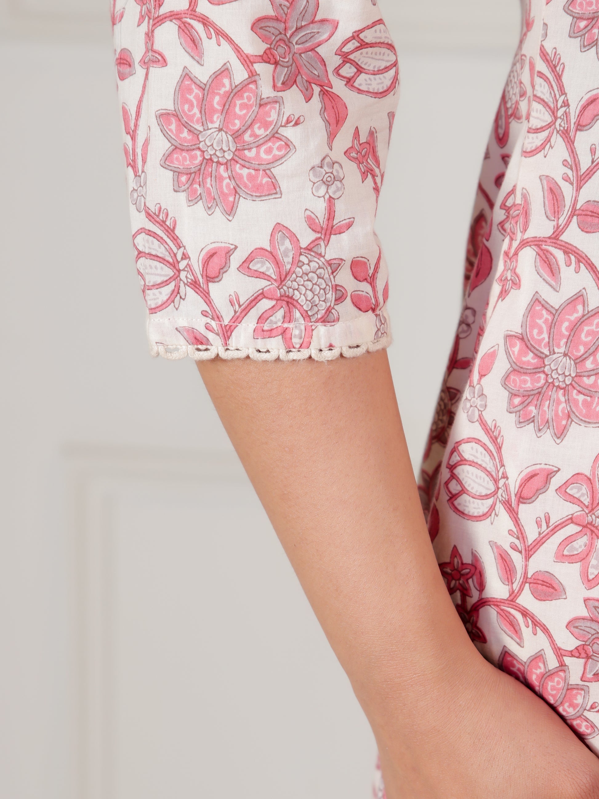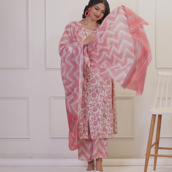 This Pink Soft Cotton kurta with a A-line flare is designed for comfort and style. Featuring a Round neckline, 3/4 Sleeve sleeves, and a graceful Calf Length hemline, it’s perfect for festive wear or semi-formal gatherings. The Floral highlights add depth and texture, making it a standout piece. Accessorise with a contrasting dupatta and keep it pristine by following proper care instructions.