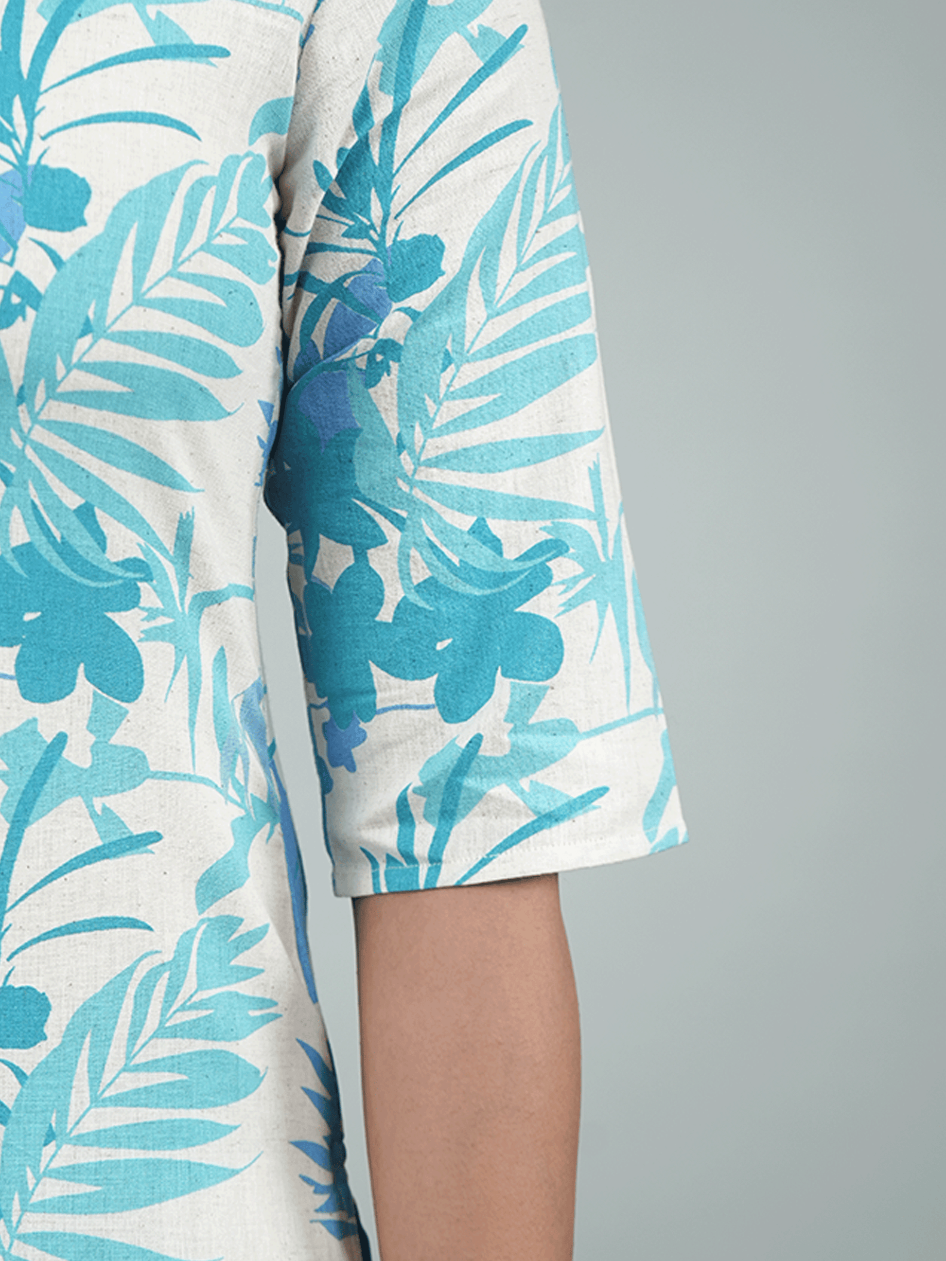 Crafted from breathable Linen Cotton, this Straight kurta in Off White blends traditional design with everyday comfort. The Foliage finish adds artisanal charm, while the Calf Length silhouette ensures effortless elegance. Style with palazzos or leggings for versatile looks, from workdays to weekend outings. Designed for easy care, this kurta stays beautiful with simple care instructions.