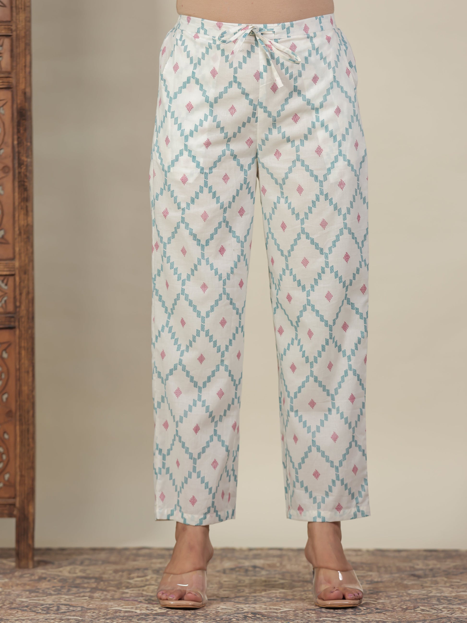 Soft Cotton Geometric Straight Off White Kurta