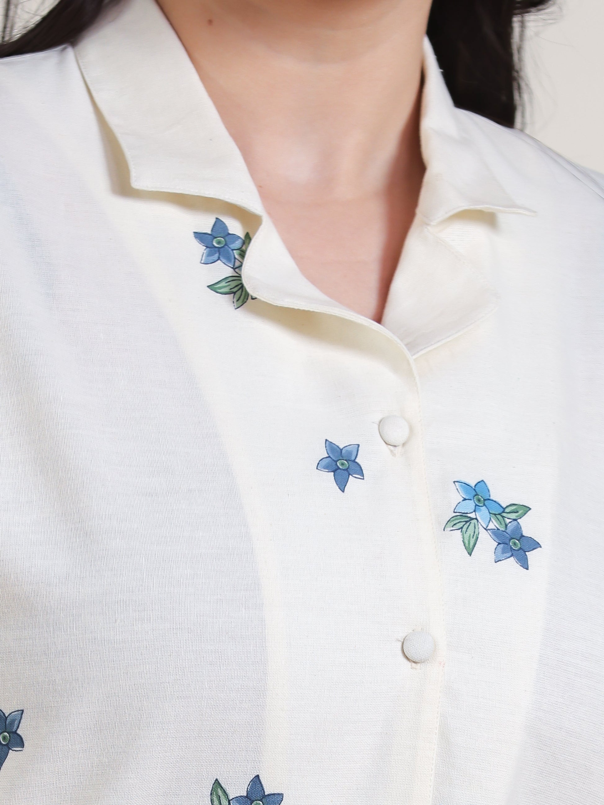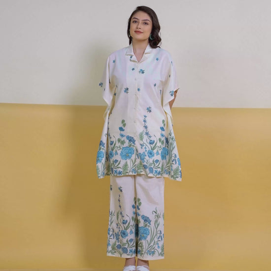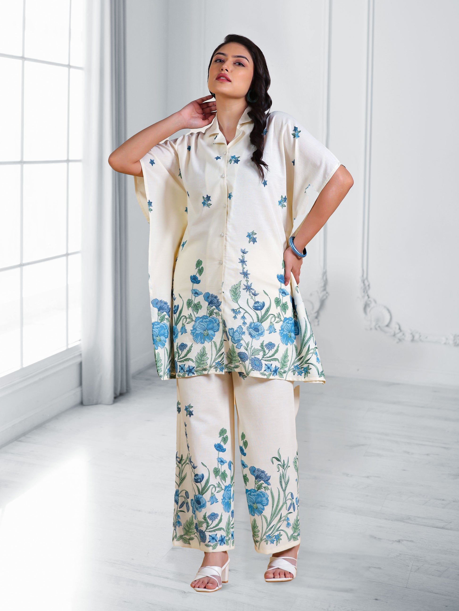 This Off White Kaftan kurta in soft Linen Cotton is a timeless pick for festive and casual wear. Designed with a Shirt Collar neckline and sleeves, its graceful cut flatters all body types. The delicate Placement Print detailing adds a touch of sophistication. Pair it with statement earrings and juttis for a polished look. Maintain its pristine look by following proper care instructions.