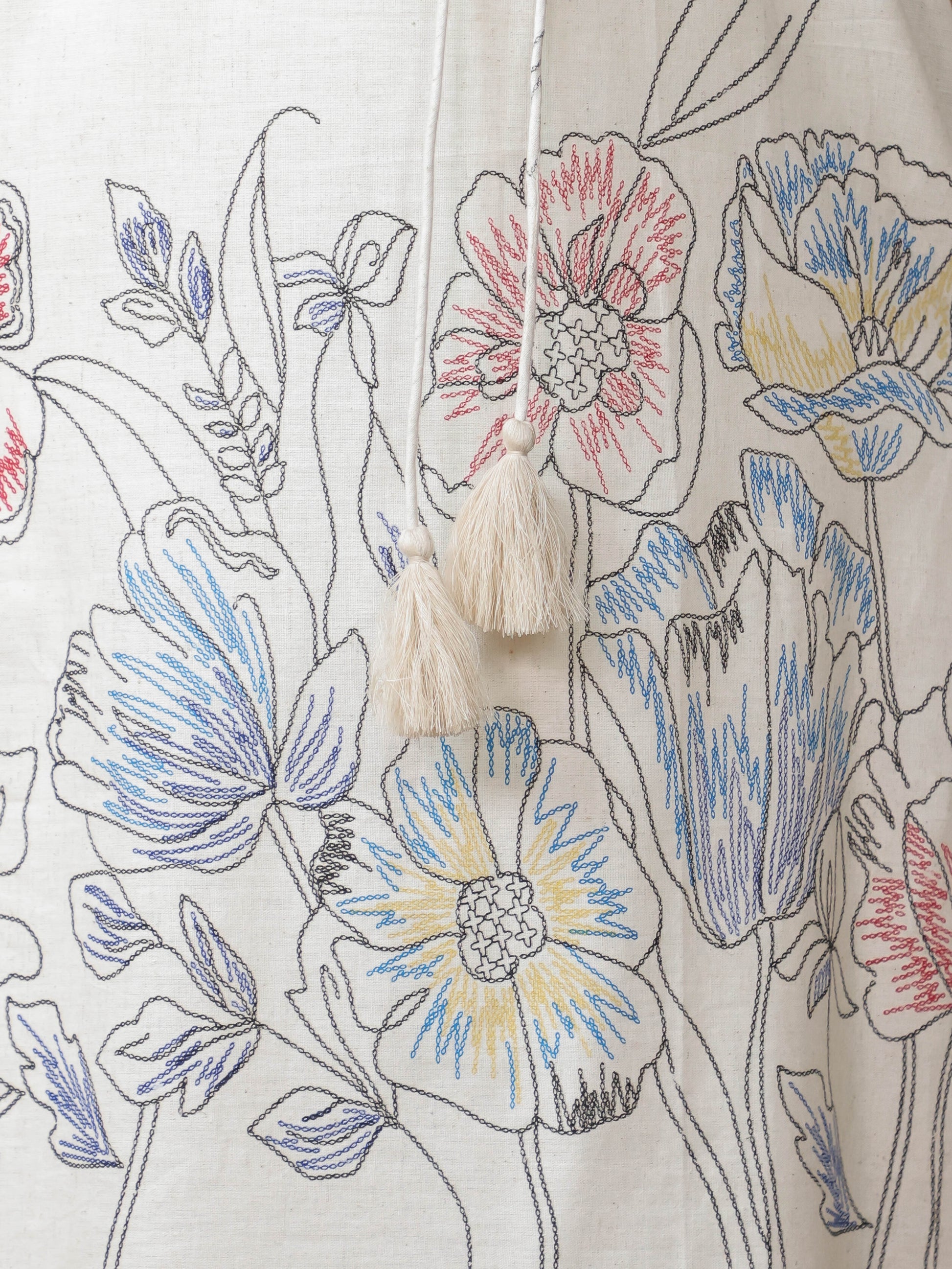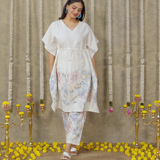 Linen Cotton Placement Print Kaftan Off White Kurta