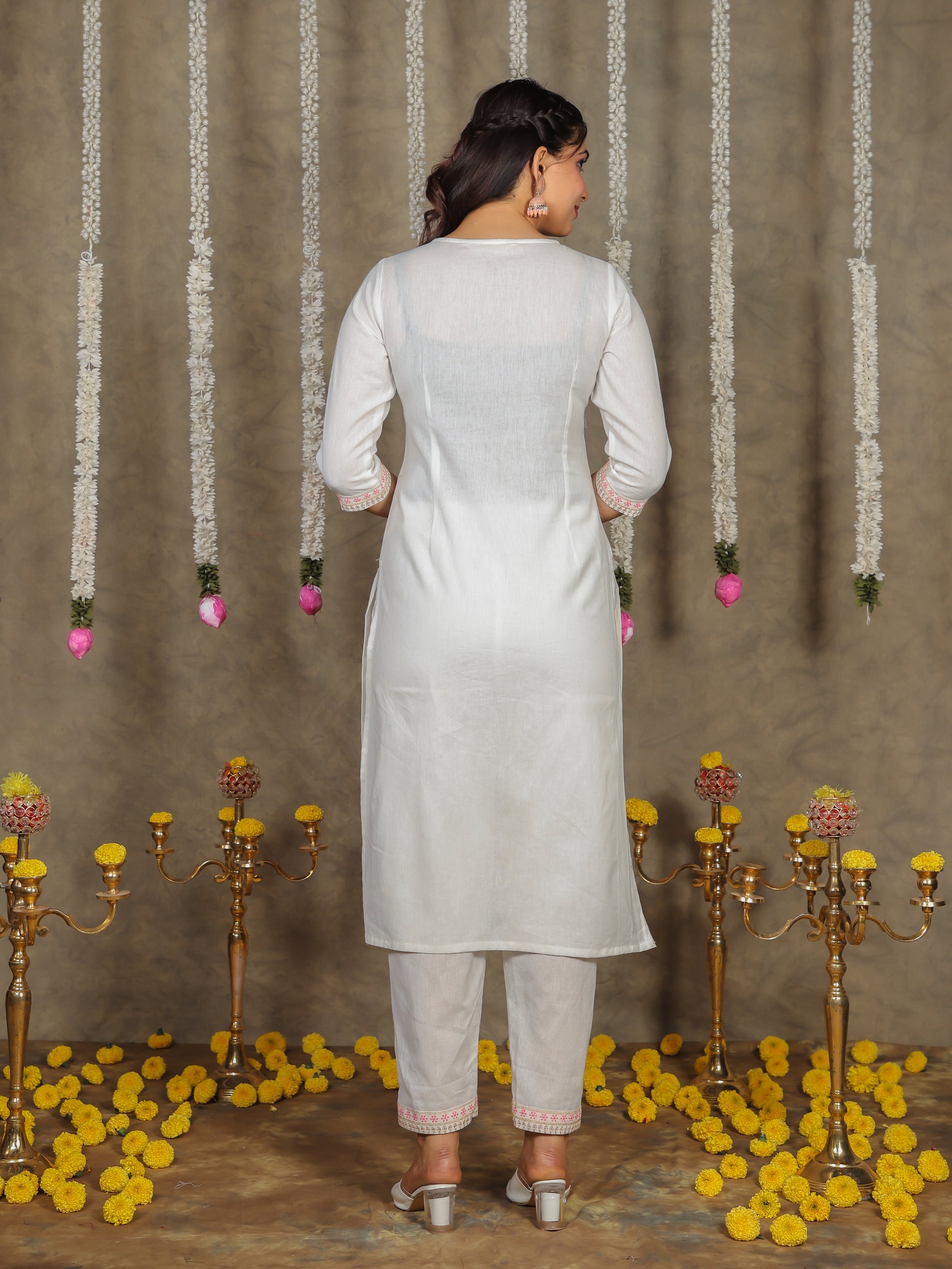 Crafted from breathable Linen Cotton, this Straight kurta in Off-White blends traditional design with everyday comfort. The Solid finish adds artisanal charm, while the Calf Length silhouette ensures effortless elegance. Style with palazzos or leggings for versatile looks, from workdays to weekend outings. Designed for easy care, this kurta stays beautiful with simple care instructions.