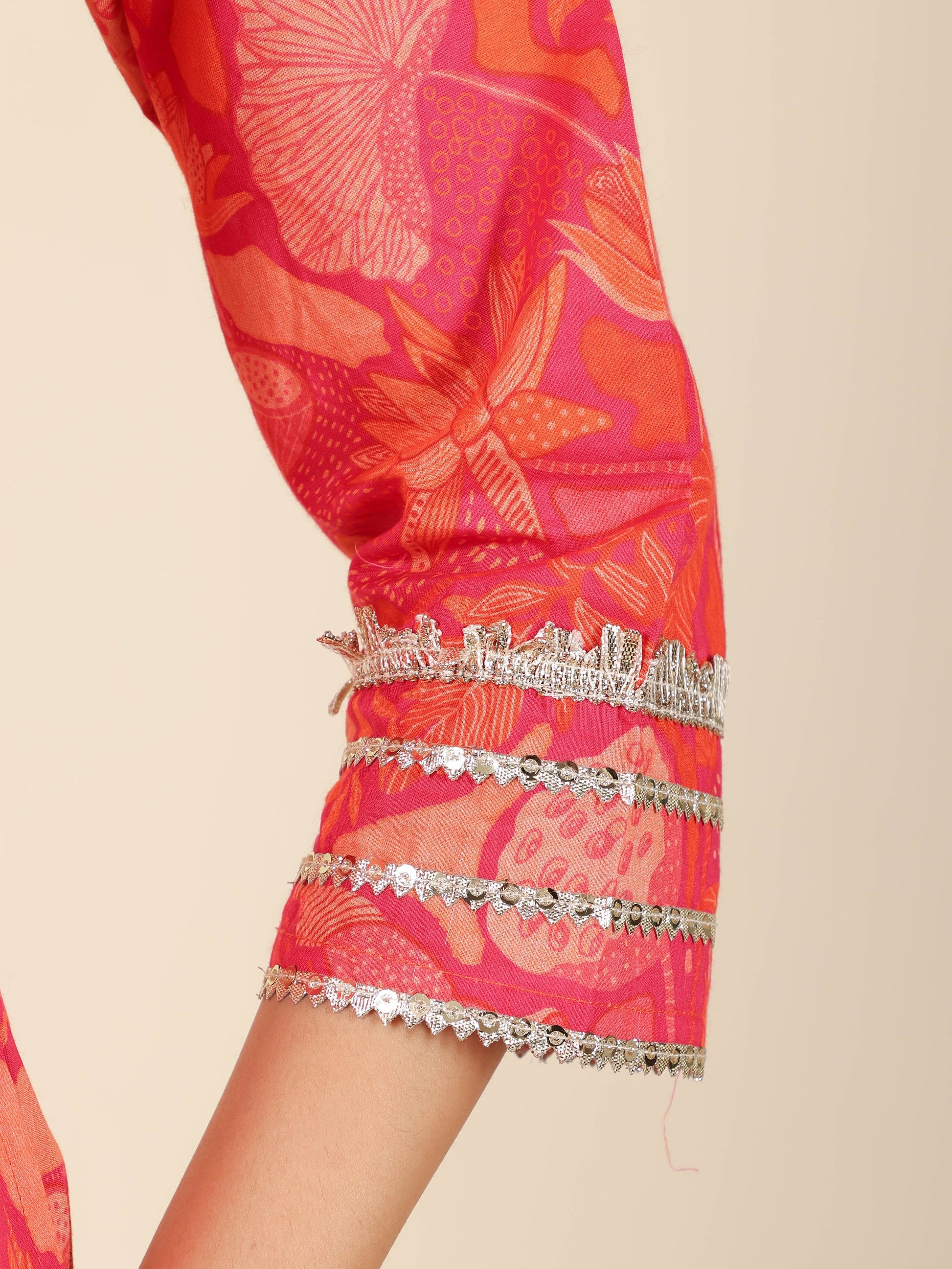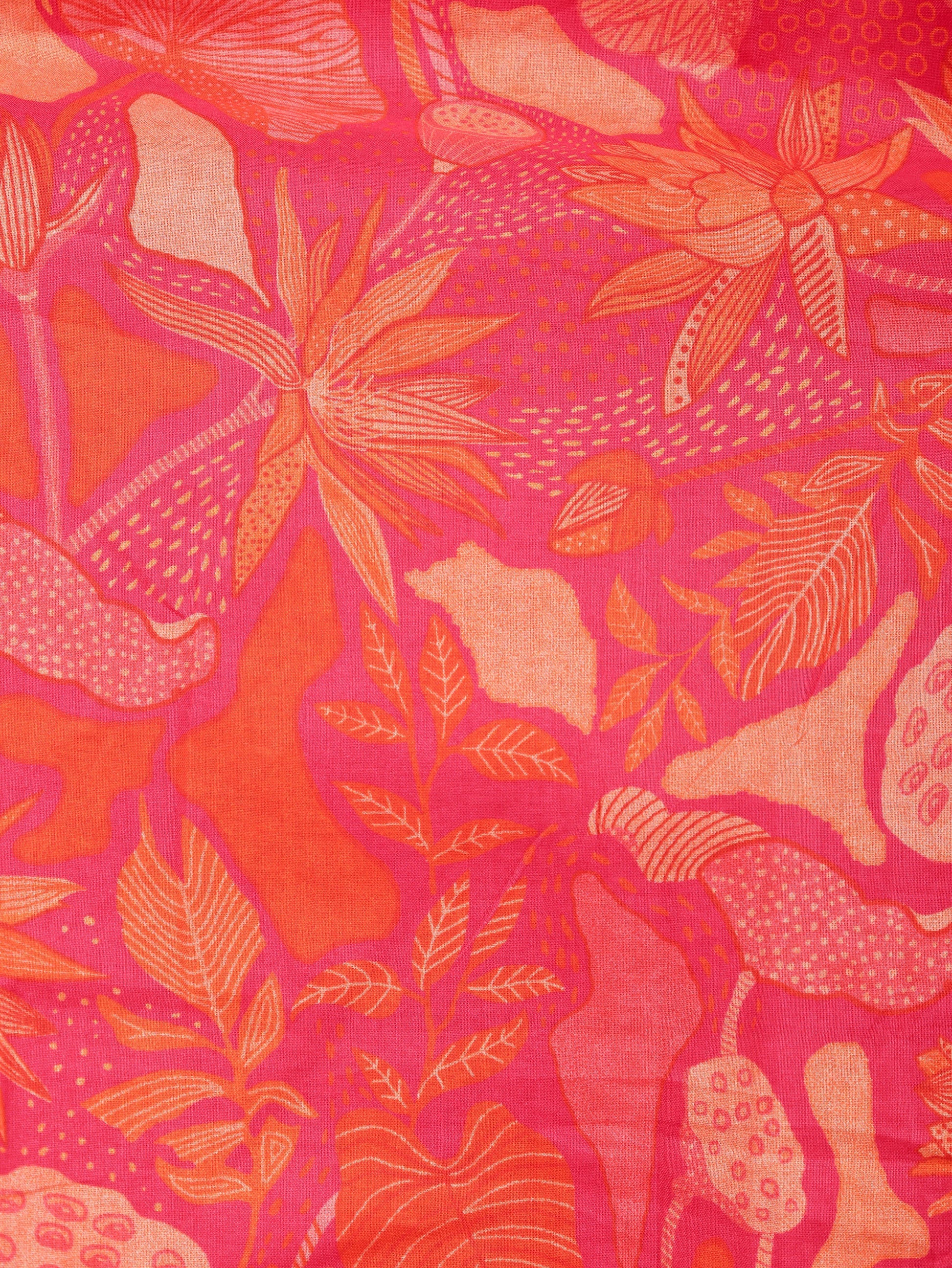 Soft Cotton Floral Panelled Orange Kurta
