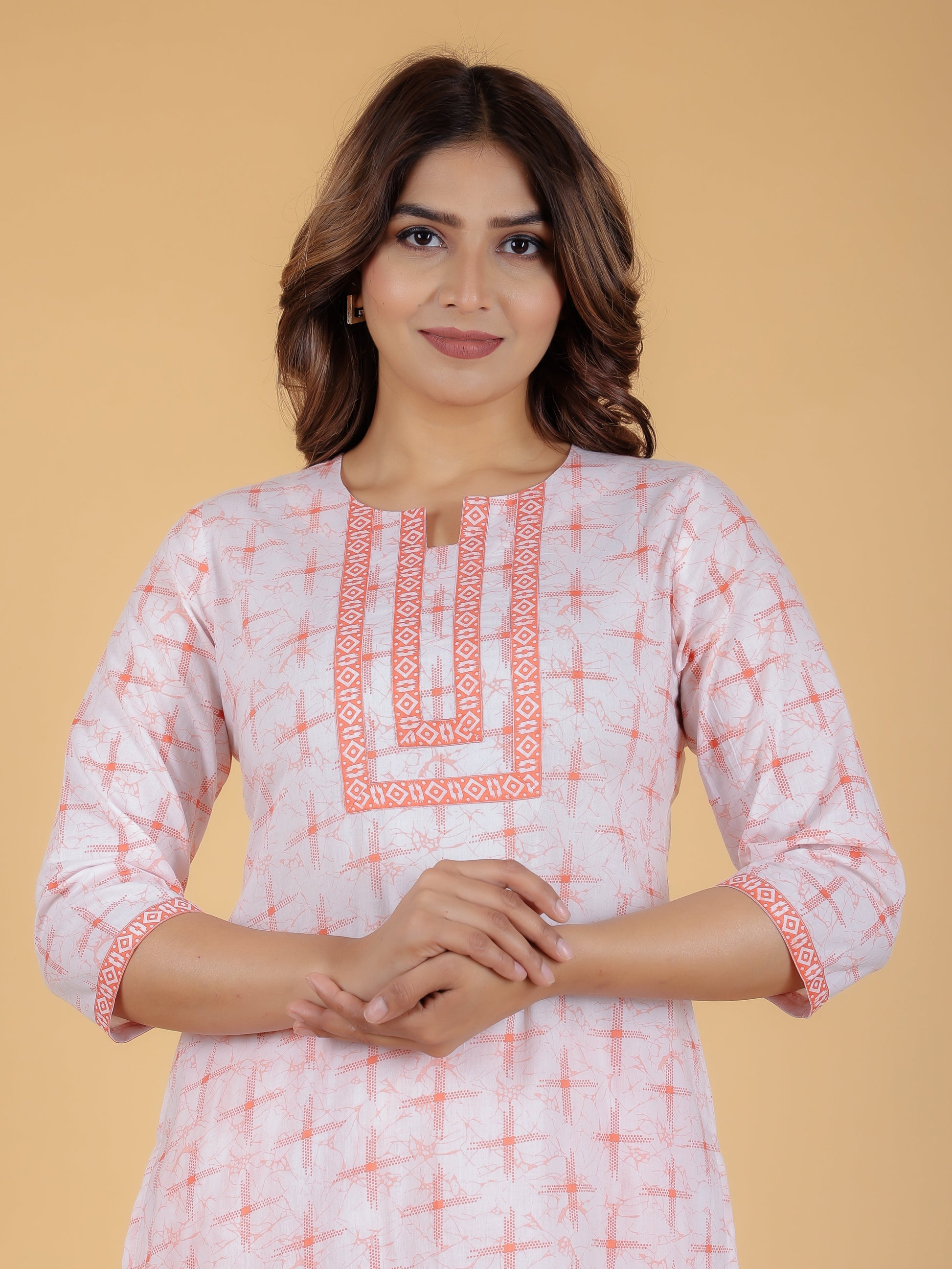 Elevate your ethnic wardrobe with this Soft Cotton kurta in a stunning Orange hue. Featuring an elegant Straight fit and striking Geometric accents, it’s perfect for festive celebrations or family gatherings. The Round neckline and 3/4 Sleeve provide all-day comfort. Team with gold-toned accessories for an effortlessly chic vibe. Maintain its charm by following proper care instructions.