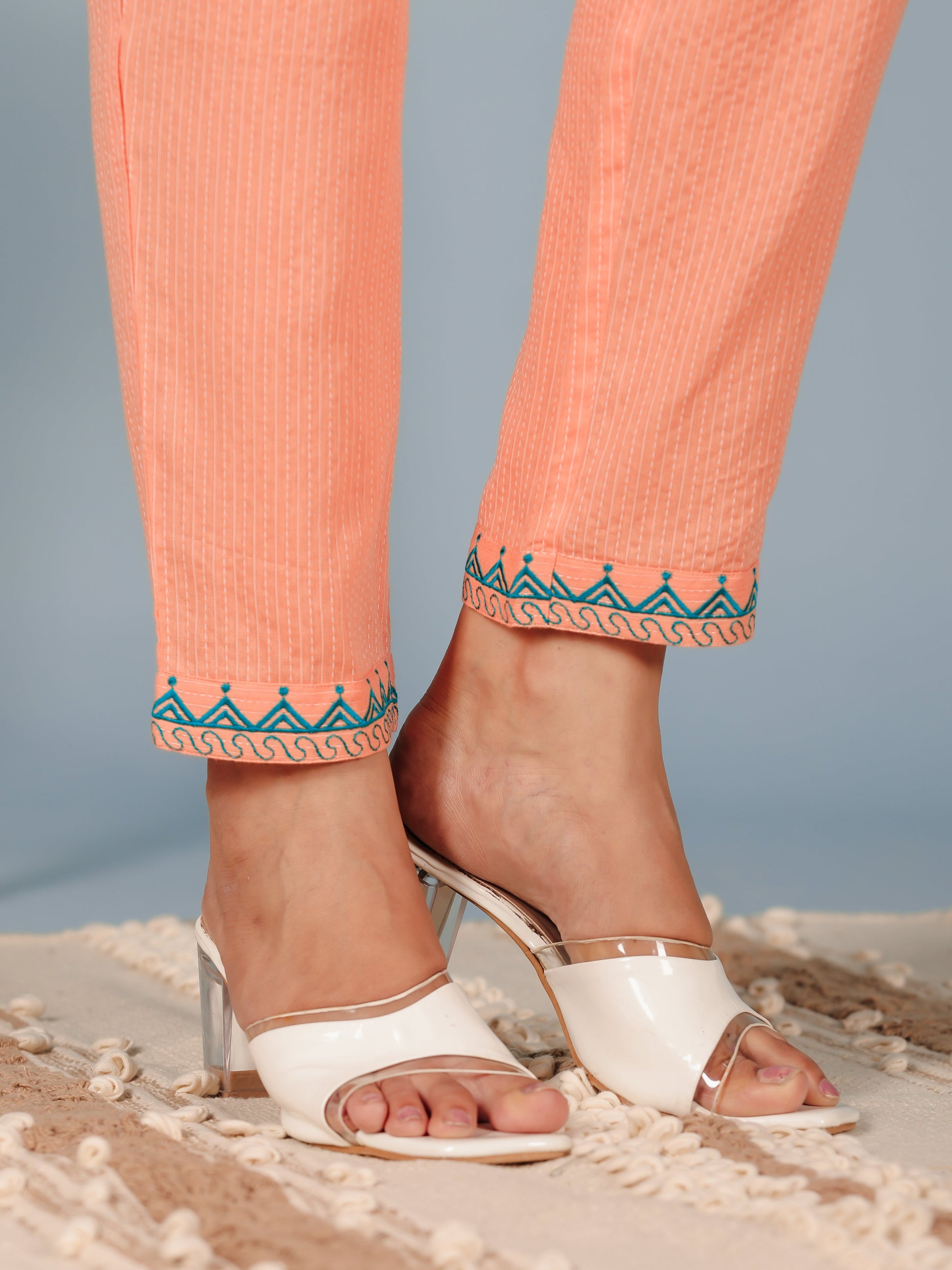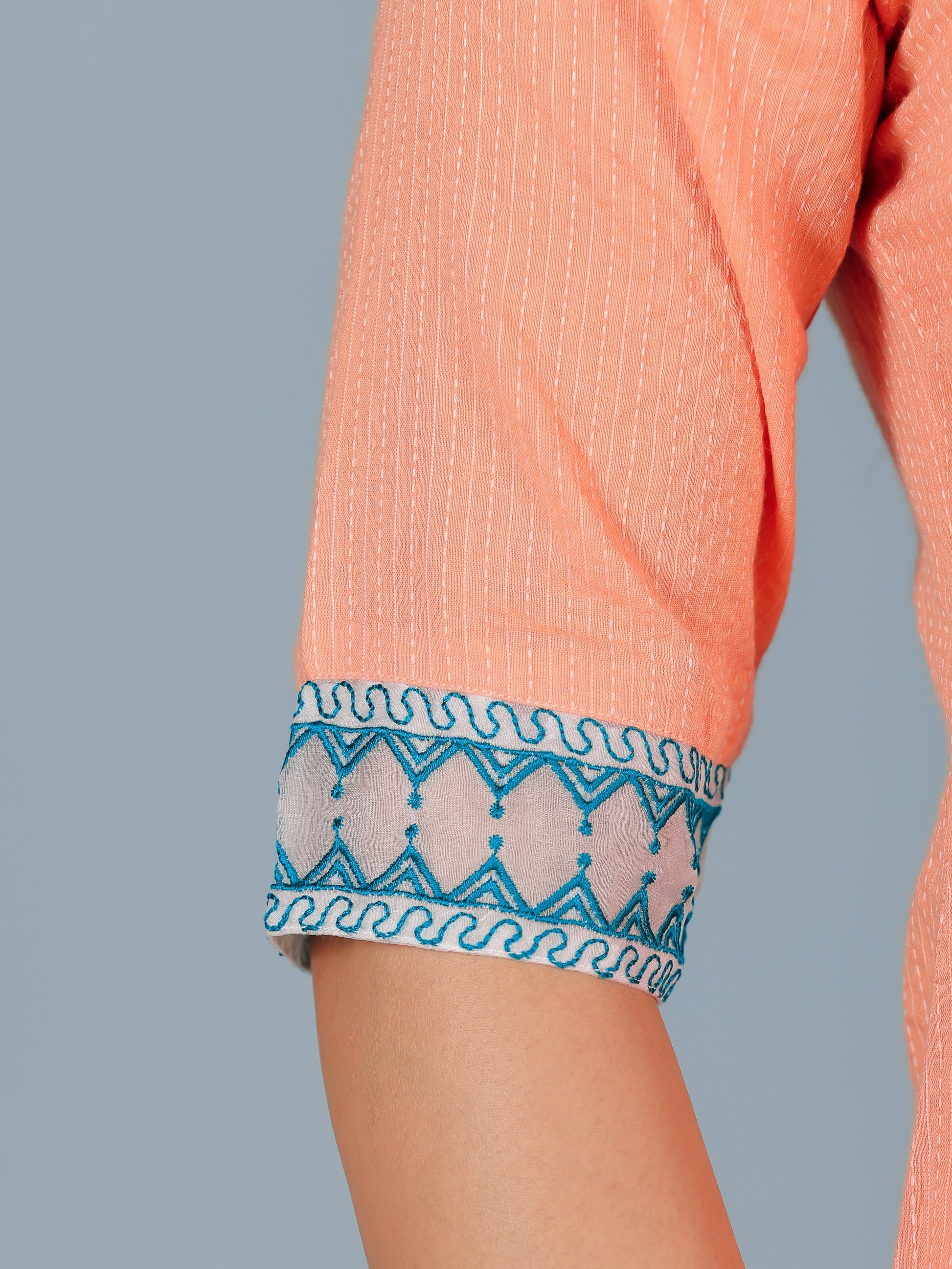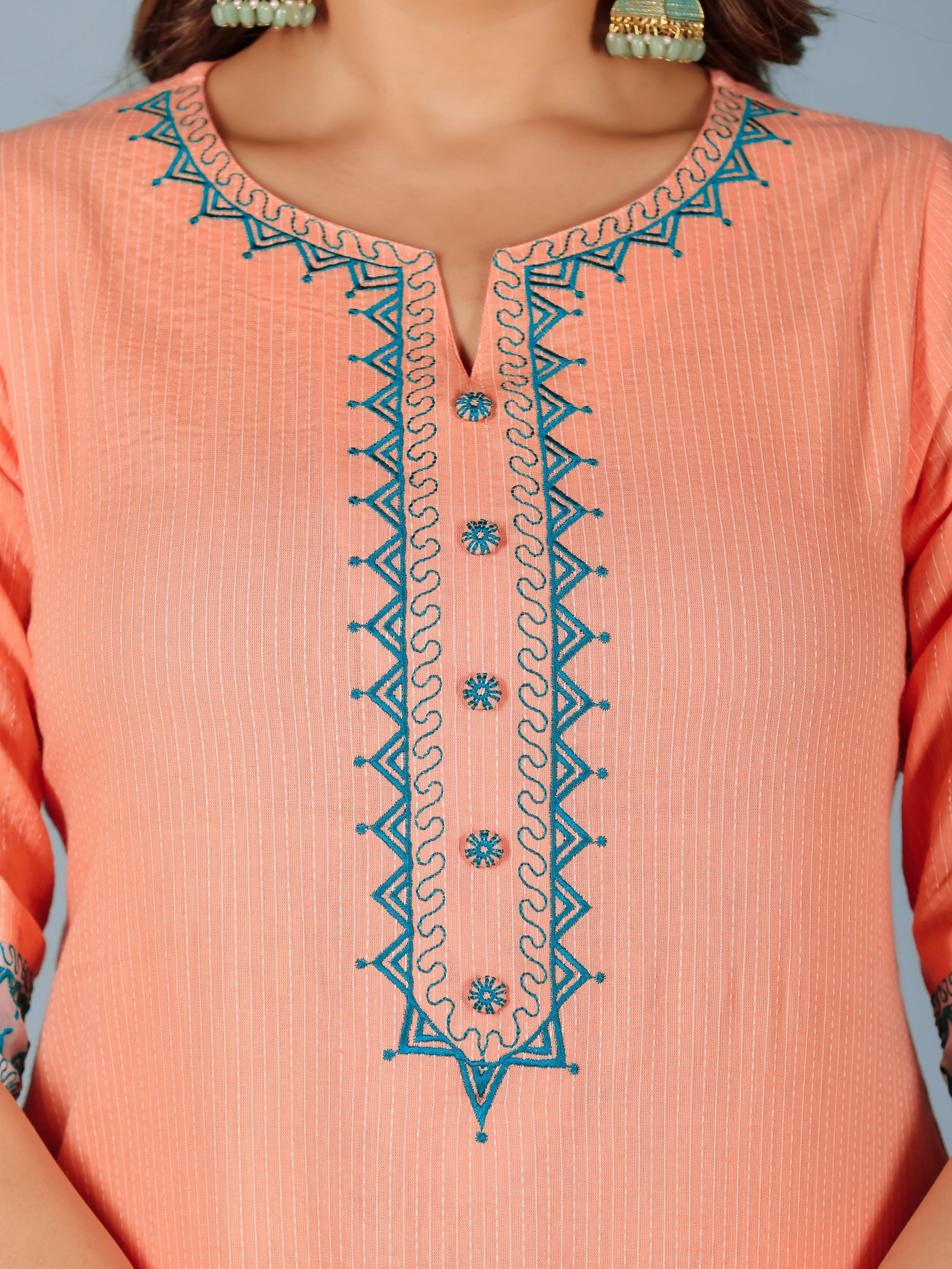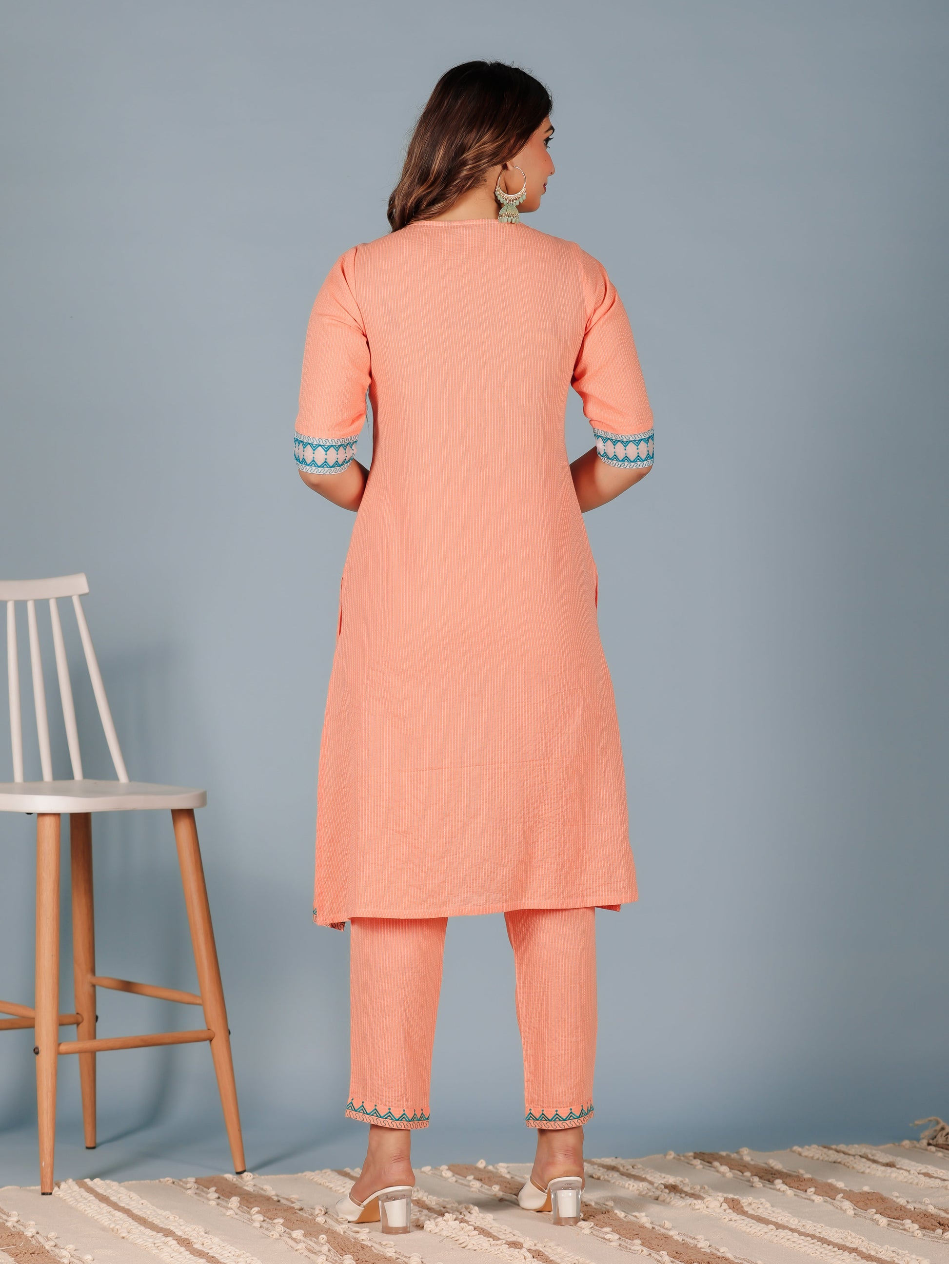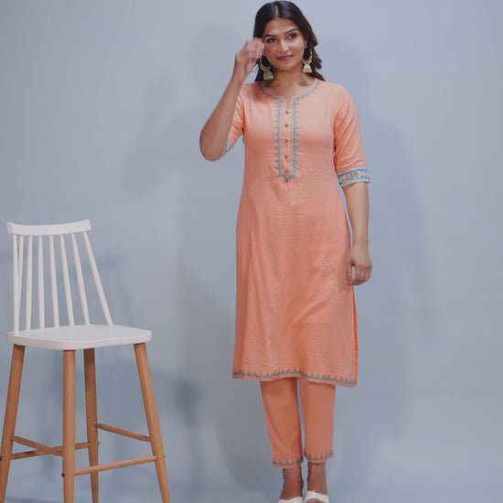 Elevate your ethnic wardrobe with this Kantha Cotton kurta in a stunning Orange hue. Featuring an elegant A-line fit and striking Solid accents, it’s perfect for festive celebrations or family gatherings. The Round neckline and 3/4 Sleeve provide all-day comfort. Team with gold-toned accessories for an effortlessly chic vibe. Maintain its charm by following proper care instructions.