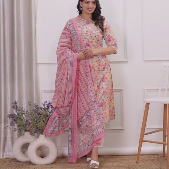 Soft Cotton Floral Straight Peach Kurta